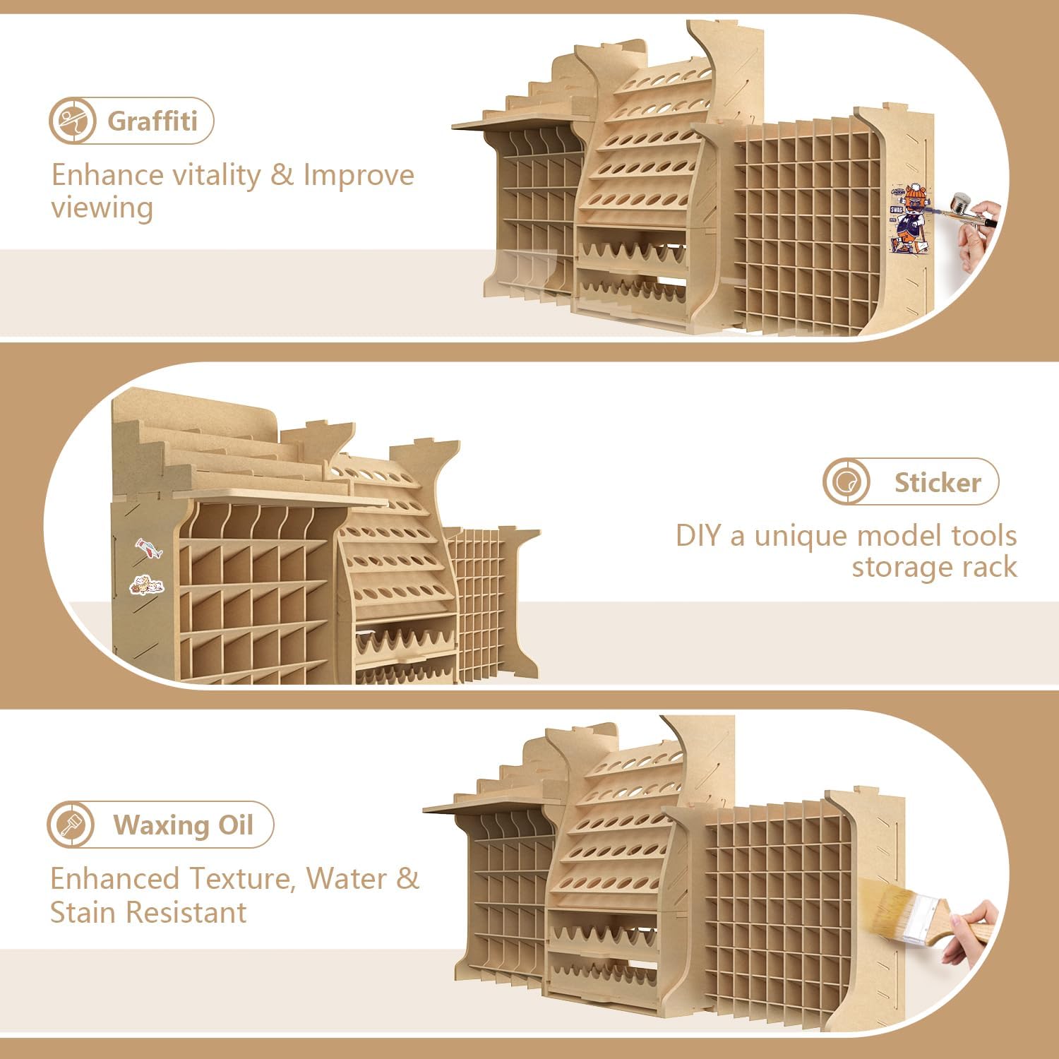 Salvaspazio e stabile--GK PS è un porta attrezzi appositamente progettato per la colorazione e il cambio di colore fai da te, in grado di conservare 211 bottiglie di vernici, come le vernici Tamiya, Tamiya/Mr. Hobby/Vallejo/Citadel ecc. Vernici e set di vernici per miniature e altre vernici. Lo stoccaggio degli strumenti è molto efficiente, in modo da sfruttare appieno lo spazio limitato e creare l'ambiente migliore per la colorazione e il cambio di look. Scaffale speciale per la conservazione delle vernici--GK PS può conservare la maggior parte delle vernici necessarie per il modellismo e le miniature. Ideale per conservare una varietà di vernici e flaconi di inchiostro a colpo d'occhio, senza dover perdere tempo a cercare il colore desiderato. Può contenere circa 24 flaconi di vernice MR HOBBY/Tamiya da 40 ml, 30 flaconi di sottobottiglie con diametro inferiore a 45 mm, 35 flaconi di vernice Citadel da 12/18/24 ml, 20 flaconi di vernice acrilica Tamiya da 10 ml, 30 flaconi di smalto Tamiya da 10 ml e 72 flaconi di vernice Vallejo da 17 ml. Stile espandibile e combinazione libera--GK PS è una combinazione di GK3, GK8, GK9, GK11 e GK12 con struttura a mortasa e tenone, progettata per la conservazione professionale degli attrezzi da modellismo in plastica. Oltre a combinare questi portautensili, è possibile combinarli con la serie GK di Bucaso! L'assemblaggio a mortasa e tenone sarà molto solido e non dovrete preoccuparvi di eventuali oscillazioni.