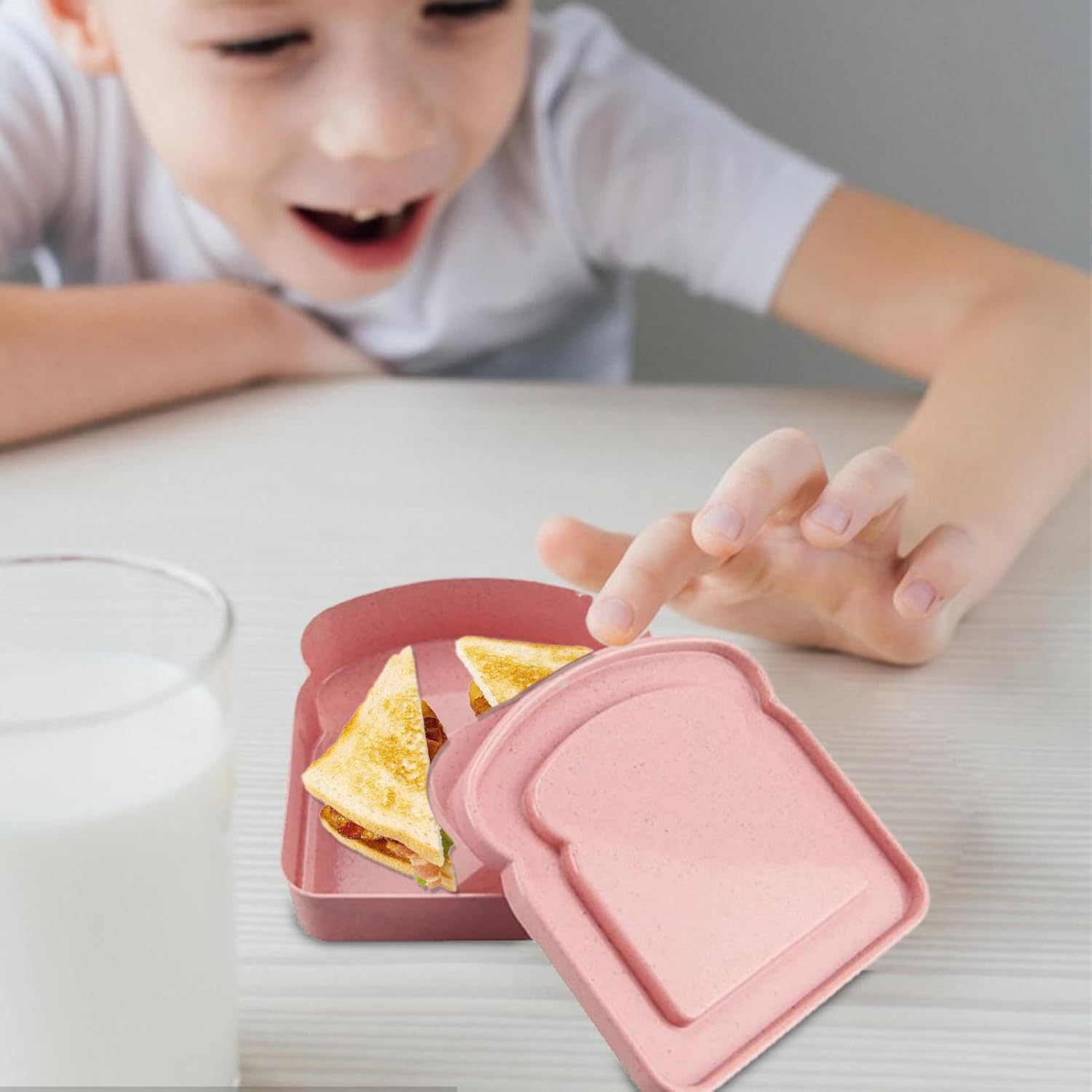 [Elaborazione squisita] I contenitori sandwich riutilizzabili, sicuri e inodore, resistenti all'usura sono costituiti da materiale PP solido e non sono facili da deformare o rompere. [Facile uso] La scatola sandwich mantiene il tuo cibo bene sotto forma di brindisi, è alla moda e nuovo e mantiene il cibo durante il viaggio o in viaggio in un buon ambiente. [Space -Saving] contiene 16 once e ha una buona dimensione. I contenitori sandwich per i bambini possono essere utilizzati per e pane, sono facili da trasportare e conservare senza occupare troppo spazio. [Facile da pulire] Gli alimenti riscaldanti sicuri e veloci, sono facili da pulire, porta molto comfort alla tua vita e sono solidi a microonde e lavastoviglie. [ per regalare] i contenitori per alimenti sono ideali come regalo per lo stoccaggio in cucina e sono adatti come regalo per familiari, amici, , ecc.