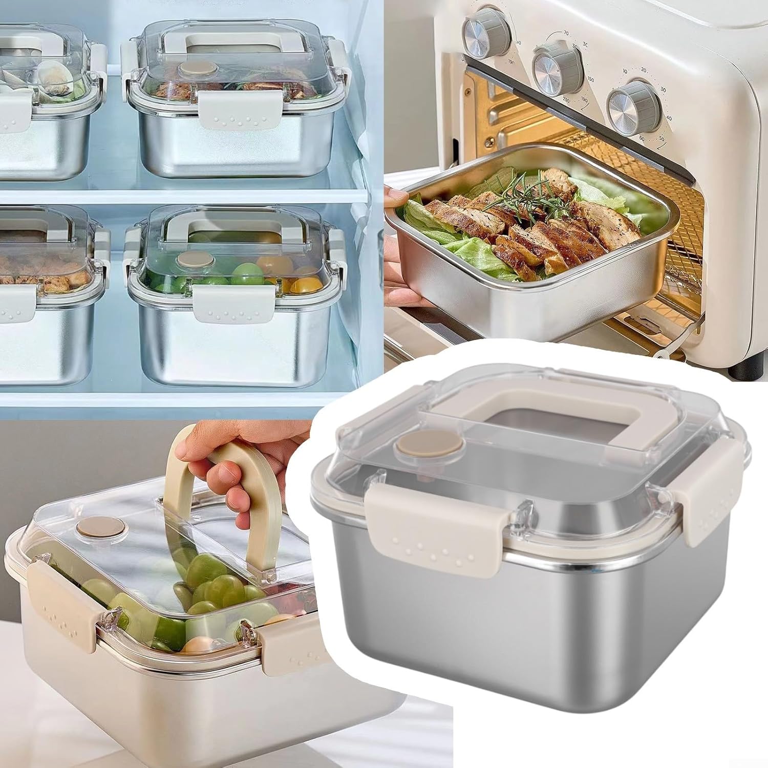 [Opzioni di riscaldamento facili] Il nostro contenitore per il pranzo è progettato per l'uso in microonde e forni, consentendo di gustare pasti caldi ovunque; il coperchio rimovibile semplifica la pulizia della lavastoviglie. [Caratteristiche resistenti alle perdite] Dite addio alle fuoriuscite con il nostro innovativo design a prova di perdite che include un anello di tenuta in silicone e una chiusura sicura con fibbia. Rivestimento in acciaio inox: realizzato in acciaio inossidabile 304 con un design a onde antiaderente nella parte inferiore, stabilità e facilità di pulizia dopo l'uso. Comodo manico pieghevole: il manico può essere facilmente ripiegato quando non in uso, fornendo portabilità senza compromettere lo spazio di archiviazione.