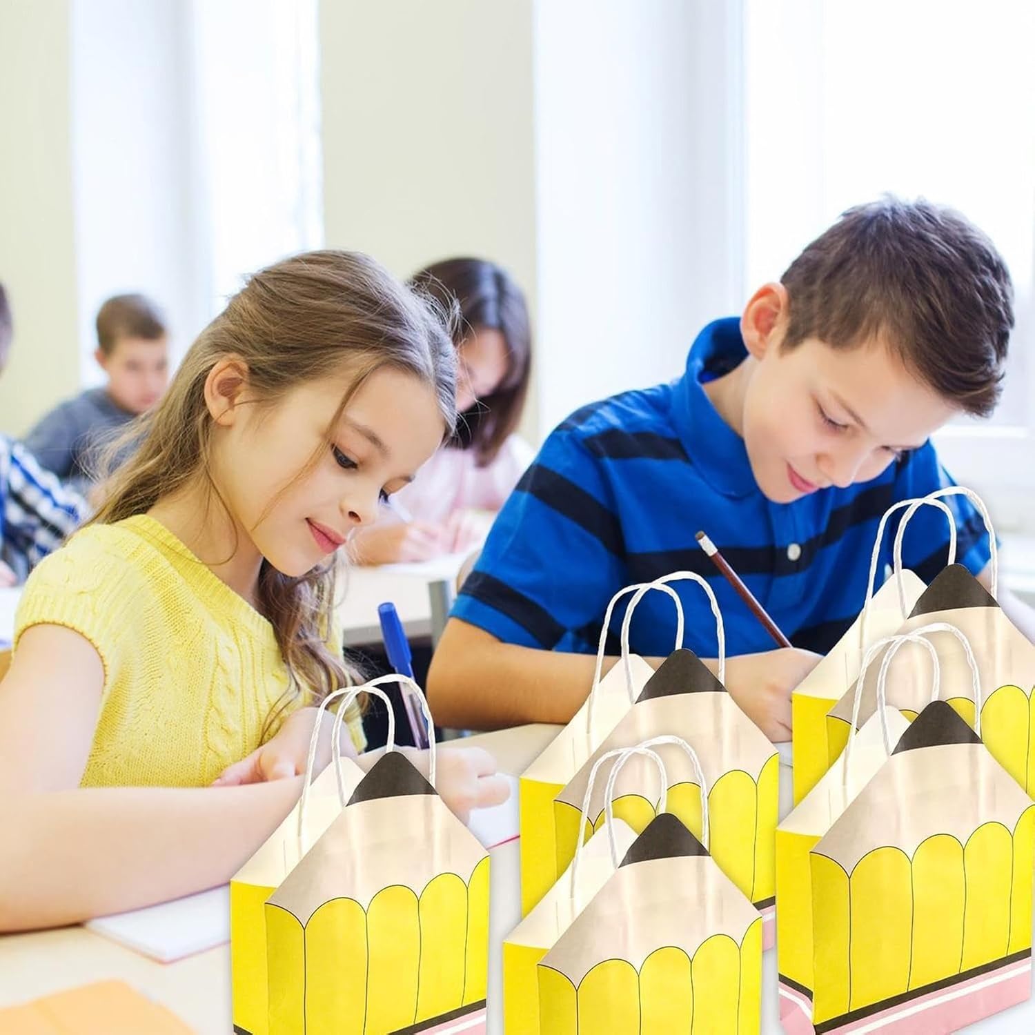 Opzione di presentazione regolabile: queste versatili borse a forma di matita sono perfettamente dimensionate per contenere una varietà di regali, rendendole adatte per eventi di apprezzamento degli insegnanti e soddisfacendo facilmente una varietà di requisiti. Soluzione ecologica da regalare: questi sacchetti di carta riutilizzabili sono ideali per attività educative, celebrazioni del giorno degli insegnanti e altro ancora, offrendo versatilità a vantaggio di utenti e destinatari in molteplici usi e pratiche. Presentazione regalo memorabile: con un bizzarro motivo a matita gialla, queste borse aggiungono fascino a qualsiasi celebrazione della Festa degli insegnanti, facendo risaltare i tuoi regali con il loro aspetto delizioso e i dettagli progettati con cura. Facile condivisione della gratitudine: con un set di 12 sacchetti regalo per set, esprimere il tuo apprezzamento durante la Settimana di apprezzamento degli insegnanti diventa semplice e innovativo, permettendoti di celebrare gli educatori con un'attenzione sincera e calorosa. Ideali per fare regali: grazie alla loro costruzione di materiali, questi sacchetti di carta offrono una buona resistenza all'usura, la consegna sicura dei tuoi regali e servono come gesto premuroso per gli insegnanti che desiderano mostrare il loro riconoscimento