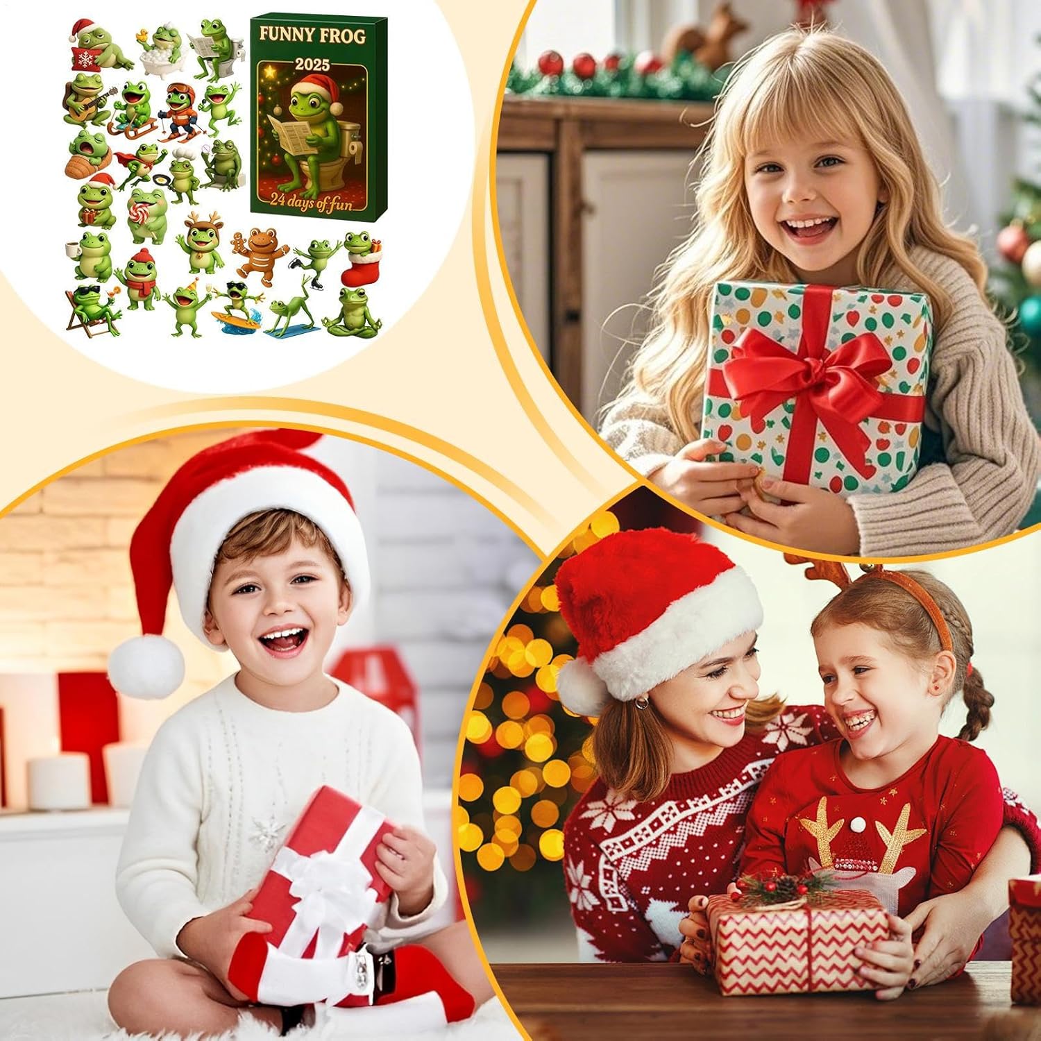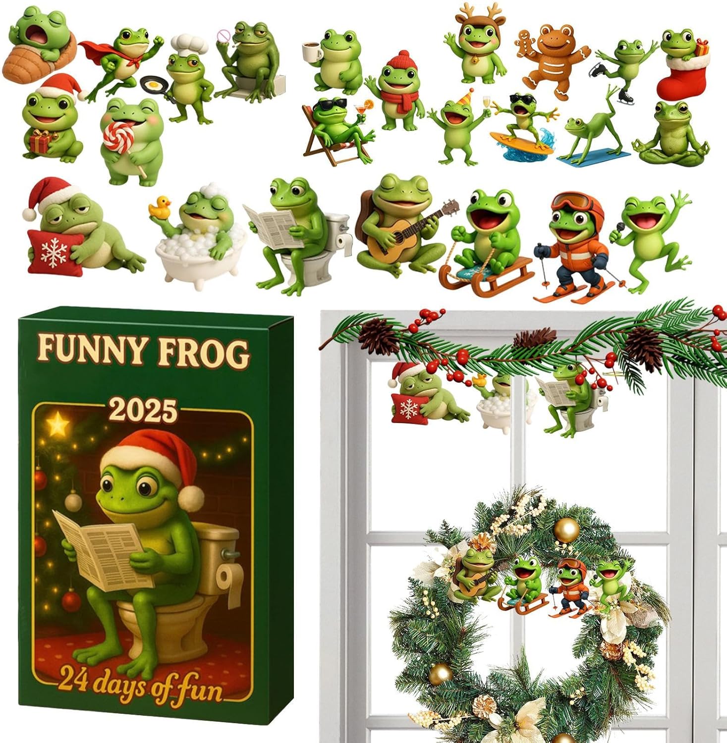 Decorazione festiva creativa: il calendario dell'Avvento presenta temi festivi e luci natalizie, dona un'atmosfera allegra ed è ideale per scrivanie o allestimenti creativi. Porta un'atmosfera gioiosa in ogni stanza durante il periodo natalizio e funge da punto culminante decorativo. Con i suoi incantevoli dettagli crea un ambiente accogliente e rende il periodo prenatalizio un'esperienza speciale per tutta la famiglia. Regalo indispensabile per tutti: questo calendario dell'Avvento natalizio crea un'attesa condivisa che collega le generazioni e rafforza così la coesione familiare attraverso il suo fascino speciale. Deliziando sia i bambini che gli adulti, diventa il centro di ogni celebrazione e arricchisce gli incontri sociali con tanti ricordi divertenti e indelebili per tutti i soggetti coinvolti. Questo la rende un'esperienza indimenticabile per tutta la famiglia e promuove momenti preziosi. Divertimento stimolante per i fan: con 24 miniature dal design unico in pose dinamiche come lo sci e il surf, questo calendario dell'Avvento cattura l'interesse dei collezionisti e arricchisce l'atmosfera natalizia attraverso un design artistico e versatili opzioni di narrazione in ambienti festivi per un'esperienza di celebrazione indimenticabile con decorazioni creative e la gioia di collezionare speciali figure in miniatura durante l'intera stagione prenatalizia. Design: il design interattivo di questo calendario dell'Avvento a tema crea opportunità per conversazioni significative e rafforza i legami durante le festività natalizie. Offre intrattenimento e un tocco allegro alle occasioni festive invitando giochi e scambi. Le rane progettate con amore promuovono l'interazione sociale, rendono ogni giorno dell'Avvento un momento speciale e approfondiscono la gioia di trascorrere del tempo insieme ai propri cari. PER LE TRADIZIONI FAMILIARI: il calendario dell'Avvento natalizio a 24 porte per la gioia quotidiana crea anticipazione condivisa mentre le famiglie interagiscono con il design umoristico del conto alla rovescia e la vivace combinazione di colori natalizi verde e oro. In questo modo si celebra insieme lo spirito del Natale e si stabilisce una tradizione duratura di riutilizzo annuale.