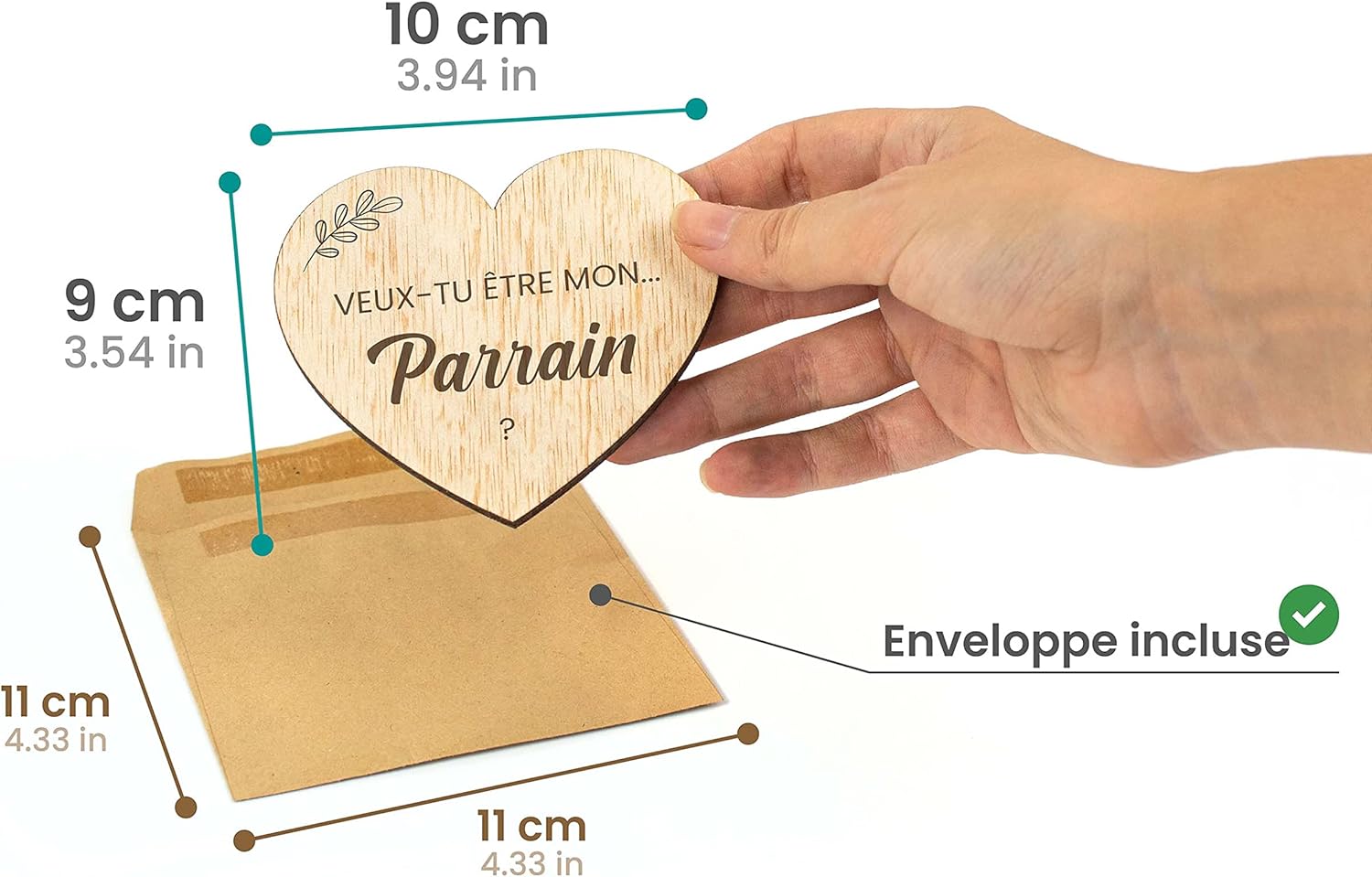 REGALO PER I PADINI: Aspetti un bambino? Si avvicina il giorno del tuo matrimonio? Utilizza questi bellissimi e originali biglietti in legno per sorprendere i futuri testimoni dello sposo. REGALO PER PADRINO E Madrina: Chiedere il battesimo ai padrini o ai testimoni dello sposo è un momento pieno di gioia e felicità. Condividi tutto questo con il padrino e la madrina in modo indimenticabile. RICHIESTA DI BATTESIMO E MATRIMONIO PER PADINI: Un modo originale per chiedere: Vuoi essere il mio padrino e Vuoi essere la mia madrina. Questi biglietti per padrini di neonati o matrimoni includono una busta di carta per dare alla madrina e al testimone una sorpresa che non dimenticheranno mai. MATERIALI DI QUALITÀ: I nostri buoni regalo maternità sono set di cuori di legno tagliati al laser con precisione e buste di carta kraft, ideali per conservare ogni cuoricino. REGALO ORIGINALE FATTO A MANO: Sostieni le imprese locali e i prodotti nazionali con questi regali per l'annuncio della gravidanza. Ogni biglietto è realizzato curando ogni dettaglio e in modo artigianale nel nostro laboratorio a Valencia, in Spagna.