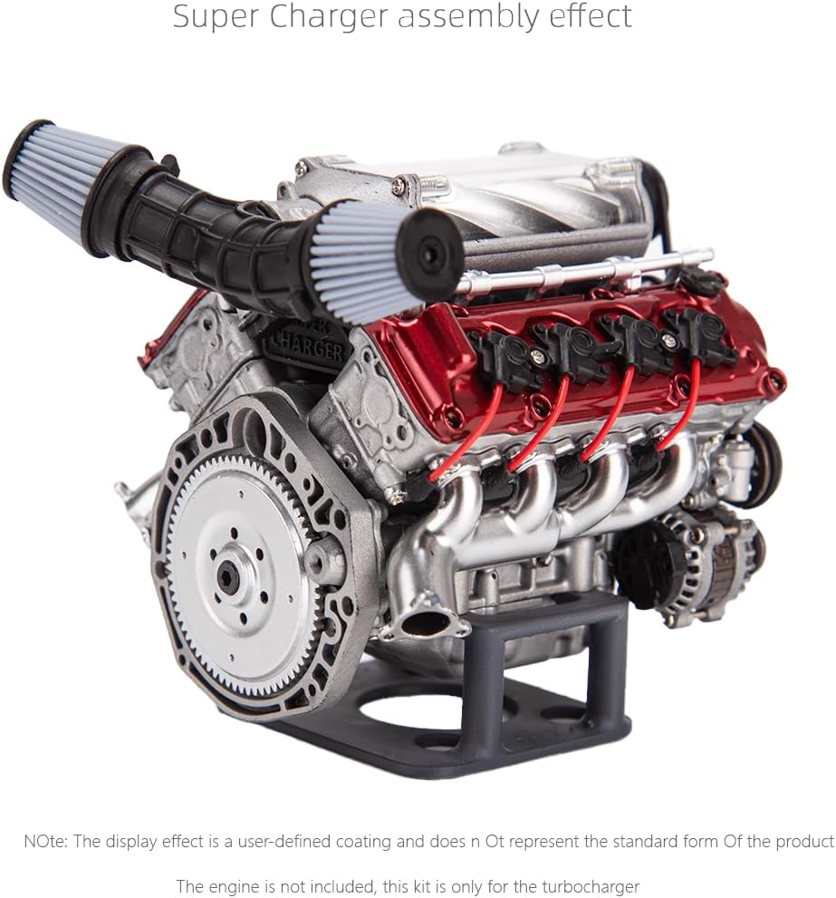 Struttura del compressore completamente realistica: il design è una simulazione di un vero caricatore motore con aste a vite mobili e un sistema di puleggia. Simulazione dinamica: richiede l'accoppiamento con un modello di motore V8 per la simulazione operativa. Garantisce stabilità e affidabilità in uno spazio compatto. Ampia applicazione: migliora la coordinazione occhio-mano grazie al montaggio fai da te. Compatibile con vari modelli RC come AX90104 SCX10, Capra, VS4-10 Pro/Ultra. Nota pre-acquisto: realizzato in nylon e metallo CNC. Il guscio esterno è realizzato in stampi in nylon, mentre le aste a vite vengono lavorate CNC metallo. Richiede un montaggio fai da te. Nota: questo kit compressore non include il motore e deve essere accoppiato con il modello motore MAD V8. Non compatibile con altri motori o modelli RC.