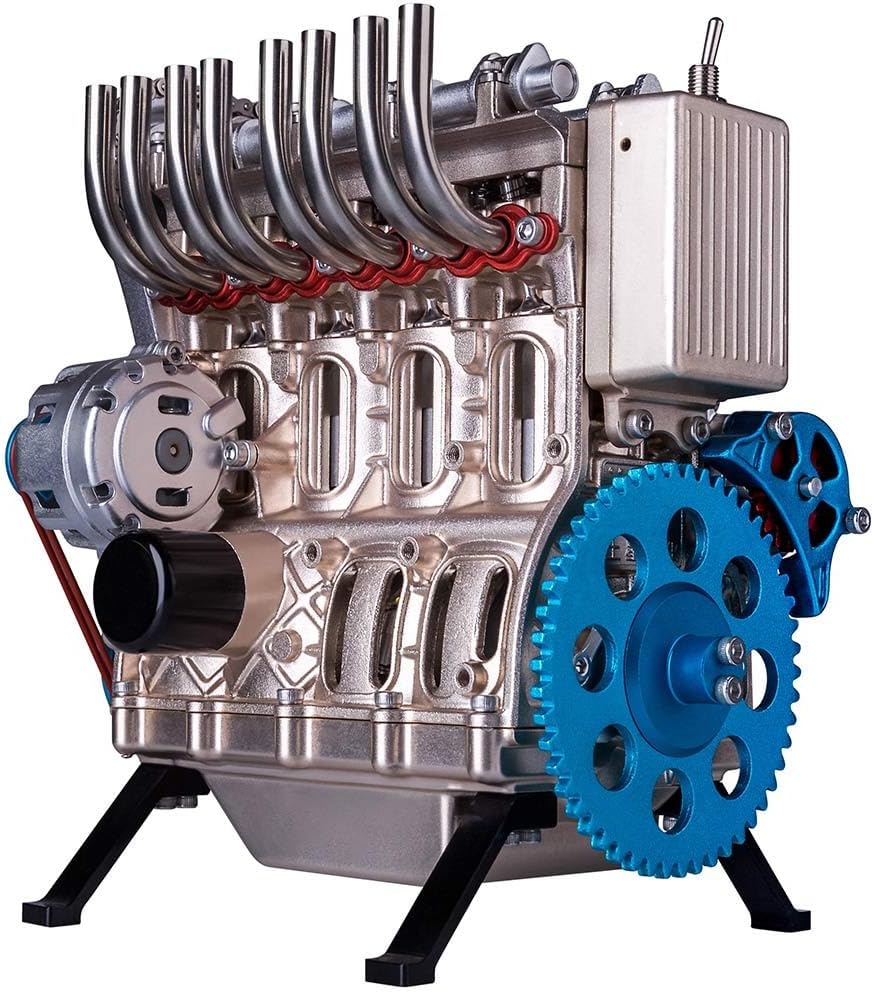 Materiali di alta qualità e lavorazione di prima classe: questo modello di alta qualità è realizzato interamente in metallo ed è realizzato con lavorazione CNC di precisione. La lega di alluminio con superficie anodizzata garantisce brillantezza dei colori di lunga durata. Un totale di 325 pezzi finemente lavorati – tutti lucidati professionalmente – rendono questo modello un impressionante esempio di maestria tecnica e ricordano la rivoluzione industriale in miniatura. Meccanismo trasparente e funzionamento visibile: il design attribuisce particolare importanza alla visibilità dello scarico meccanico. Ingranaggi, pistoni e alberi si muovono in una logica chiaramente comprensibile, rendendo il funzionamento di un vero motore a combustione interna sperimentabile visivamente e meccanicamente. Ideale per gli appassionati di tecnologia che amano il fascino delle classiche meccaniche meccaniche. Design storico ad alta fedeltà: basato su sviluppi iconici della storia industriale, il modello è stato progettato per essere modellato sia tecnicamente che visivamente su un vero motore a quattro cilindri. Illustra i principi fondamentali dell"ingegneria meccanica e funge da mostra educativa ad alto valore da collezione. Design modulare e possibilità di espansione: Ogni modello ha una struttura e una funzione indipendenti. Grazie alla modularità ben congegnata, il prodotto può essere ampliato tramite kit speciali o attraverso i propri progetti fai da te in un sistema di azionamento funzionale. Ideale per hobbisti e sviluppatori che amano essere creativi. Kit sofisticato con un vero fattore di apprendimento: il modello deve essere completamente assemblato da soli, un processo affascinante che richiede circa 4 ore (difficoltà: 4,5 su 5). L'azionamento avviene tramite un motore elettrico con batteria al litio da 500 mAh, che offre almeno 30 minuti di autonomia a piena carica. Consigliato per tutti gli appassionati di tecnologia dai 16 anni in su: un regalo ideale per adolescenti, adulti e hobbisti.