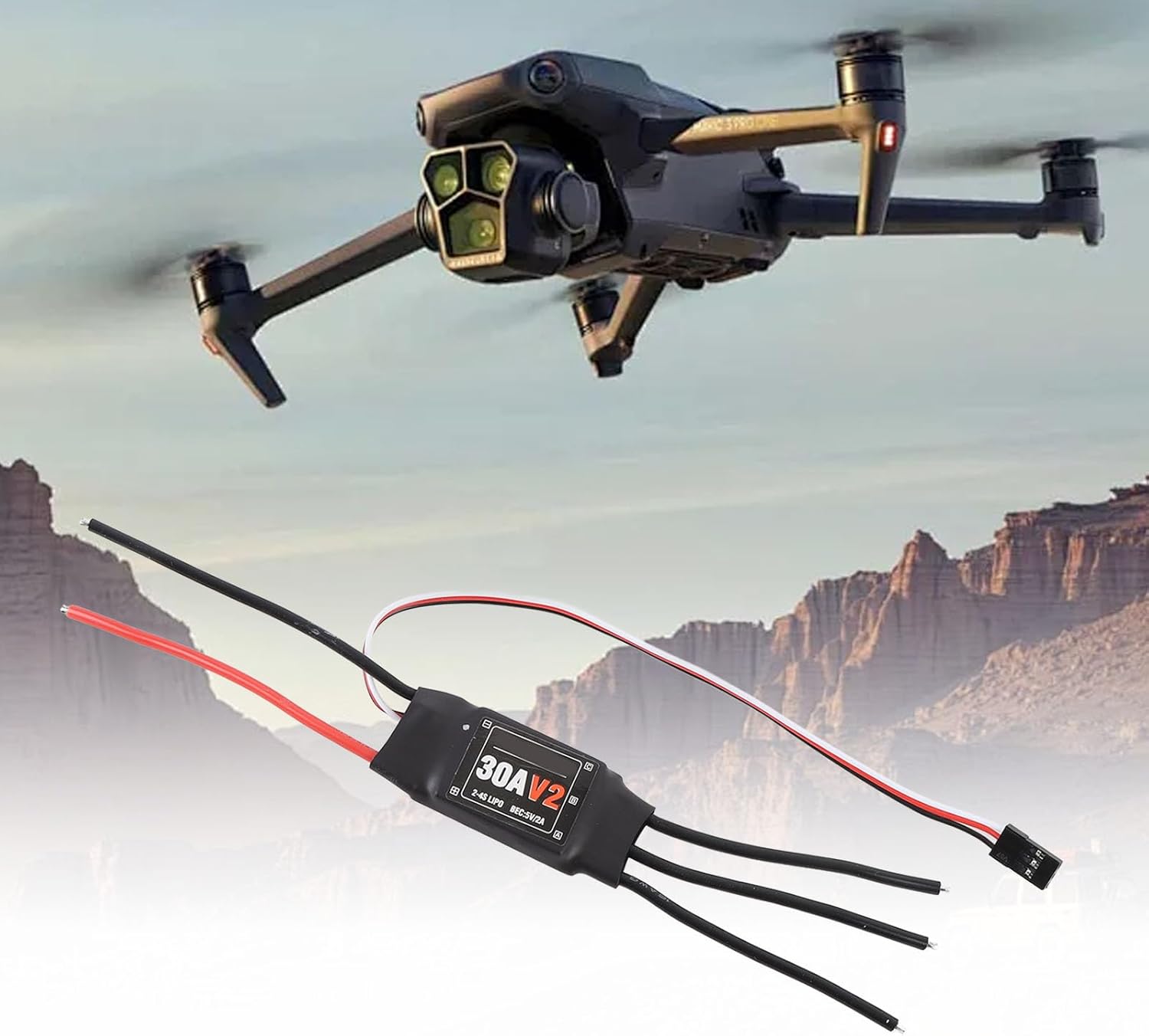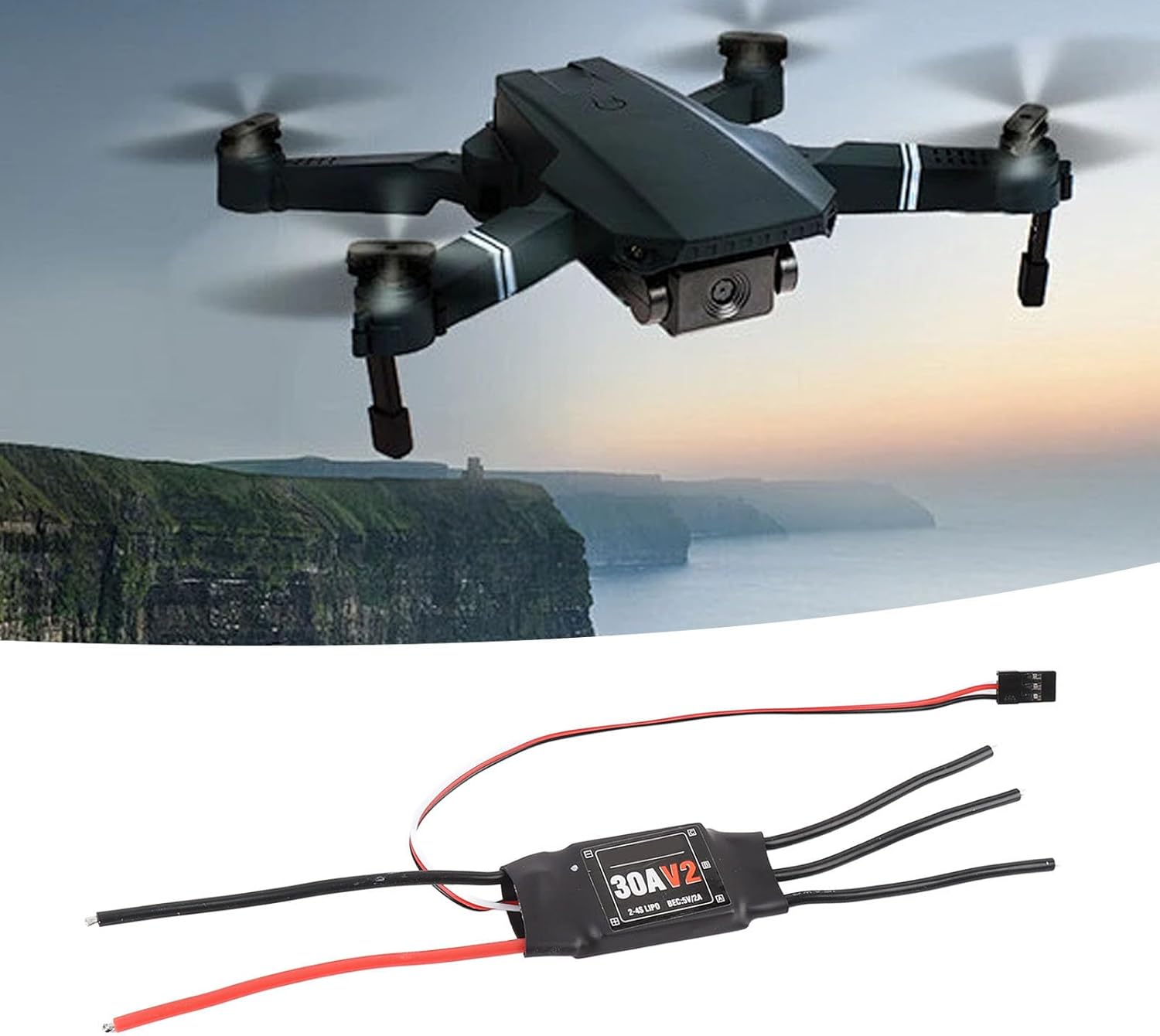 Compatibilità versatile: l'ESC senza pennello 30A è progettato per ala fissa, FPV, multirotore e quadricottero, rendendolo una componente essenziale per qualsiasi appassionato aereo. Funzionalità 'alimentazione: questo ESC supporta le batterie LiPO da 2 a 4S e può alimentare sia il ricevitore che i servi, garantendo una fonte di alimentazione affidabile per tutte le esigenze di controllo del volo. Guardia completa: dotato di molteplici funzioni di protezione, tra cui la protezione della tensione di ingresso anormali, la protezione termica ESC e il taglio a bassa tensione, questo ESC aiuta a prolungare la durata della vita e migliora la sicurezza. User Friendly: spina non calpestata ad entrambe le estremità, la spina increspata 'alimentatore è collegata al tappo increspato del cavo del motore. Gli utenti possono impostare liberamente la configurazione di entrambi i lati della spina. Performance eccellenti: progettata per un controllo efficiente e un lavoro regolare, questo ESC 30A offre prestazioni superiori per varie applicazioni di volo, garantendo un'esperienza di volo piacevole indipendentemente dalle condizioni.