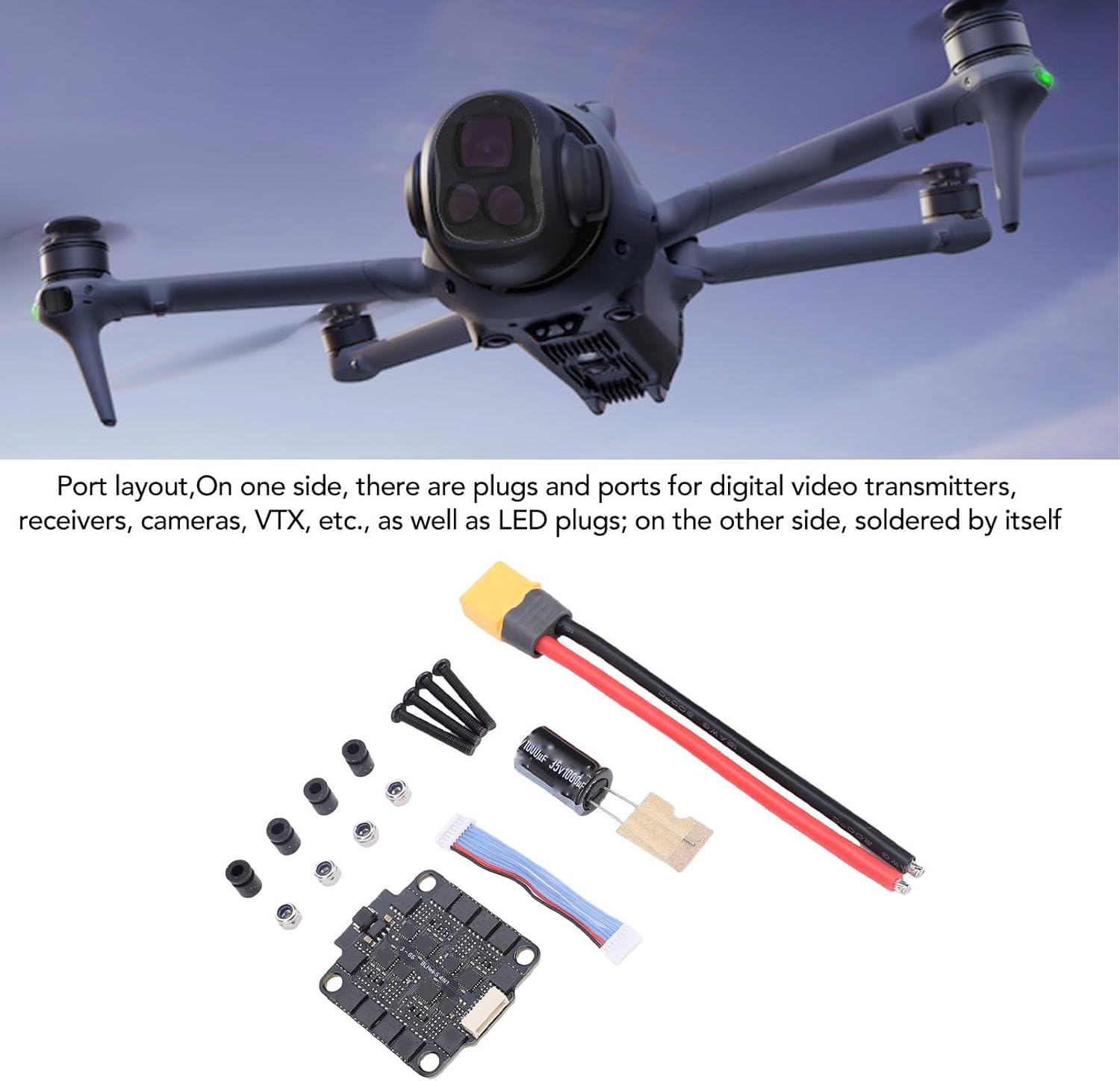 [Aggiornamenti firmware ultraveloci] Sperimenta aggiornamenti rapidi con velocità wireless, assicurandoti che il tuo drone sia sempre dotato degli ultimi miglioramenti delle prestazioni. [Opzioni di connettività versatili] Il doppio design presenta porte plug-and-play e punti di saldatura personalizzabili per varie configurazioni di droni. [Potenti prestazioni di uscita 60 A] Dotato di una vera uscita di corrente continua insieme a una tecnologia avanzata di dissipazione del calore per un'erogazione di stabile. [Compatibilità universale con droni] Progettato per droni 7 pollici a 10 pollici, garantisce prestazioni costanti sia durante le corse che durante l'acquisizione di filmati. [Materiale plastico robusto] Realizzato per resistere a sessioni di volo impegnative, garantendo prestazioni affidabili in vari ambienti.