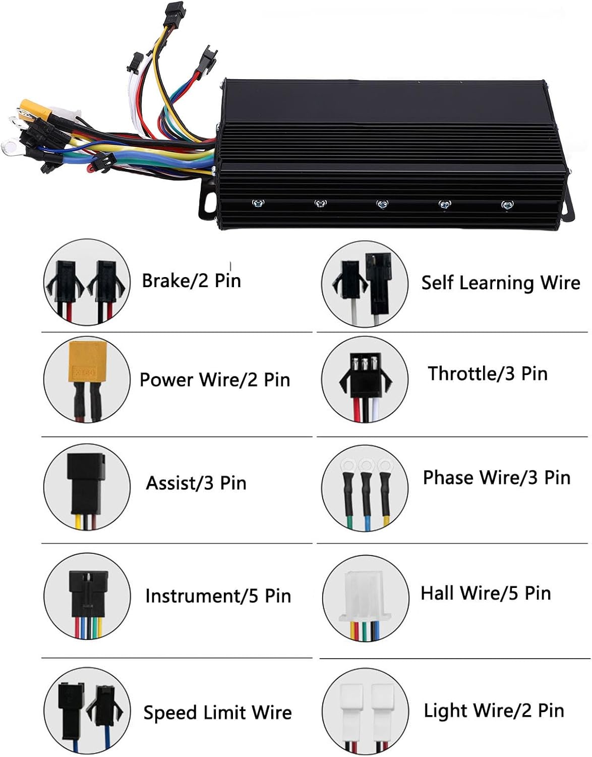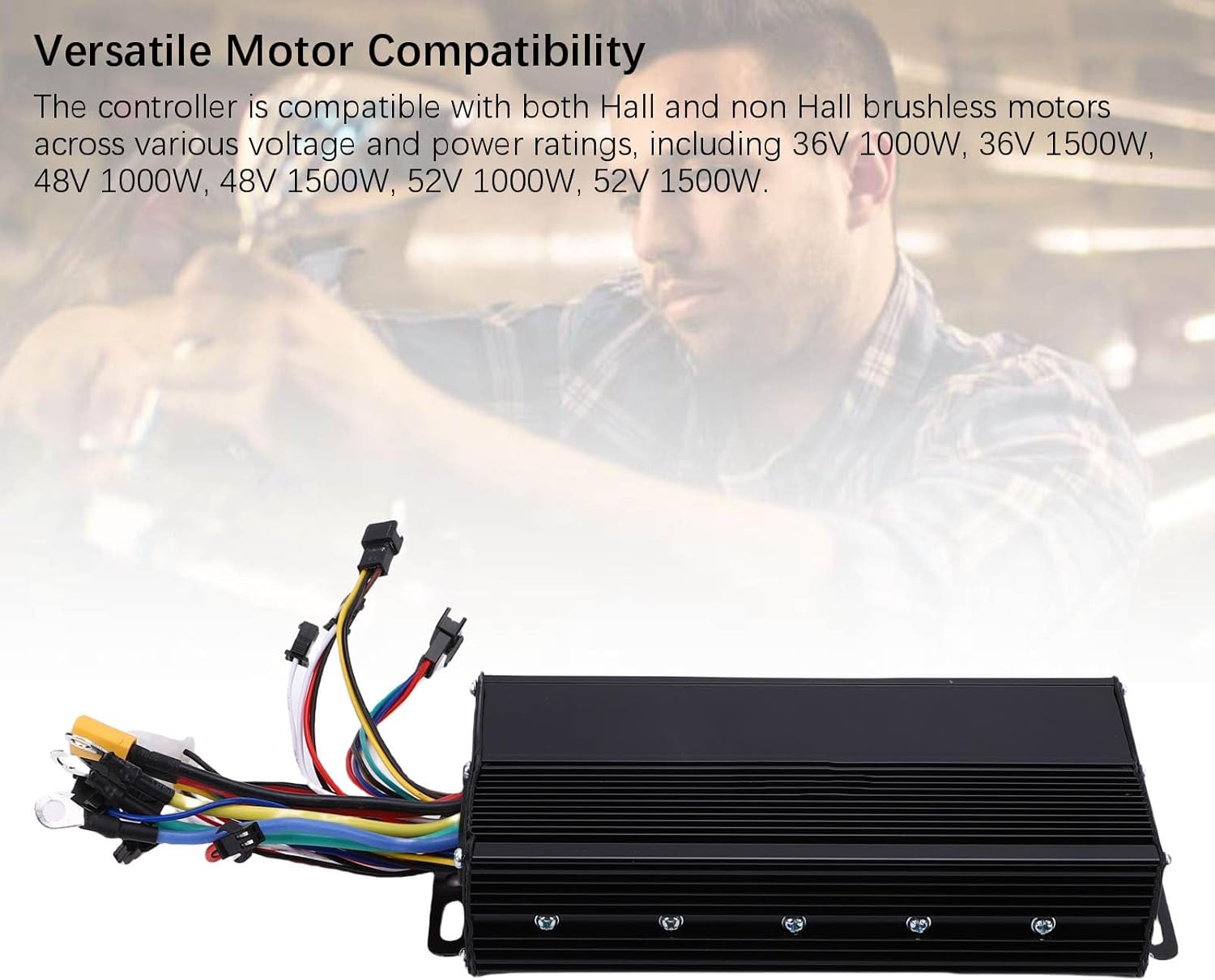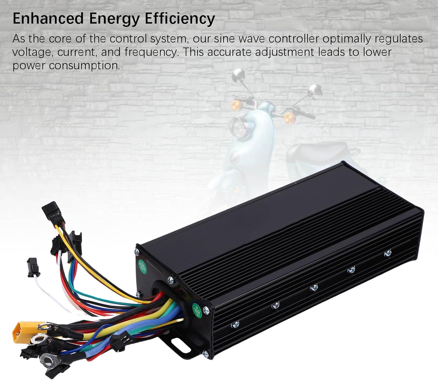 Compatibilità motore versatile: il controller è compatibile con motori brushless Hall e non Hall con vari valori di tensione e potenza, inclusi 36 V 1000 W, 36 V 1500 W, 48 V 1000 W, 48 V 1500 W, 52 V 1000 W, 52 V 1500 W. Maggiore efficienza energetica: essendo il nucleo del di controllo, il nostro controller a onda sinusoidale regola in modo ottimale tensione, corrente e frequenza. Questa regolazione accurata porta a un consumo energetico inferiore. Eccellente gestione termica: costruito con robusti gusci in alluminio, questo controller elettrico per mountain bike eccelle nella dissipazione del calore. L'efficace gestione termica protegge le prestazioni del . Funzionamento intuitivo: progettato pensando alla semplicità, il controller del motore brushless dello scooter elettrico presenta impostazioni semplici, che facilitano l'utilizzo e la configurazione da parte degli utenti. Durata e affidabilità: costruito in lega di alluminio, il nostro controller per motore brushless per scooter non è resistente all'abrasione ma anche robusto, garantendo prestazioni di lunga durata. Garantisce un'esperienza di guida stabile.