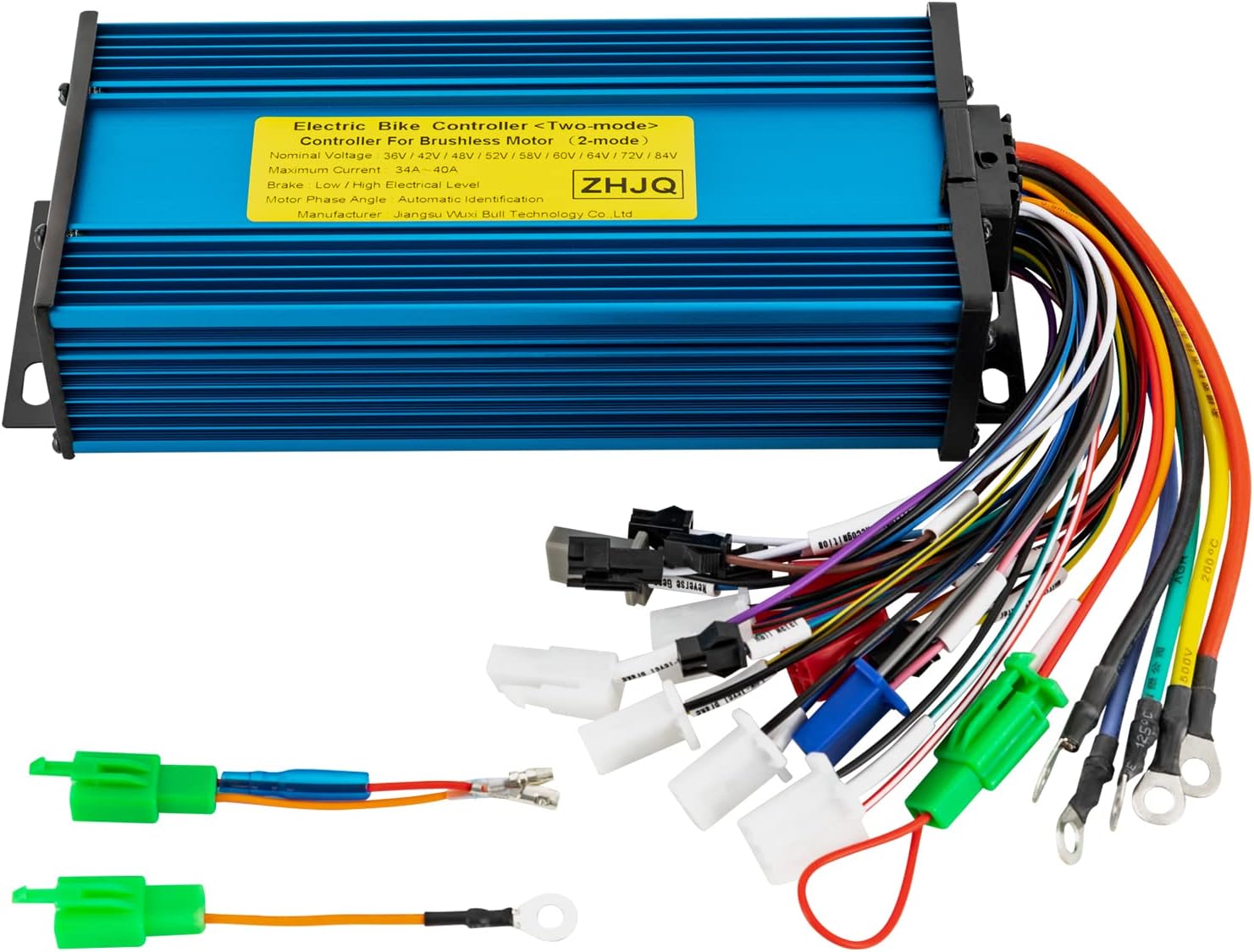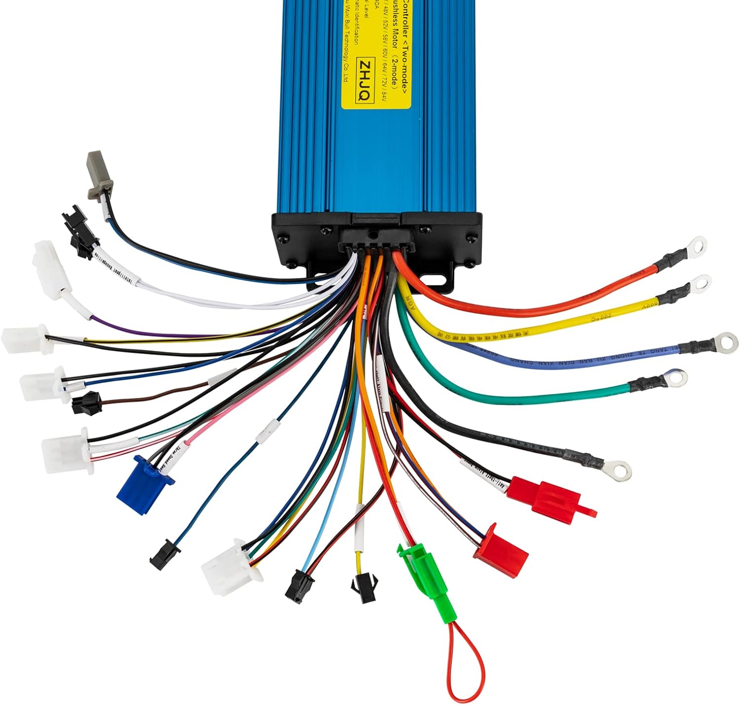 ✿ Robusto e durevole: il guscio in lega di alluminio presenta segni di usura causati dall'ingresso di acqua. Il filo principale in silicone può prevenire ustioni e le coperture su entrambi i lati possono fornire una protezione completa contro spruzzi d'acqua, nebbia e polvere. Nel frattempo, la scheda madre interna adotta la tecnologia di saldatura e il tubo MOS può resistere alla pressione e garantire stabilità e affidabilità del prodotto. ✿ Controllo intelligente del chip: utilizzando un nuovo metodo di calcolo, questo chip può migliorare la velocità di elaborazione, ridurre il consumo di energia e rilevare automaticamente le modalità del motore e ottenere modalità operative adeguate in base alle proprie esigenze e operazioni, consentendo di godere di un'esperienza ciclistica efficiente e intelligente senza regolazione manuale. ✿Altamente funzionale: è dotato di cavi di collegamento con varie specifiche, è possibile scegliere i cavi appropriati in base alle diverse esigenze per ottenere funzioni come avvio graduale, funzione di limite di velocità e funzione di frenatura di spegnimento. Il controller del motore brushless può fornire una velocità stabile e un controllo sensibile della frenata e della commutazione. ✿Design accurato: i freni EABS flessibili possono ridurre l'impatto della frenata sul motore e ridurre il rumore della frenata, aumentando significativamente la sicurezza e l'affidabilità del sistema frenante del veicolo creando allo stesso tempo un ambiente di guida silenzioso per te. Allo stesso tempo, riduce il rumore e le vibrazioni durante i processi di avviamento risolvendo gli svantaggi della corrente pulsante nei motori brushless. ✿Più sicuro da usare: protezione da sottotensione, protezione da sovracorrente, protezione da sovratemperatura, funzione di rilevamento del blocco, funzione di limite di velocità e corrente, protezione antifurto, protezione da cortocircuito del tubo MOS, funzione di spegnimento completo e funzione di autotest possono garantire un utilizzo sicuro.