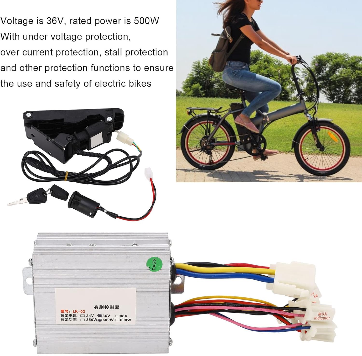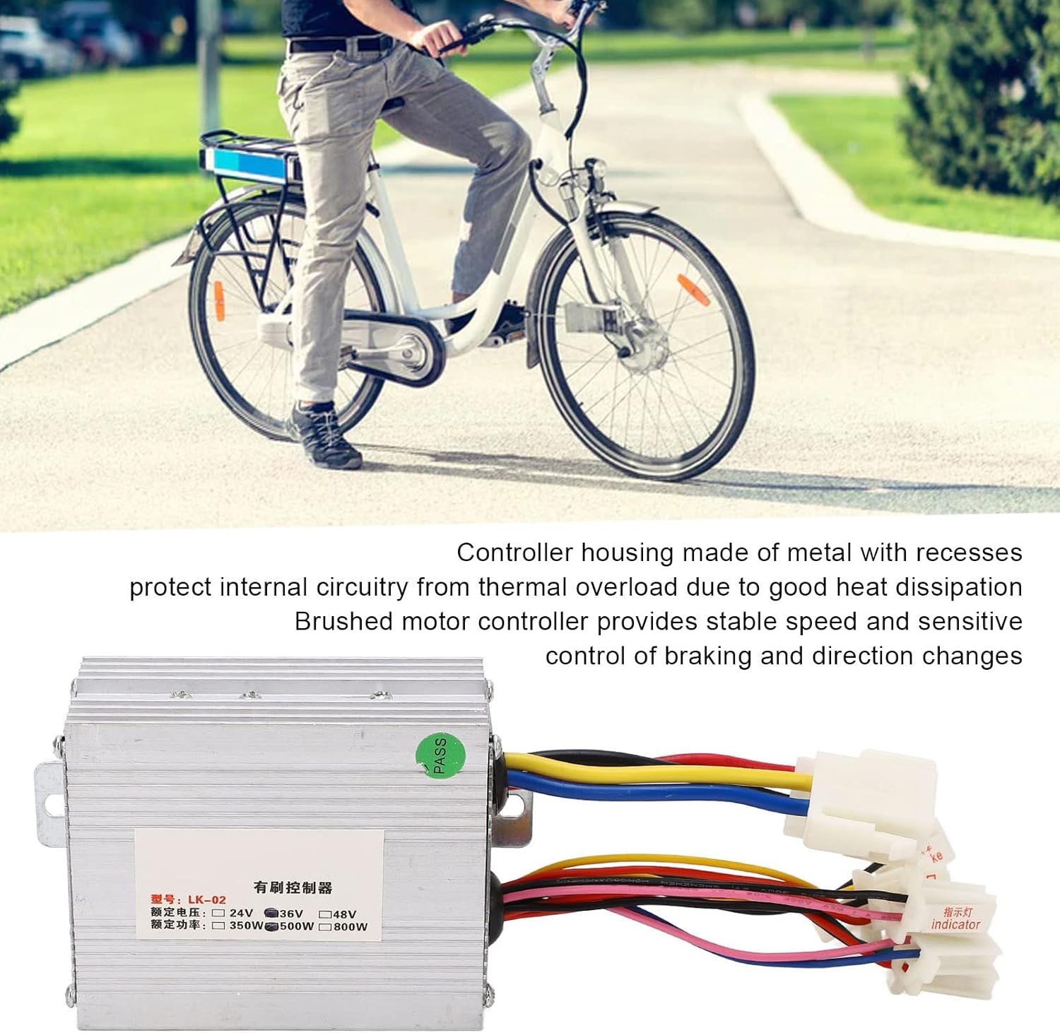 Buona dissipazione del calore: l'alloggiamento del controller è in metallo con ritagli per proteggere il circuito interno dal sovraccarico termico grazie alla buona dissipazione del calore. Velocità stabile: i controller del motore delle spazzole possono fornire una velocità stabile e un controllo sensibile per la frenata e i cambi di direzione. Ambito dell'impugnatura dell'acceleratore: l'impugnatura dell'acceleratore della bici elettrica è adatta per bici elettriche da 12 V 99 V, bici elettriche modificate, scooter, tricicli e altri veicoli elettrici. Multifunzionale: tensione di 36 V, potenza nominale di 500 W, prestazioni stabili e affidabili. Ha funzioni di protezione come protezione da sottotensione, protezione da sovracorrente e protezione da stallo per garantire l'uso e la sicurezza della bici elettrica. Ampie applicazioni del controller: il controller è adatto per biciclette elettriche, tricicli elettrici, motocicli elettrici e una varietà di applicazioni.