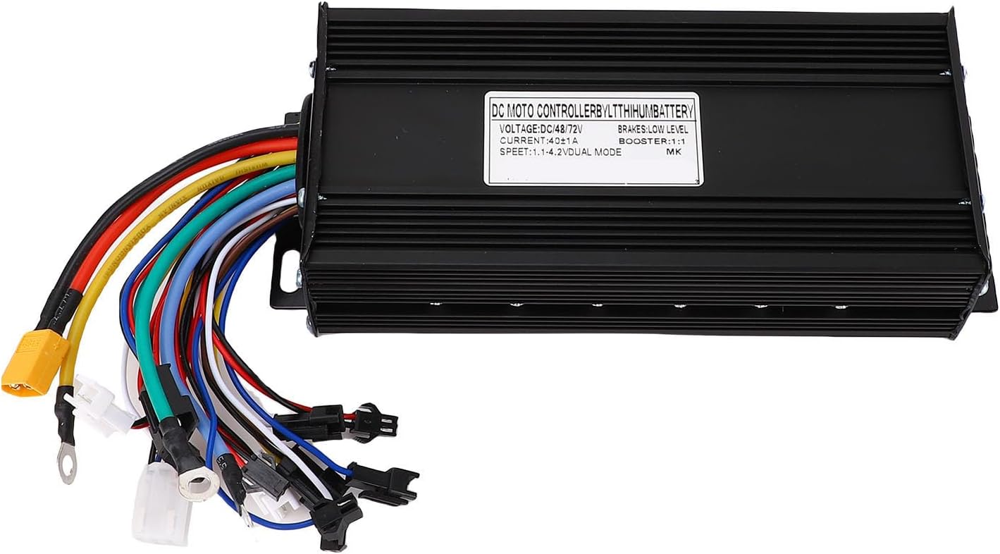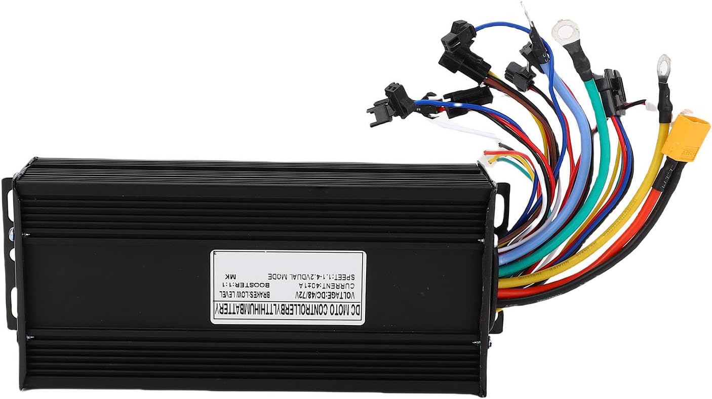 [Efficiente dissipazione del calore] L'involucro scanalato in lega di alluminio dissipa efficacemente il calore, proteggendo il circuito interno e l'integrità del cablaggio. [Compatibilità versatile] Questo controller supporta 1500 W 2000 W, con motori brushless Hall e senza Hall, ideali per la modifica dello scooter elettrico. [Protezione corrente massima] Resiste fino a 40 A in breve tempo; Interrompe l'alimentazione al sistema ad alte temperature. [Connessioni stabili] Interfacce multiple e design standard garantiscono connessioni stabili, fornendo un controllo conveniente per il tuo scooter elettrico. [] Il robusto alloggiamento in lega di alluminio resiste ai dossi stradali e agli ambienti difficili, per la modifica dello scooter elettrico.
