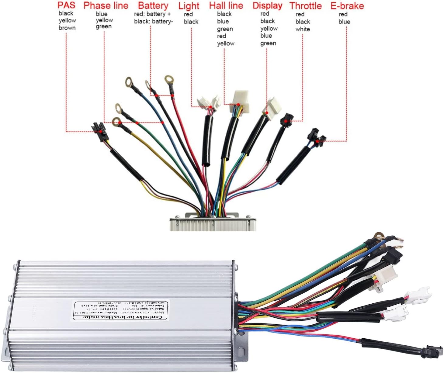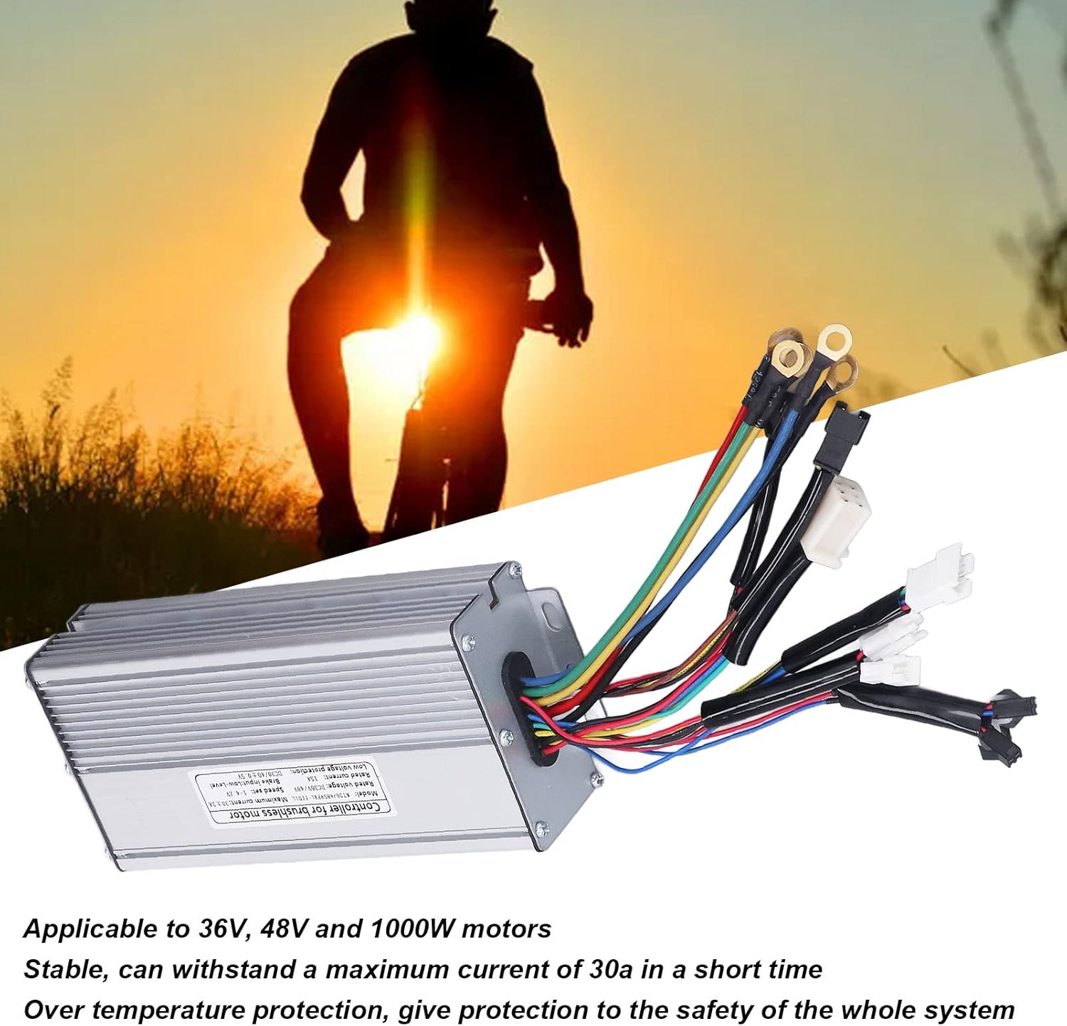 Applicabilità: il controller per bici elettrica è applicabile ai motori da 36 V, 48 V e 1000 W. L'eccellente fattura lo fa funzionare bene con il motore e la batteria, garantendo un funzionamento regolare ed efficiente della tua bici elettrica.,Corrente massima di 30 A: la scheda controller è molto stabile, utilizza 12 tubi MOS stabili e può sopportare la corrente massima di 30 A in breve tempo, offrendoti un migliore controllo della corsa. Puoi usarlo con sicurezza 【Protezione da sovratemperatura】: Quando la temperatura è troppo alta, il controller del motore interromperà l'alimentazione per proteggere la sicurezza dell'intero sistema e garantire un'esperienza di guida affidabile e sicura 【Buona dissipazione del calore】: Il controller di modifica della e-bike ha una buona dissipazione del calore, che può prevenire danni al filo e sovraccarico termico. Questo è importante per massimizzare la durata del motore e della batteria della tua bici elettrica, poiché il surriscaldamento può causare gravi danni. Con la sua interfaccia intuitiva, il controller dell'e-bike consente una facile regolazione della velocità e della potenza erogata