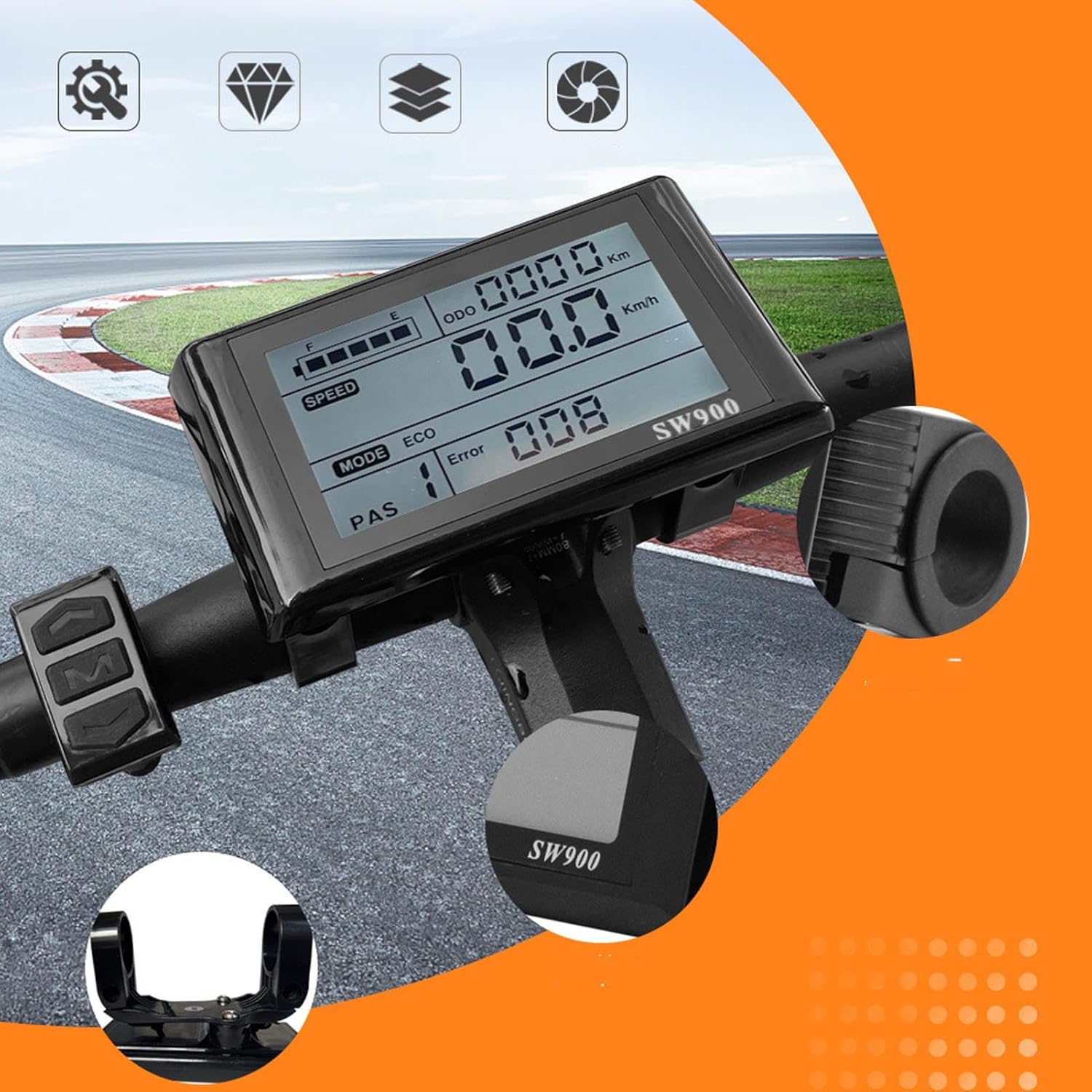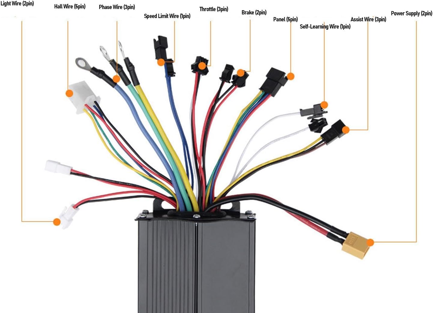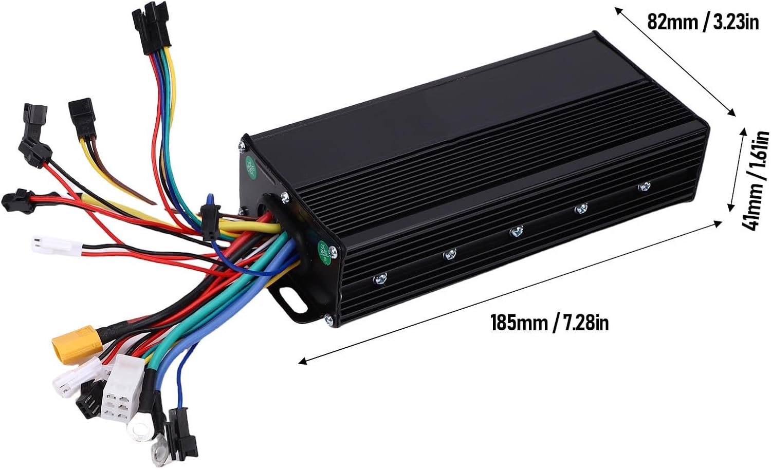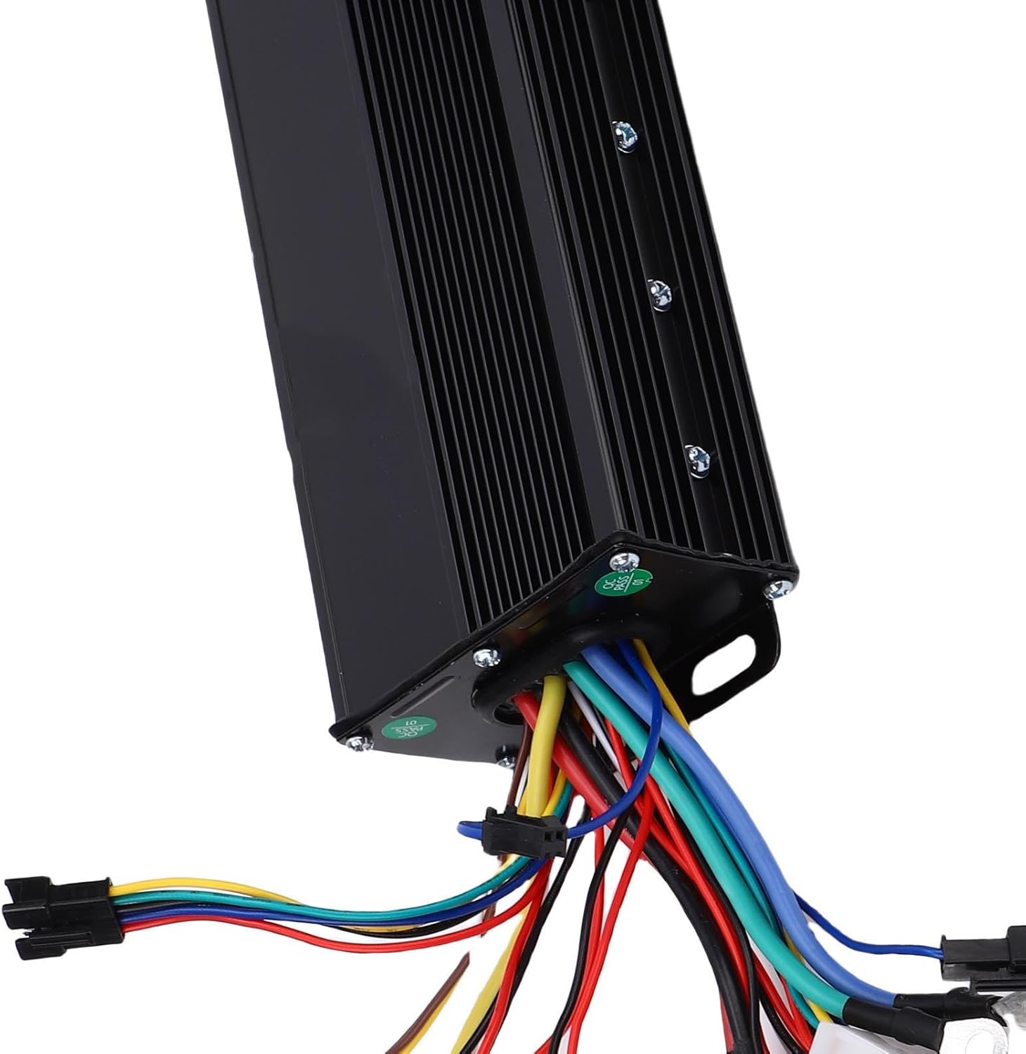 Controller a tre modalità: il controller è un controller a 3 modalità a onda sinusoidale, compatibile con motori brushless Hall e non Hall, con funzione di autoapprendimento. Ampiamente applicabile: il controller del motore è adatto per motori brushless da 36 V 1000 W, 36 V 1500 W, 48 V 1000 W, 48 V 1500 W, 52 V 1000 W e 52 V 1500 W. Alloggiamento in alluminio ispessito: il controller adotta un alloggiamento spesso in lega di alluminio, robusto e duraturo, che garantisce una buona dissipazione del calore. Display LCD retroilluminato: lo schermo LCD può mostrare chiaramente lo stato e i dati e la retroilluminazione consente di vedere chiaramente lo schermo in ambienti scarsamente illuminati. Resistente all'acqua: il display LC della bici elettrica è impermeabile e resistente al sudore, sicuro da usare, con un'interfaccia semplice e concisa, comoda da leggere.