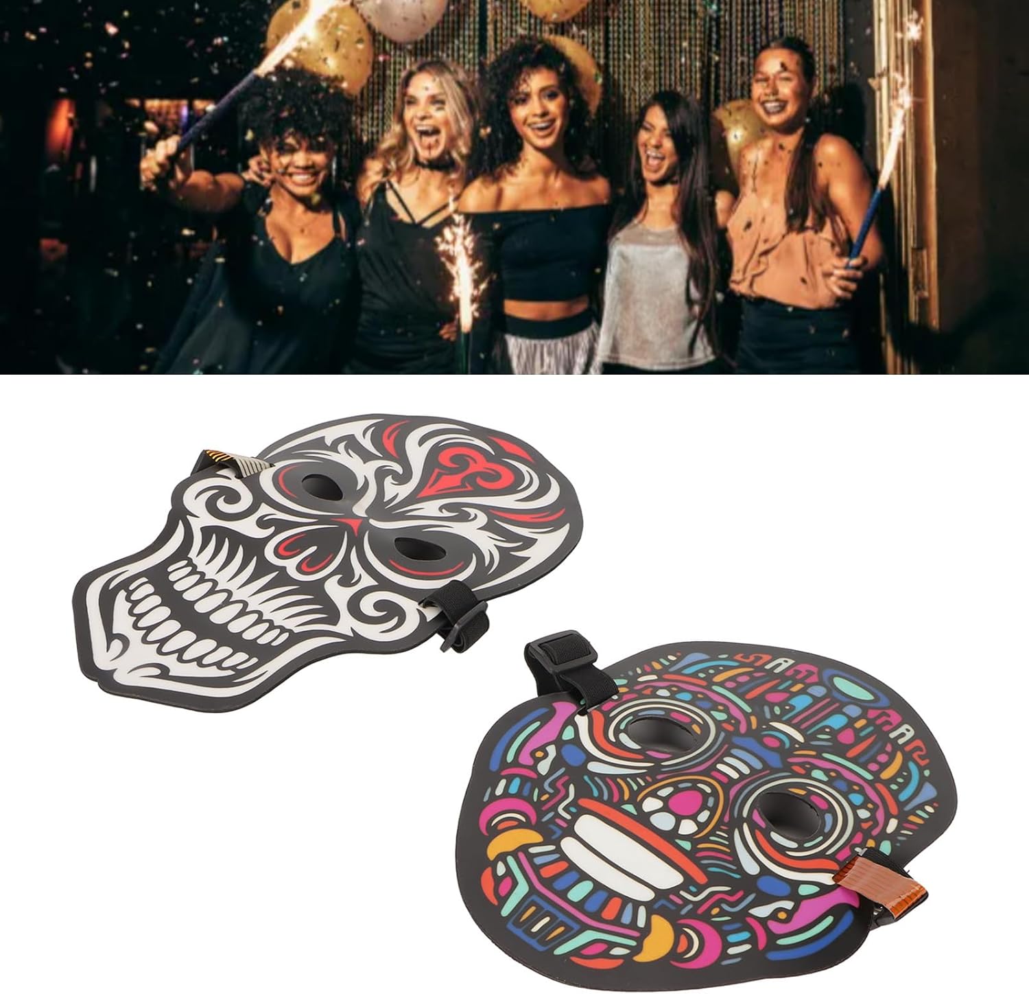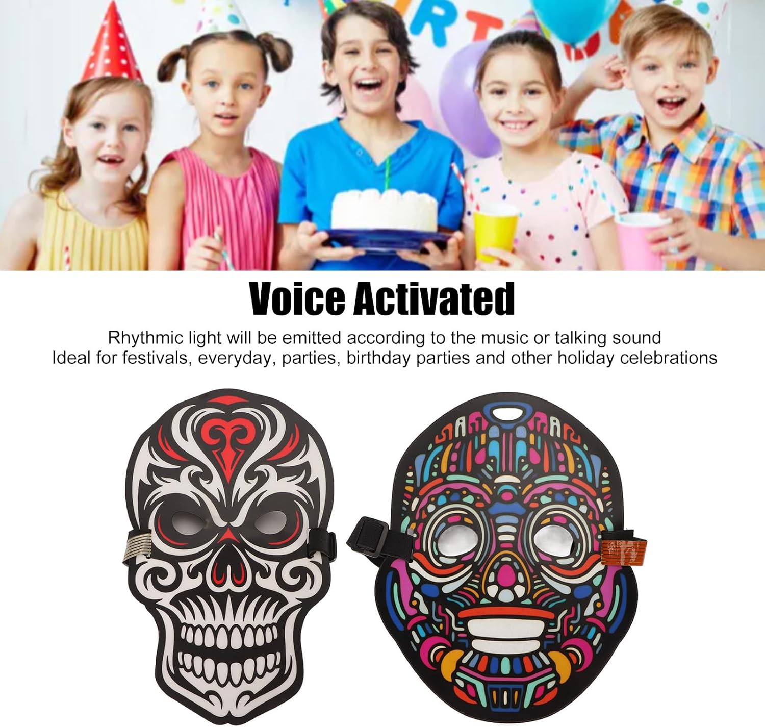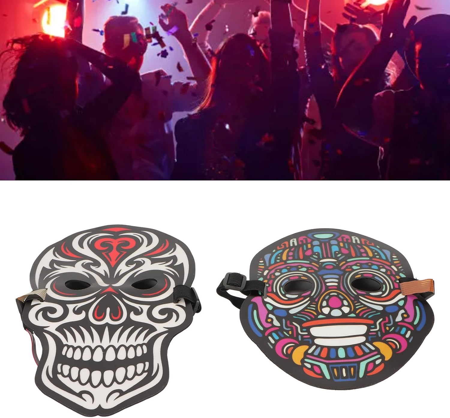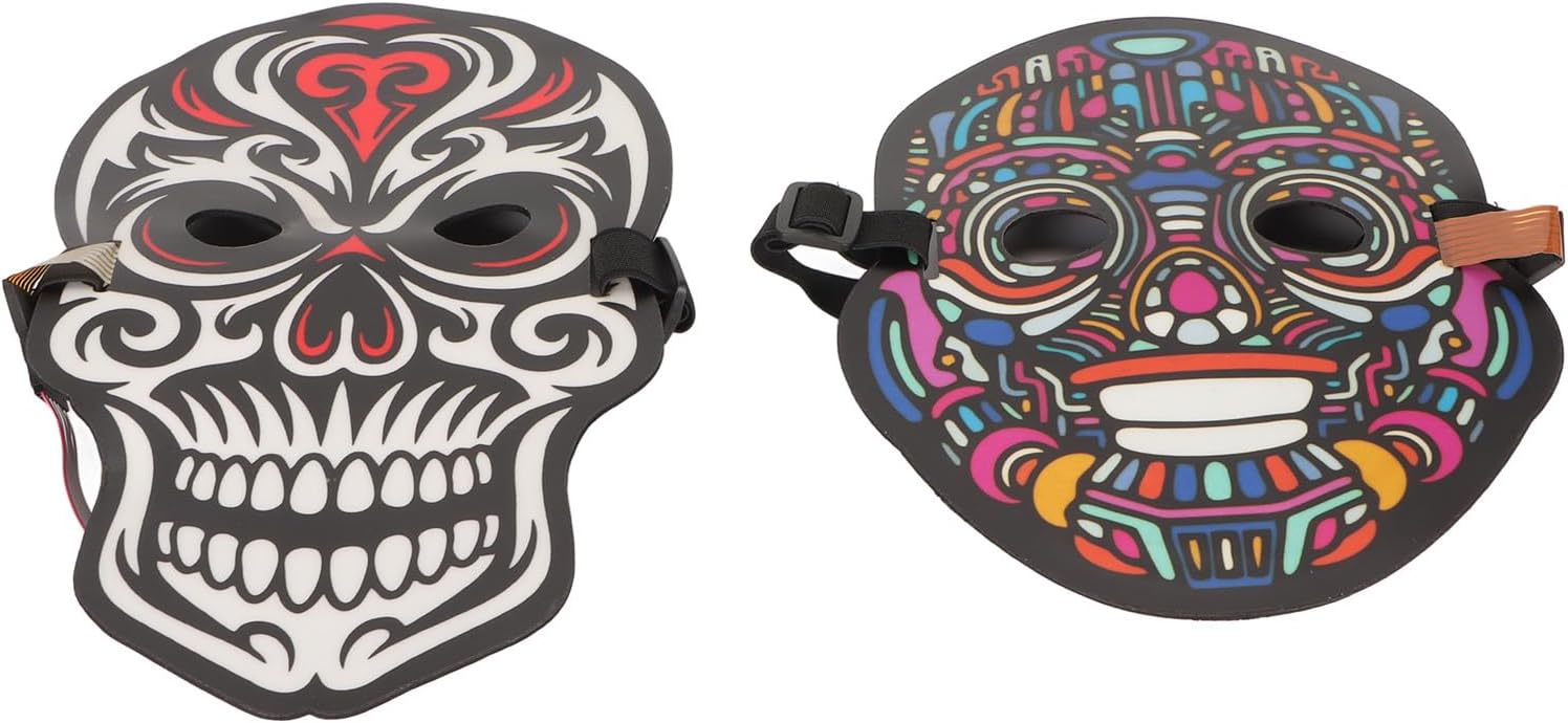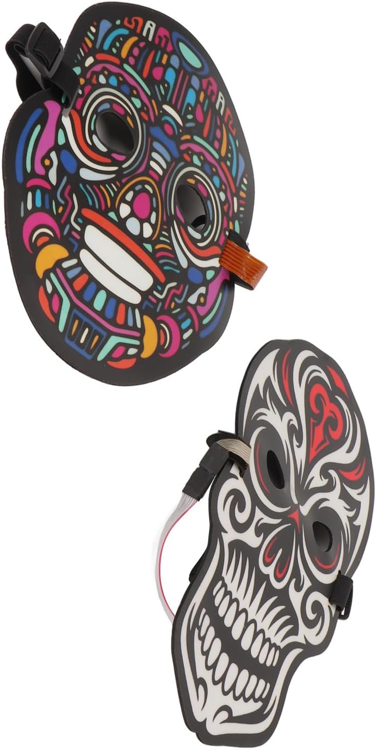 [Materiale premium] Le coperture per il viso a LED sono realizzate in ABS ecologico, inodore, non deformabile, colorato, robusto e resistente. [El Wire Technology] Tutti i fili di illuminazione sono realizzati in filo El, che forniscono una luce morbida, a risparmio energetico e ecologico. [Design leggero] La copertura del viso illuminata è comoda e può essere indossata per lunghi periodi senza causare disagio. [Funzione del sensore sonora] Emissione di luce ritmica sincronizzata con musica o suono parlante, per festival e feste. [Regolabile e versatile] viene fornito con una banda elastica per adattarsi a uomini, donne, adulti e bambini, adatti a varie occasioni.
