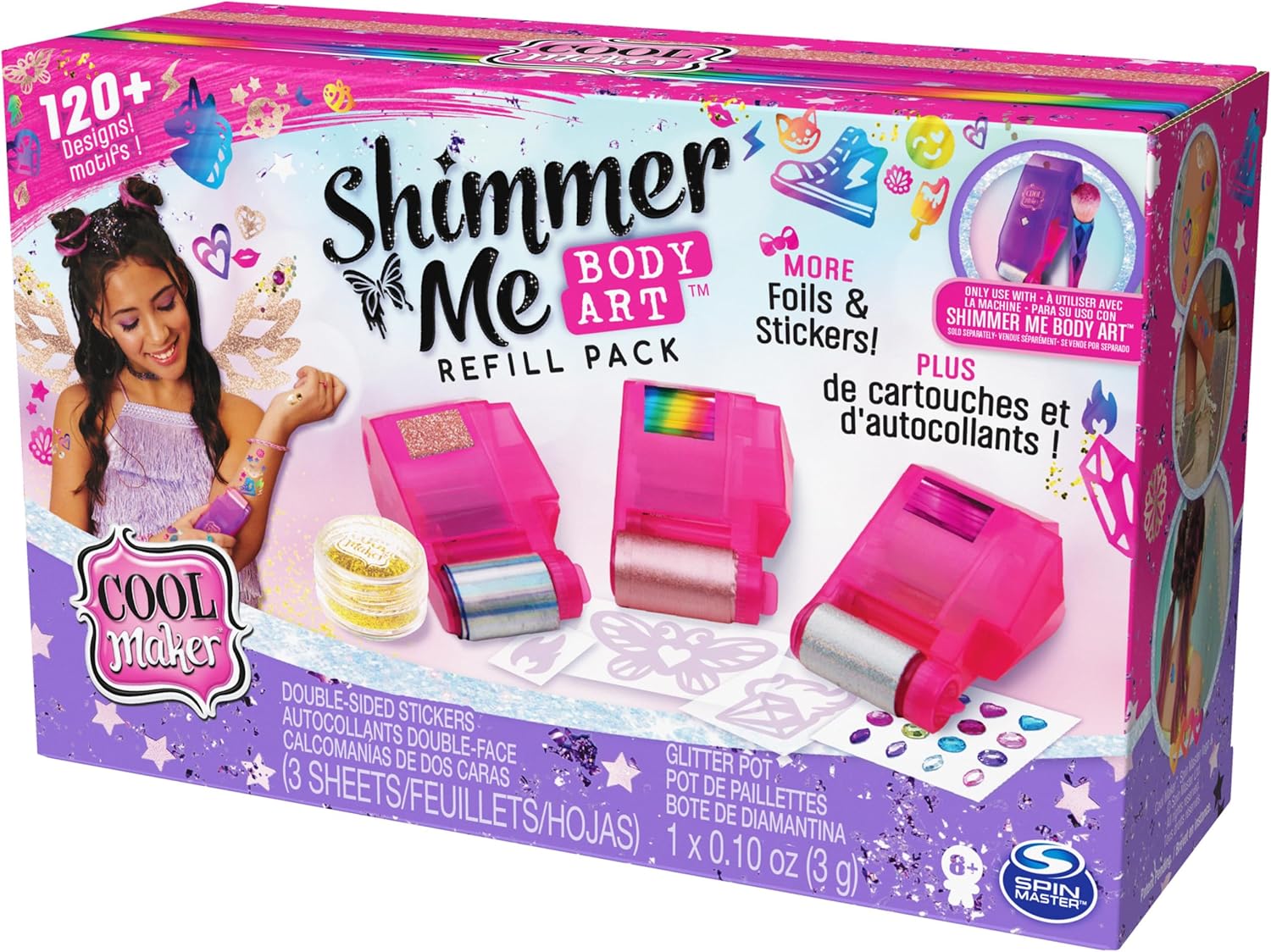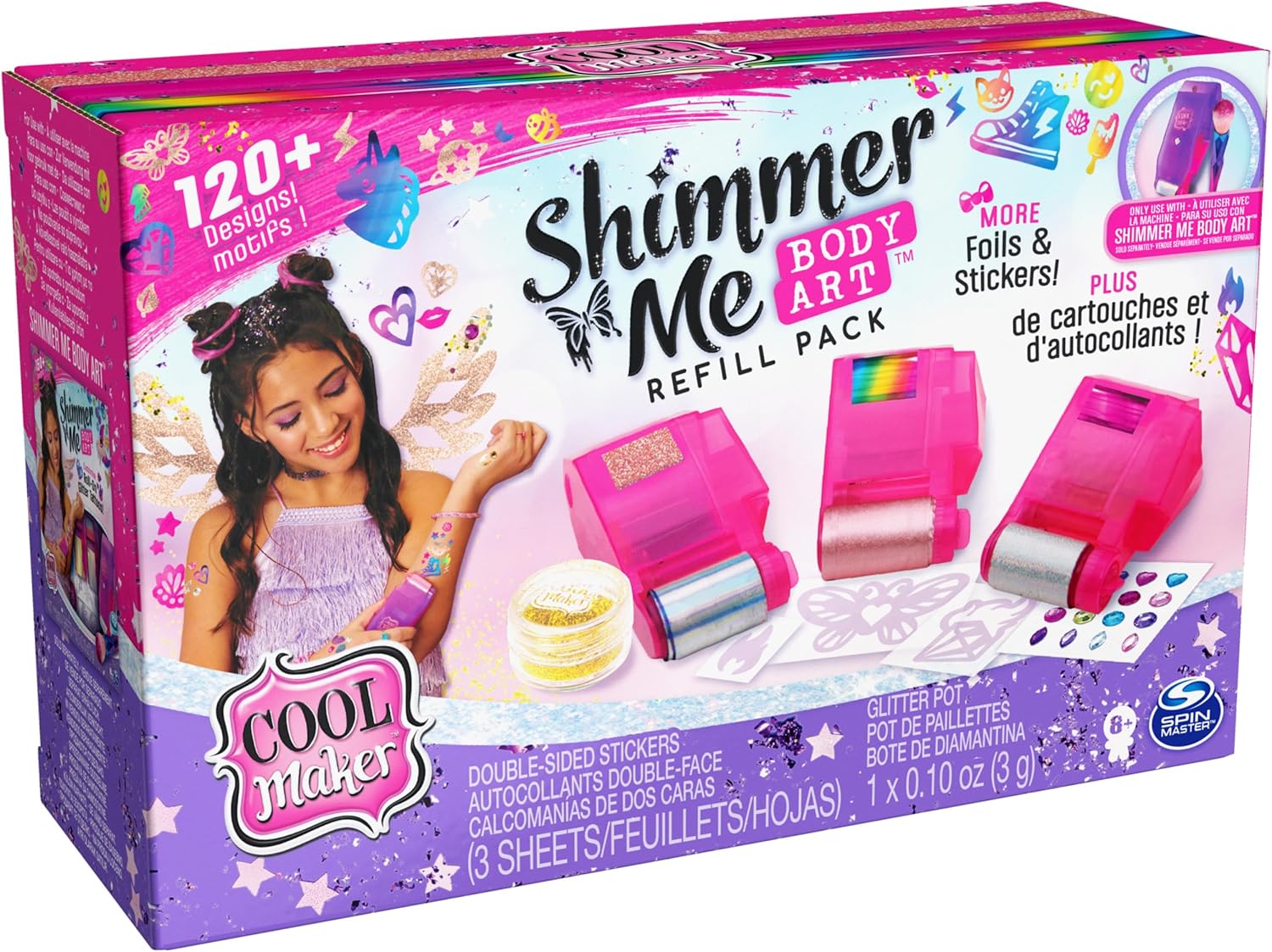 Cool Maker Shimmer Me Body Art Refill Pack con Glitter esclusivi, 3 Fogli Metallici, Oltre 120 Disegni, Tatuaggi temporanei per Bambini dai 8 Anni in su