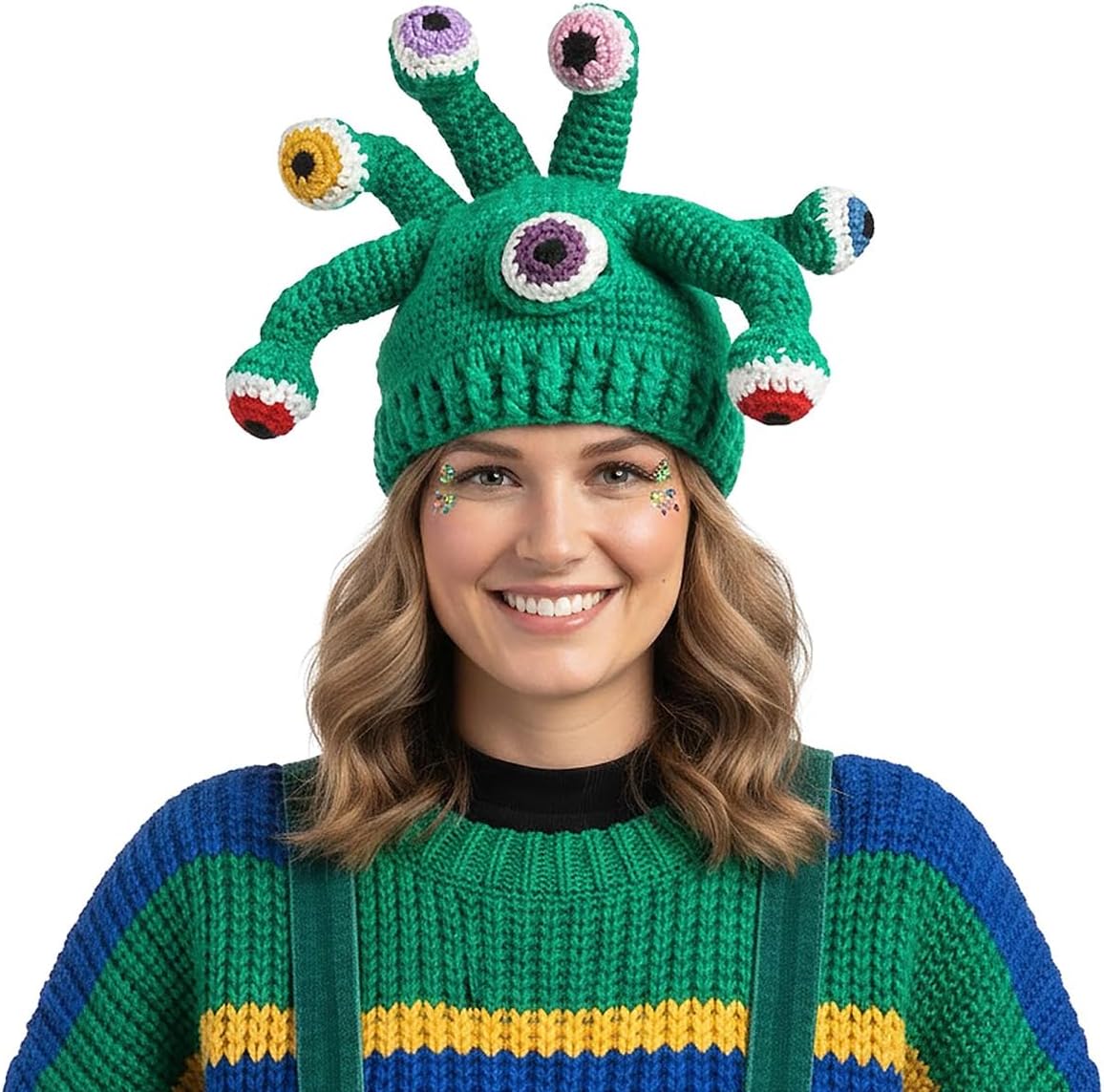 ????Cosa trovi in confezione? Nella confezione arriva un cappello invernale ????La mia esperienza con il prodotto: Cercavo un cappello da usare in vacanza che non fosse il classico berretto. Questo cappello è molto divertente e simpatico, di un colore turchese acceso molto pigmentato e il colore dell’iride dei vari occhi tutti diversi. Credo sia adatto sia per uscire con un outfit semplice per spezzarlo un po’, sia per le occasioni più particolari come ad esempio halloween. Ottimo anche per i bambini!! ❗️ leggi questo, potrebbe tornarti utile: La circonferenza di questo berretto è di 52 cm ????????Difetti? Non ne ho trovati ????????Pregi? Simpatico Caldo