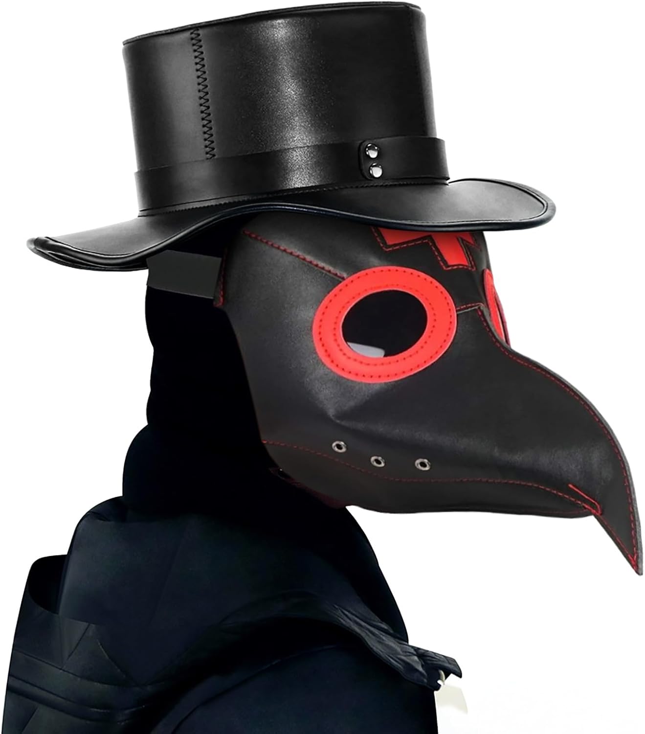 Questa maschera tipica del periodo della peste è il complemento perfetto per un costume di Halloween o steampunk. La maschera a becco è realizzata in pelle sintetica e ha una dimensione di circa 16x17 cm. La maschera dal becco ha due visiere scure e aperture per respirare e parlare. Un'ampia fascia elastica sul retro garantisce una vestibilità comoda per la maschera. Fornitura: 1x maschera contro la peste