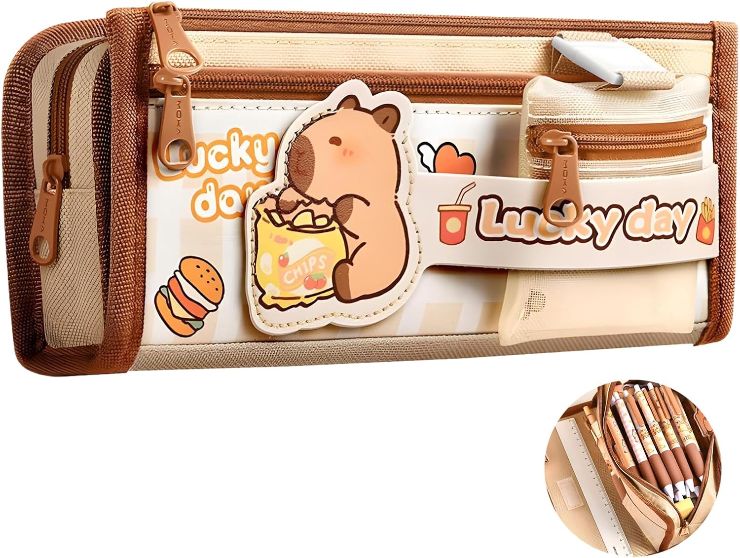 L'astuccio ha un ampio scomparto principale con una patta interna con un organizer per penne e una tasca a rete con cerniera: ci sarà posto per tutti i ninnoli necessari. Il prodotto è realizzato in poliestere resistente e antimacchia. Le pareti rinforzate proteggeranno i tuoi oggetti dai danni. Materiale: poliestere