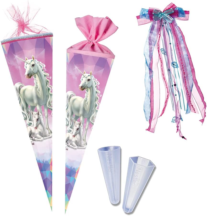 Sacchetto per la scuola individuale, stabilizzato da una carta vergine di alta qualità che può essere imballata a piacimento. Perfetto per l'inizio della scuola, design raffinato, completamente realizzato in Germania Dimensioni: 70 cm Dopo l'inizio della scuola, il sacchetto di zucchero può essere trasformato in cuscino. Tessuto esterno: 100% poliestere con percentuale di poliestere riciclato. Falda: 62% cotone, 38% acetato, 80% poliestere, 20% viscosa