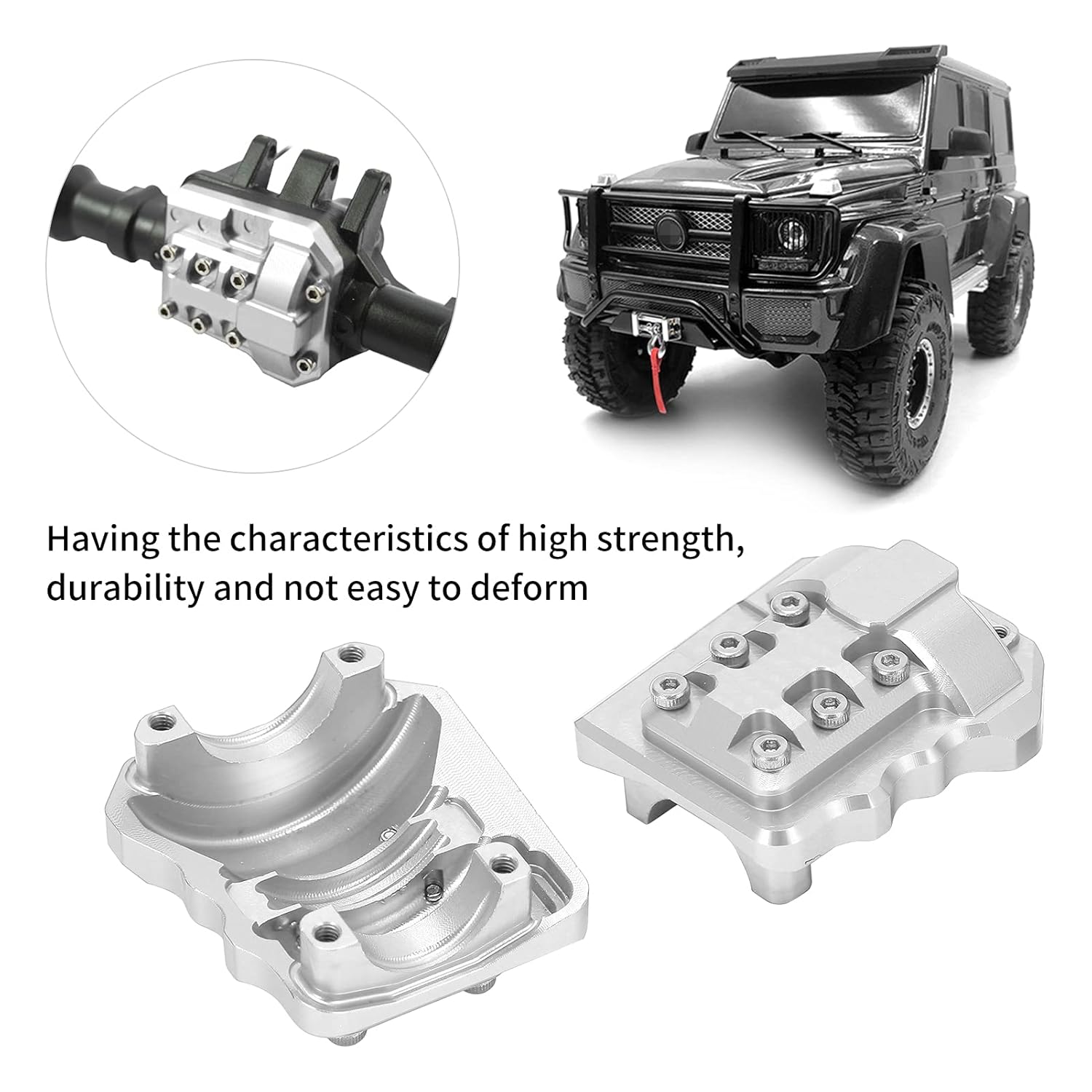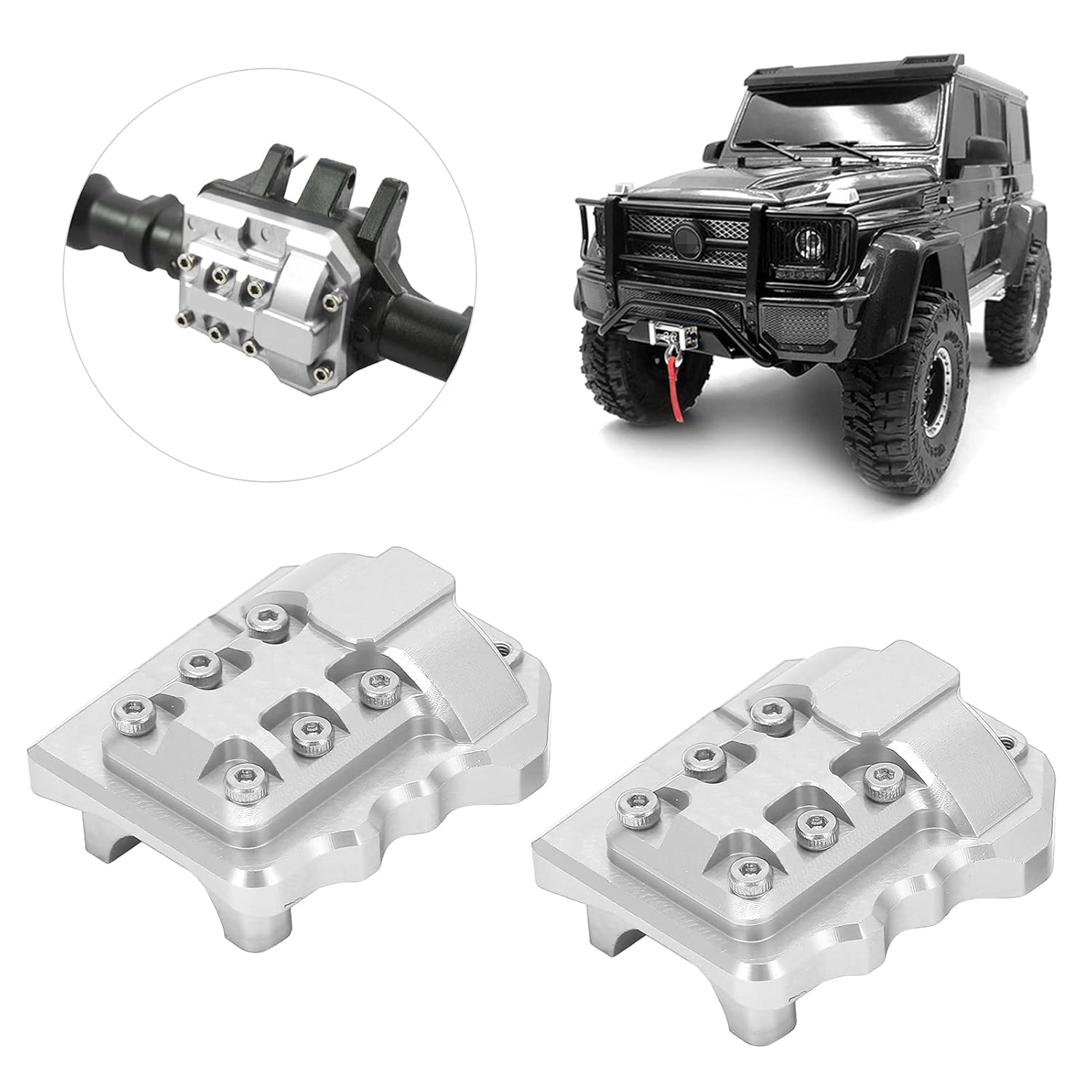 [Design ragionevole]: migliora le prestazioni complessive del veicolo sostituendo facilmente il modello originale. [Materiale ad alta resistenza]: costruito in lega di alluminio durevole, garantendo un uso di lunga durata senza deformazione. [Squisita lavorazione]: l'aspetto nuovo e i dettagli precisi lo rendono un aggiornamento ideale per le auto modello. [Installazione leggera e facile]: non aggiunge peso extra al crawler RC, semplice da installare e smontare. [Compatibilità e durata]: progettato specificamente per le auto 1/10, offrendo una soluzione robusta e duratura per le esigenze di copertura del ponte RC.
