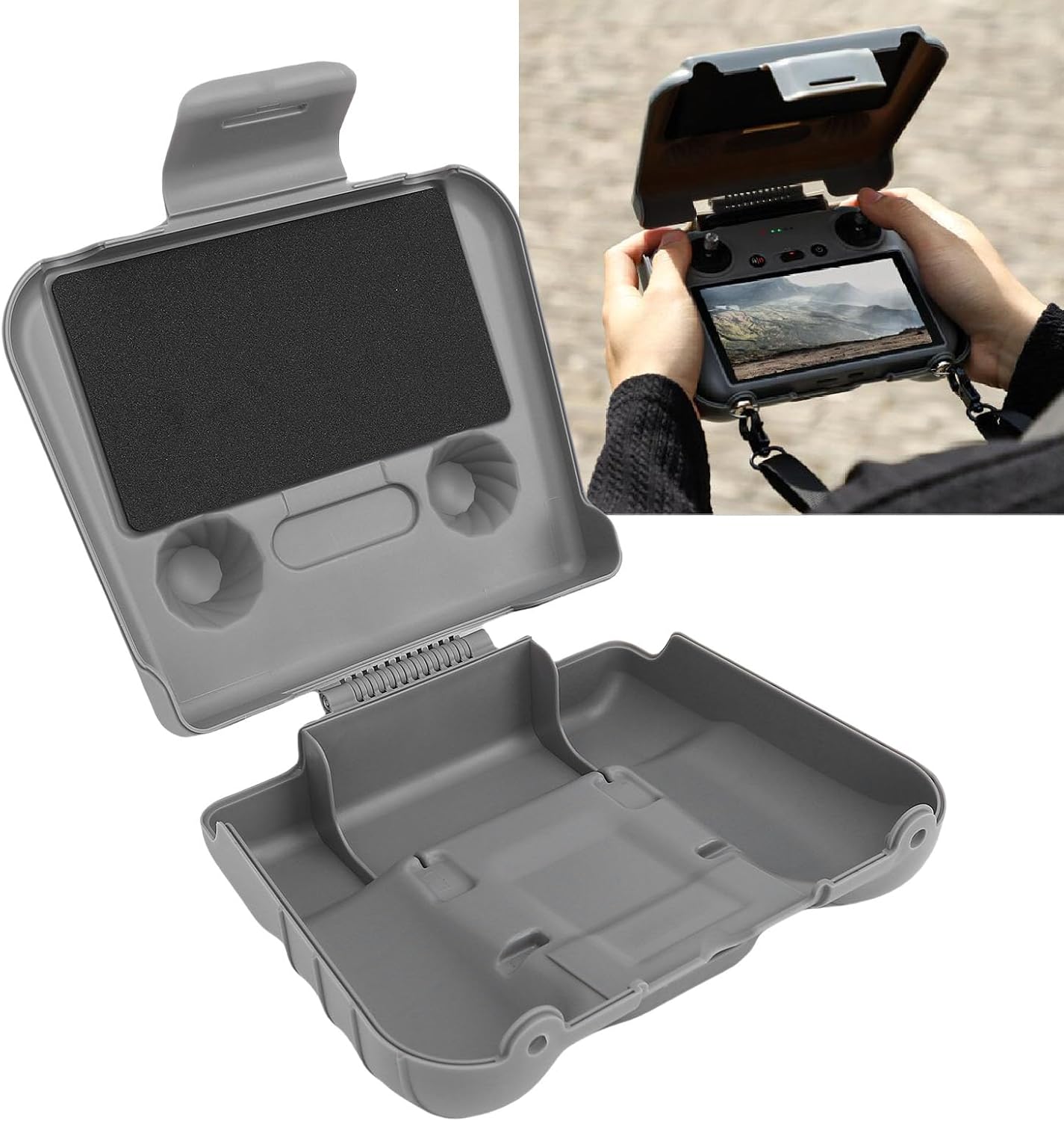 Effettiva ombreggiatura del sole e riduzione dell'abbagliamento: il coperchio del cofano sole remoto fornisce un'ombreggiatura efficace per impedire il riflesso e l'abbagliamento dello schermo. Questo essenziale ombrellone anti -bagliore ti assicura di avere una visione più chiara dei ti di volo e del feed della fotocamera durante la fotografia e la videografia all'aperto, anche in luce solare luminosa e diretta per una migliore esperienza di volo. Piatta per tonalità flessibile e regolabile: un design unico di smorzamento consente alla piastra dell'ombra di fermare e mantenere la sua posizione in qualsiasi angolazione. La piastra regolabile di questa copertura della protezione dello schermo migliora notevolmente le prestazioni del sole, permettendoti di trovare l'angolo ideale per bloccare il sole senza ostruire la vista dello schermo o l'accesso ai controlli. MANUSI DUPPOGRI INGRESSATIVI: la maniglia integrata funziona sia come maniglia di carry a mano como sia come comodo supporto tavolo. Questo doppio scopo sulla custodia portatile si rivolge a diverse esigenze, fornendo un modo semplice per trasportare il controller, offrendo anche una base stabile per visualizzazione o funzionamento delle mani su qualsiasi superficie piana. Fit preciso e discreto: un design di modellazione preciso assicura perfettamente la copertura protettiva si atta al tuo telecomando specifico senza interferire con delle sue funzioni. La semplice copertina di installazione consente l'accesso completo ai bastoncini di controllo, ai pulsanti e alle porte, fornendo una protezione eccellente senza compromettere l'usabilità del controller in alcun modo durante il volo. Costruzione durevole e protettiva: questo pezzo essenziale di attrezzatura di volo esterna è realizzato con materiale durevole per fornire una protezione affibile per il tuo controller remoto. La copertura non solo funge parasole ma funge anche proiettile protettivo, salvaguarndo il prezioso accessorio controller drone graffi impatti durante il trasporto e lo stoccaggio.