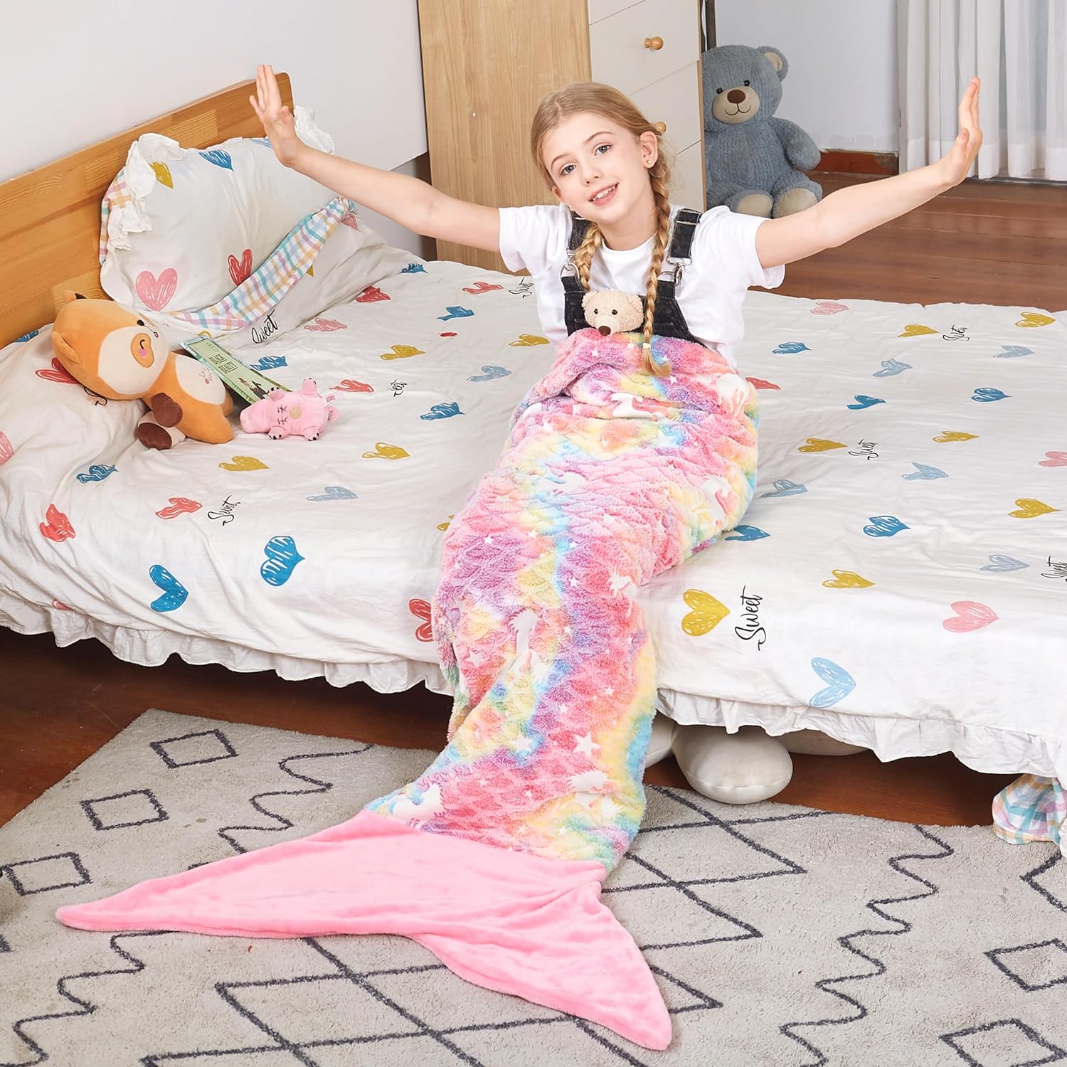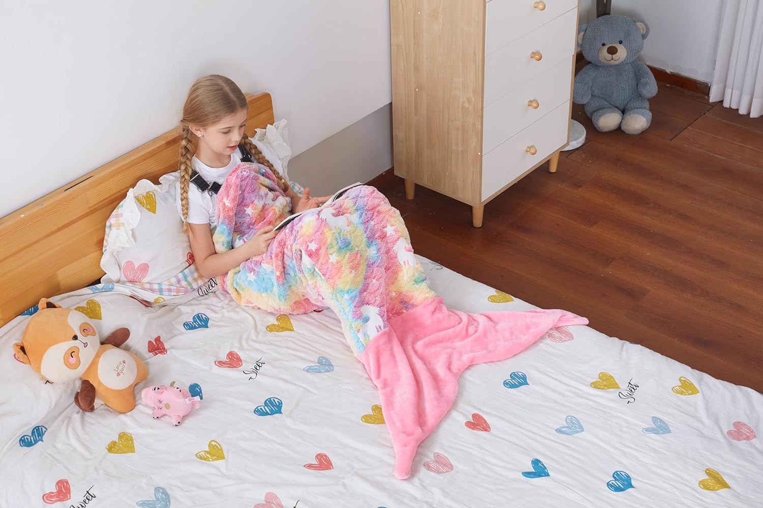 Coperta per bambini a forma di sirena di alta qualità di Catalogna, realizzata al 100% in poliestere, super morbida e soffice, offre al tuo bambino un sonno confortevole e caldo. Adorabile coperta per animali con coda, simile a un sacco a pelo, ideale per il divertimento e il relax. I tuoi sogni diventano realtà. Regalo ideale per un compleanno, Natale. Tocco ultra morbido per la tua pelle, traspirante, caldo e confortevole tutto l'anno. i genitori lo adorano, perfetto per giocare o fare un pisolino e può essere utilizzato sul divano, per i viaggi in campeggio, per i pigiama party, a letto, in macchina - ovunque! Numero articolo: 6CTMM503MUL