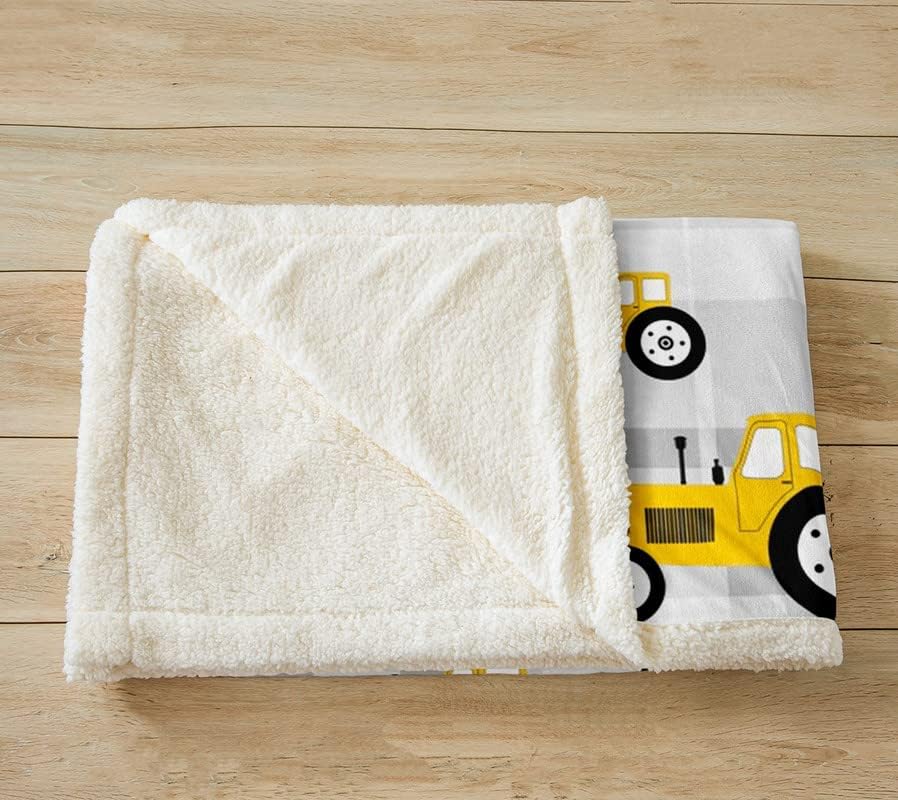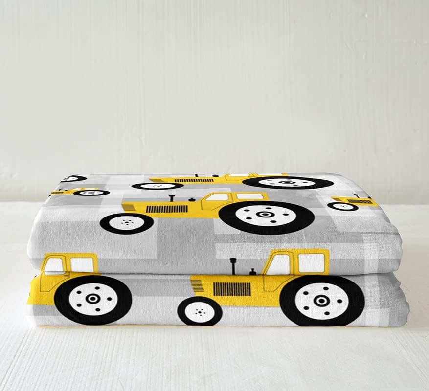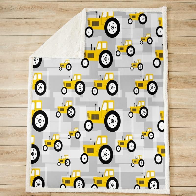 Coperta in peluche per trattore, colore giallo, cartone animato, per letto, divano, attrezzatura agricola, camion, sherpa, coperta, mietitrice, trattore, coperta sfocata, matrimoniale, 150 x 199 cm