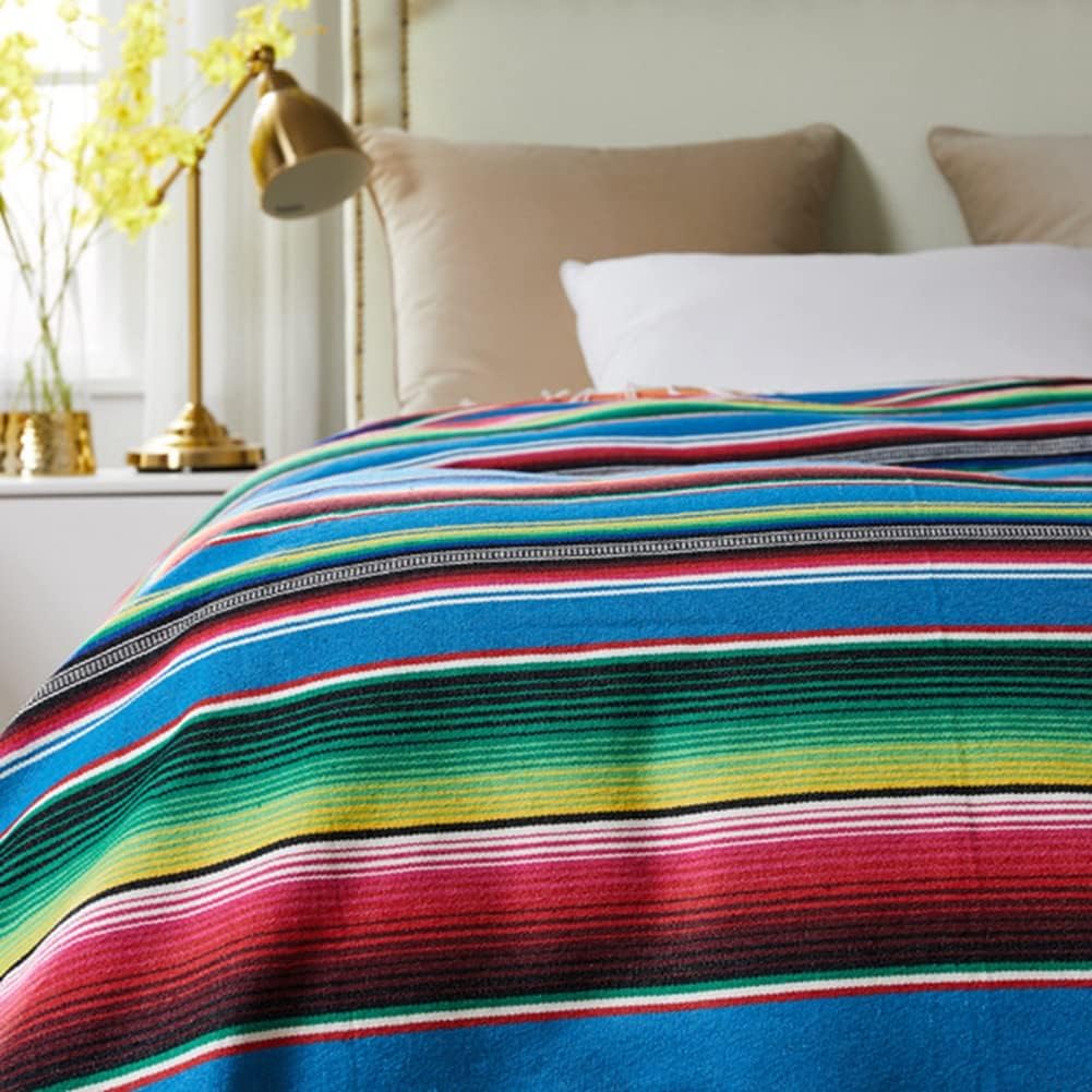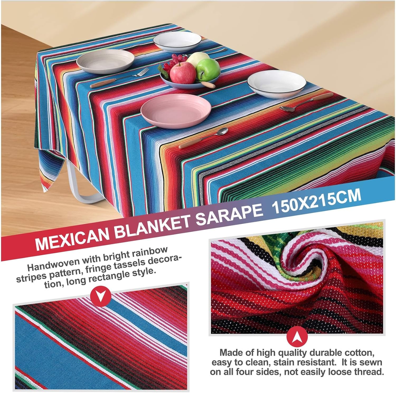 100% di zecca e di alta qualità. Adatto per feste a tema messicano, compleanno, matrimonio, festa, ringraziamento, halloween, natale e festa tribale. Realizzato in cotone resistente di alta qualità, facile da pulire, resistente alle macchie. È cucito su tutti e i lati, filo non facilmente allentato. Tessuto a mano con motivo a strisce luminoso, decorazione di nappe con frange, stile lungo rettangolo. Multifunzione: adatto per tovaglie, da picnic, coperte, decorazioni per pareti, tavolini e qualsiasi cosa tu debba coprire.