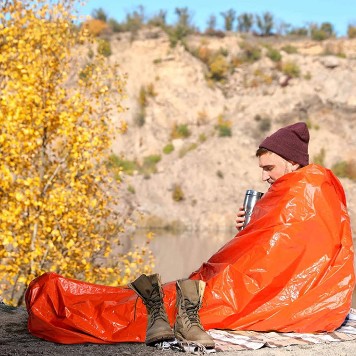 Design compatto e pieghevole: il sacco a pelo di sopravvivenza presenta un design pieghevole per una facile conservazione e un trasporto compatto, garantendo portabilità senza aggiungere ingombro pur mantenendo l'affidabilità in condizioni esterne Scudo dalle intemperie difficili: le superfici riflettenti alluminizzate avanzate garantiscono l'isolamento dell'aria fredda e la circolazione termica, trattenendo efficacemente il calore corporeo in condizioni estreme per prestazioni affidabili del sacco a pelo di sopravvivenza Protezione di sopravvivenza: questo sacco a pelo di sopravvivenza è progettato per l'uso in rifugio di sopravvivenza, combinando materiali impermeabili e resistenti agli strappi con superfici arancioni e riflettenti ad alta visibilità per migliorare la sicurezza all'aperto Facile da usare: raggiungi una rapida prontezza di sopravvivenza poiché non sono necessari attrezzi o assemblaggi; l'uso con una sola mano supporta lo svolgimento istantaneo per massimizzare l'efficienza nei momenti critici Robusto e innocuo: combina un bordo rinforzato con qualità resistenti all'usura, garantendo una lunga durata e un materiale antivento per migliorare la protezione durante le attività all'aperto