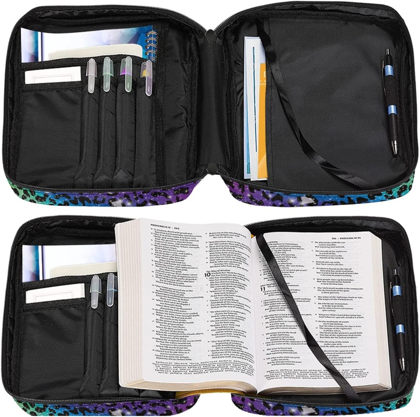 ★Materiale: è realizzato in tessuto di poliestere di alta qualità, resistente e robusto, leggero e lavabile. Non è una copertura rigida, molto flessibile da usare. ★Dimensioni: 28 x 6 x 22 cm, perfetta per la maggior parte delle Bibbie (grandi, standard) o libri. ★ Caratteristiche: questa elegante copertina biblica è ideale per proteggere la Bibbia o il libro da graffi tutto il tempo. La tasca posteriore con cerniera può contenere un piccolo blocco note, penna, telefono cellulare o alcune piccole cose. Le tasche interne possono contenere penna, evidenziatore, segnalibri, biglietti di preghiera e quaderni, ecc. Viene fornito con 1 cintura segnalibro e la maniglia su questo rende così portatile per portarlo in chiese, scuole, biblioteche. stanze di studio, viaggio,, in qualsiasi momento per il tuo studio biblico. ★ Multifunzionale e alla moda: design pratico che non solo da utilizzare come custodia della Bibbia, ma anche come borsa per cosmetici da viaggio, borsa per notebook, ecc. Stampa carina e alla moda ti porterà più felice. Vari colori e stampe tra cui scegliere, come girasole, cavallo, stampa animale, galassia, frutta, tartaruga, fiori vintage, bandiera americana, ecc. ★ Bel regalo: questa borsa per libri da trasporto è un regalo perfetto per familiari, amici, amanti per feste cristiane, giorno del Ringraziamento, Natale o altre feste.