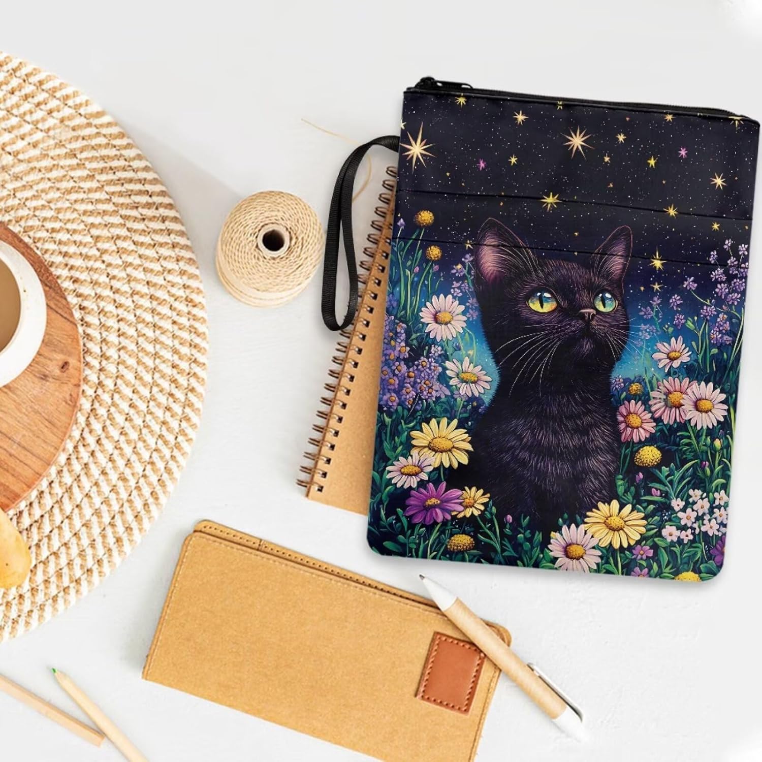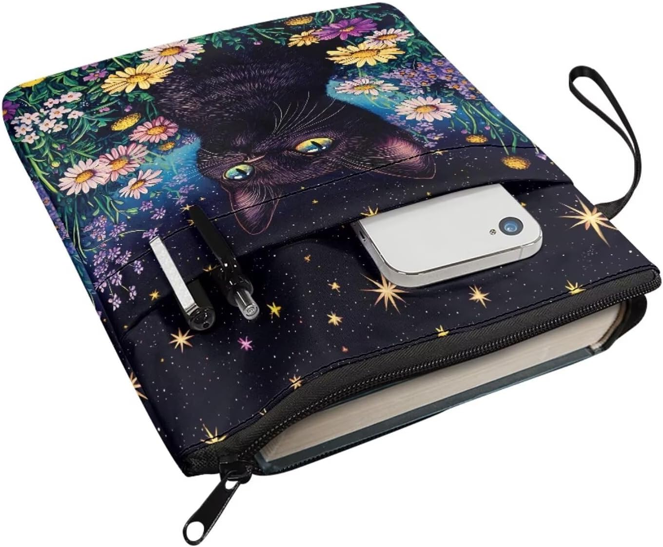 Copertina del libro con cerniera Daisy riutilizzabile con tasca frontale liscia con cerniera per penna per bibliofili
