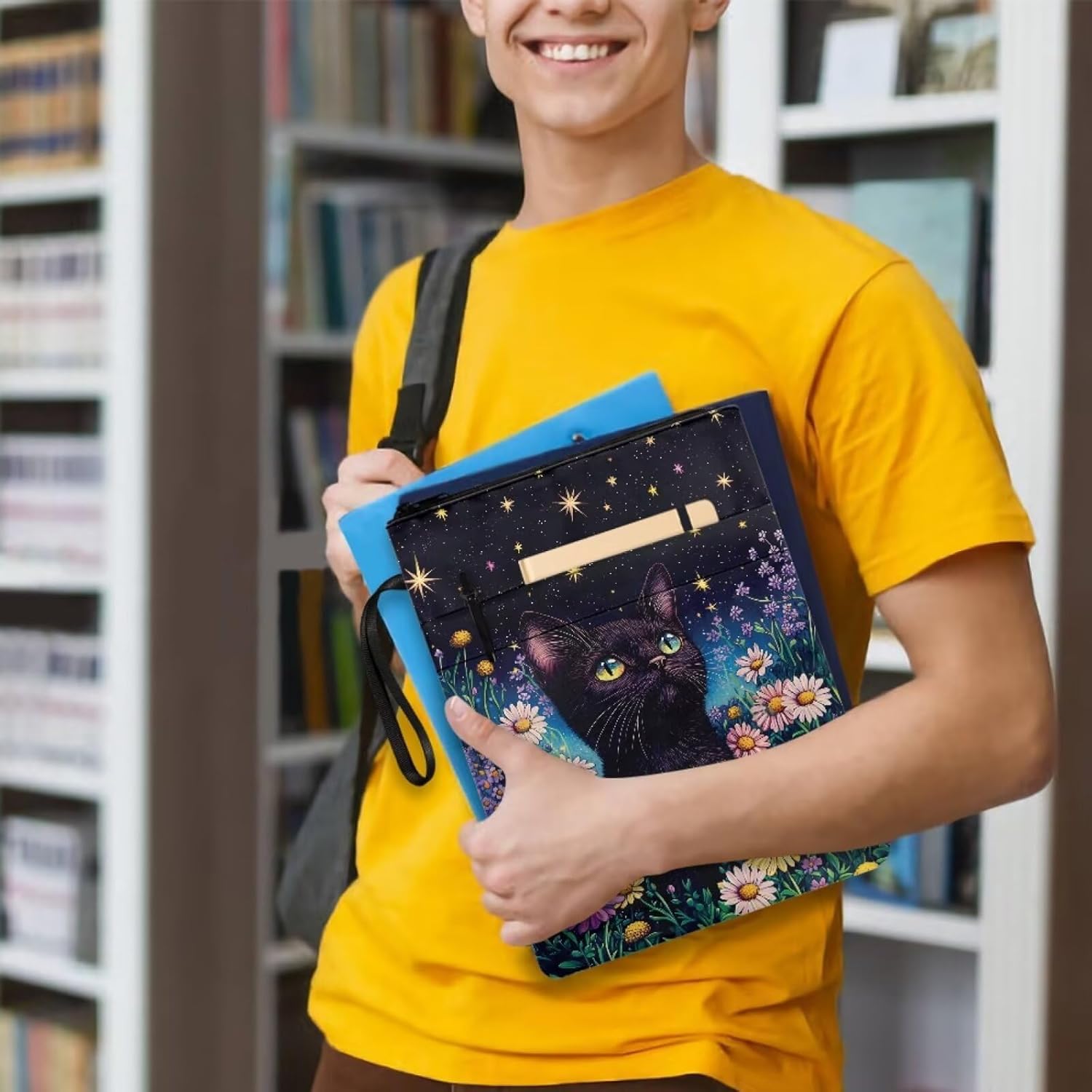 Leggero e perfettamente portatile (22 x 29 cm): progettato per un trasporto senza sforzo. Il suo profilo sottile e pieghevole scivola facilmente in zaini, borse, valigette o valigie. Porta i tuoi libri protetti ovunque senza aggiungere volume. Protezione garantita del libro: proteggi i tuoi amati libri, quaderni e libri di testo da sporco, graffi, rughe e usura quotidiana. Falli sembrare nuovi, sia in viaggio, in viaggio o in borsa. Materiale: questa borsa per libri con cerniera per gli amanti dei libri è realizzata in poliestere e cerniera liscia di alta qualità, non cadrà, non si deformerà o si restringerà facilmente, leggera, durevole, resistente all'usura e può fornirti un servizio a lungo termine. Comoda tasca frontale: rimani organizzato con la comoda tasca frontale. Dimensioni perfette per penne, matite, segnalibri, foglietti adesivi, piccoli diari, occhiali o anche auricolari. Tutto ciò di cui hai bisogno per leggere o studiare, a portata di mano Design eleganti e regalo ideale: esprimi te stesso con motivi vivaci come stampa di mucca, girasole, farfalla, palla, bandiera americana, galassia e animali. Un regalo pratico e premuroso per studenti, viaggiatori, amanti dei libri e professionisti