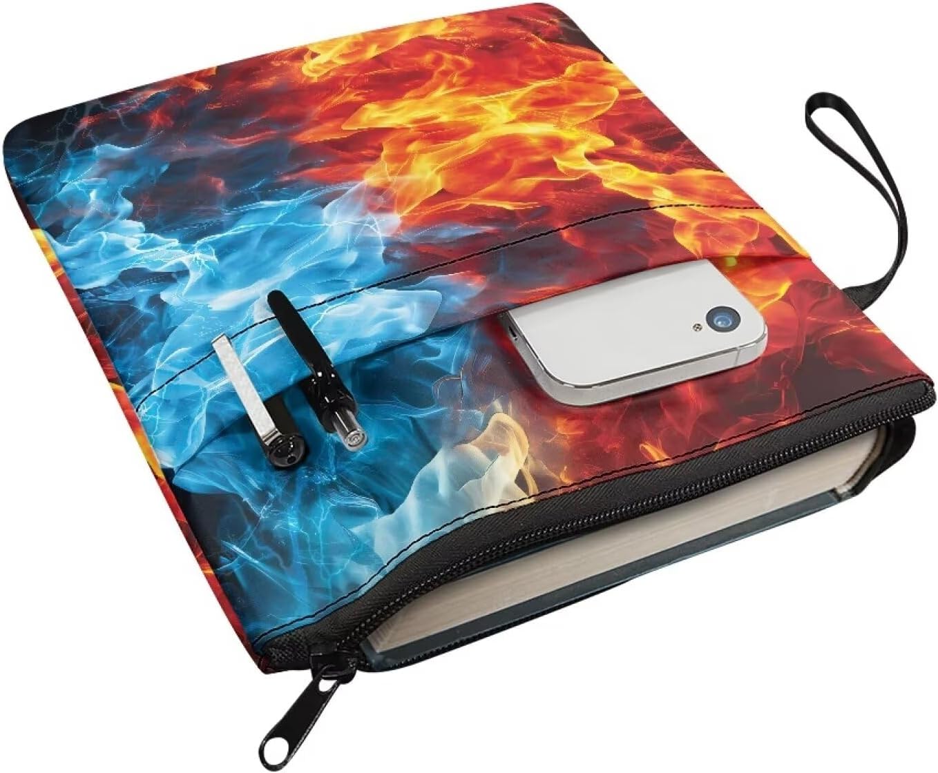 Copertina del libro Copertina rigida con cerniera con tasca lavabile Regalo per amanti di adolescenti e adulti Custodia protettiva per libri Blu Rosso Fuoco con cerniera