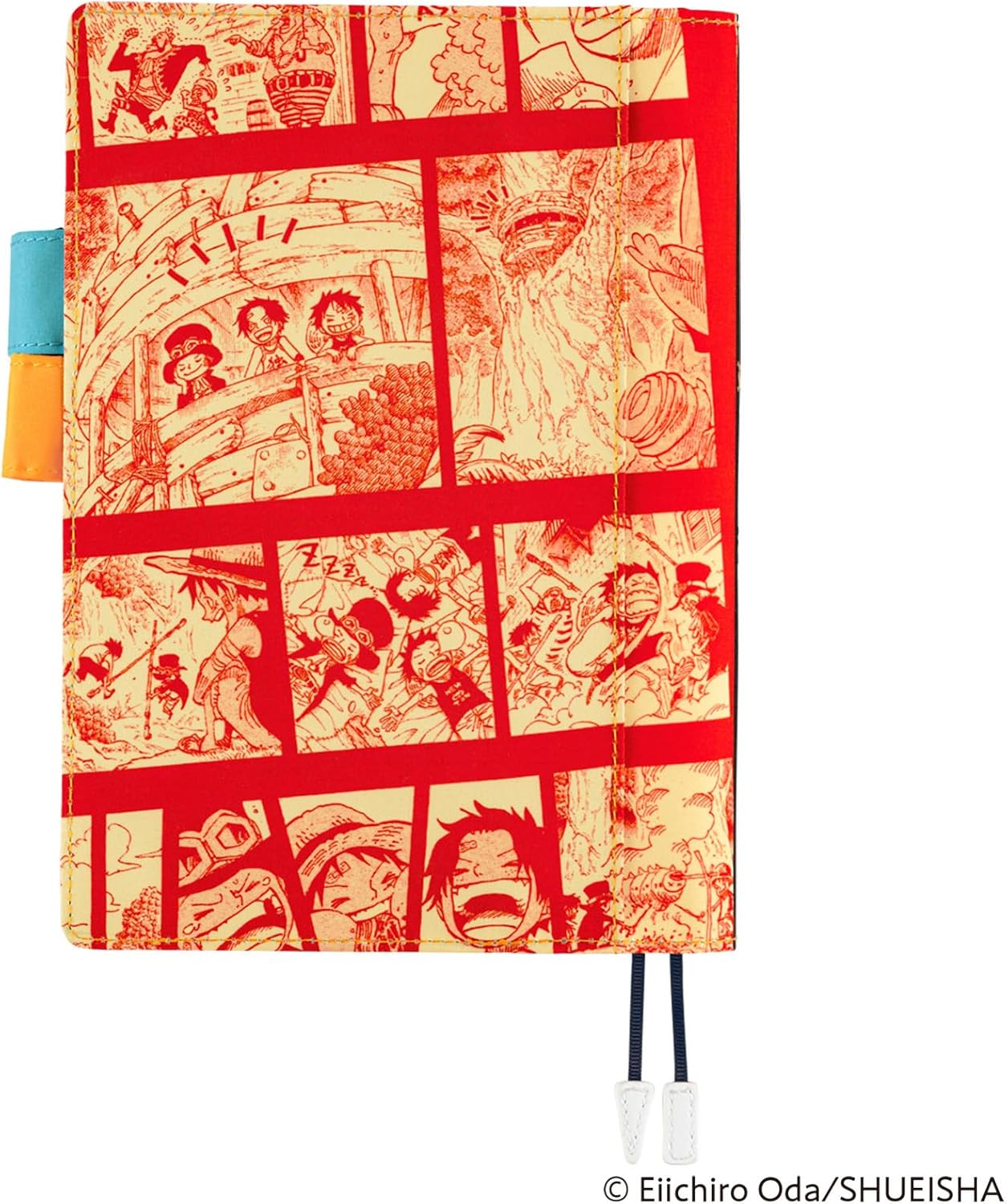 Copertina per agenda per Hobonichi Techo Cousin (formato A5) – Dopo aver acquistato un libro per pianificazione Hobonichi Techo Cousin, è il momento di abbinarlo a una copertina a tua scelta. Il modo base per utilizzare Hobonichi Techo è combinare l'agenda con copertine di diversi design, funzioni e dimensioni. Scegli una copertina che meglio si adatta al tuo stile di vita e alle tue preferenze. (L'agenda Hobonichi Techo Cousin stessa è venduta separatamente.) Passanti portapenne "Butterfly Stop": i passanti portapenne "farfalla" fungono da cerniera, mantenendo il coperchio saldamente chiuso mentre si ripone una penna all'interno. Tre segnalibri: la copertina contiene tre segnalibri di colore arancione, blu e rosso, che rappresentano i tre personaggi di One Piece, Ace, Sabo e Rufy. Puoi mantenere il tuo posto in tre parti del planner. Collaborato con One Piece Magazine: questa copertina collabora con One Piece Magazine, una rivista che approfondisce il mondo dei manga di One Piece. Con una scena tratta dal volume 60 della serie manga, Ace, Sabo e Rufy si scambiano tazze di sakè "Brothers" e formano un legame. Il design incorpora i rispettivi colori dell'immagine: arancione (Ace), blu (Sabo) e rosso (Rufy). Dimensioni (A x L x P): 228 x 337 x 3 mm. Dimensioni: 22,9 x 33,8 x 0,3 cm. Le specifiche possono variare leggermente. Peso approssimativo: 170 g - Esterno: poliestere - Interno: poliestere Eiichiro Oda/SHUEISHA