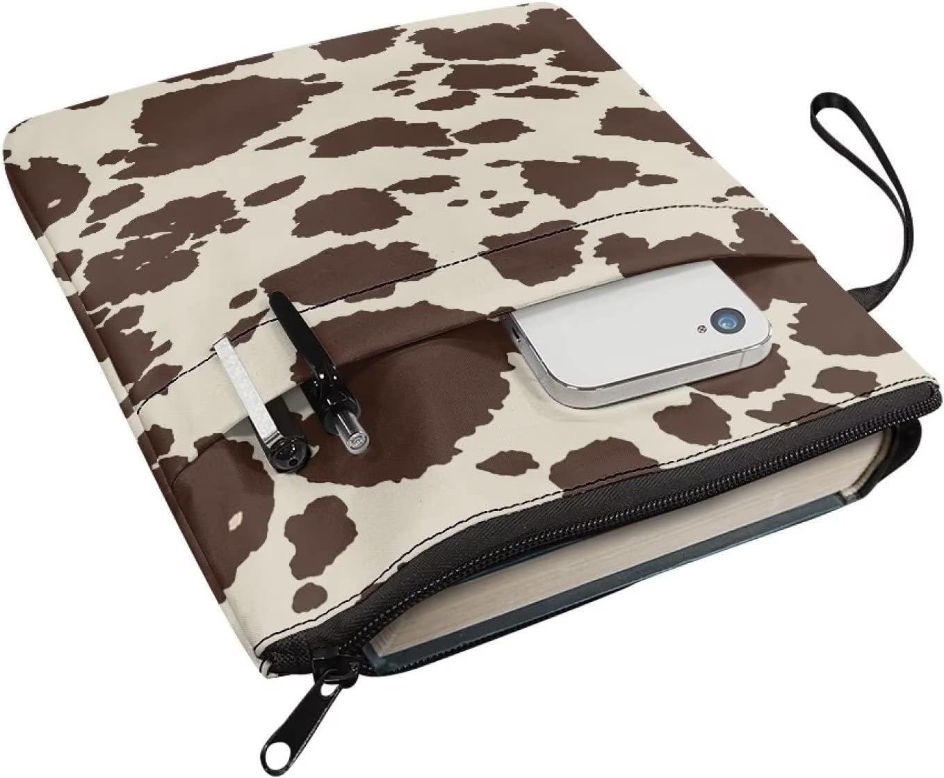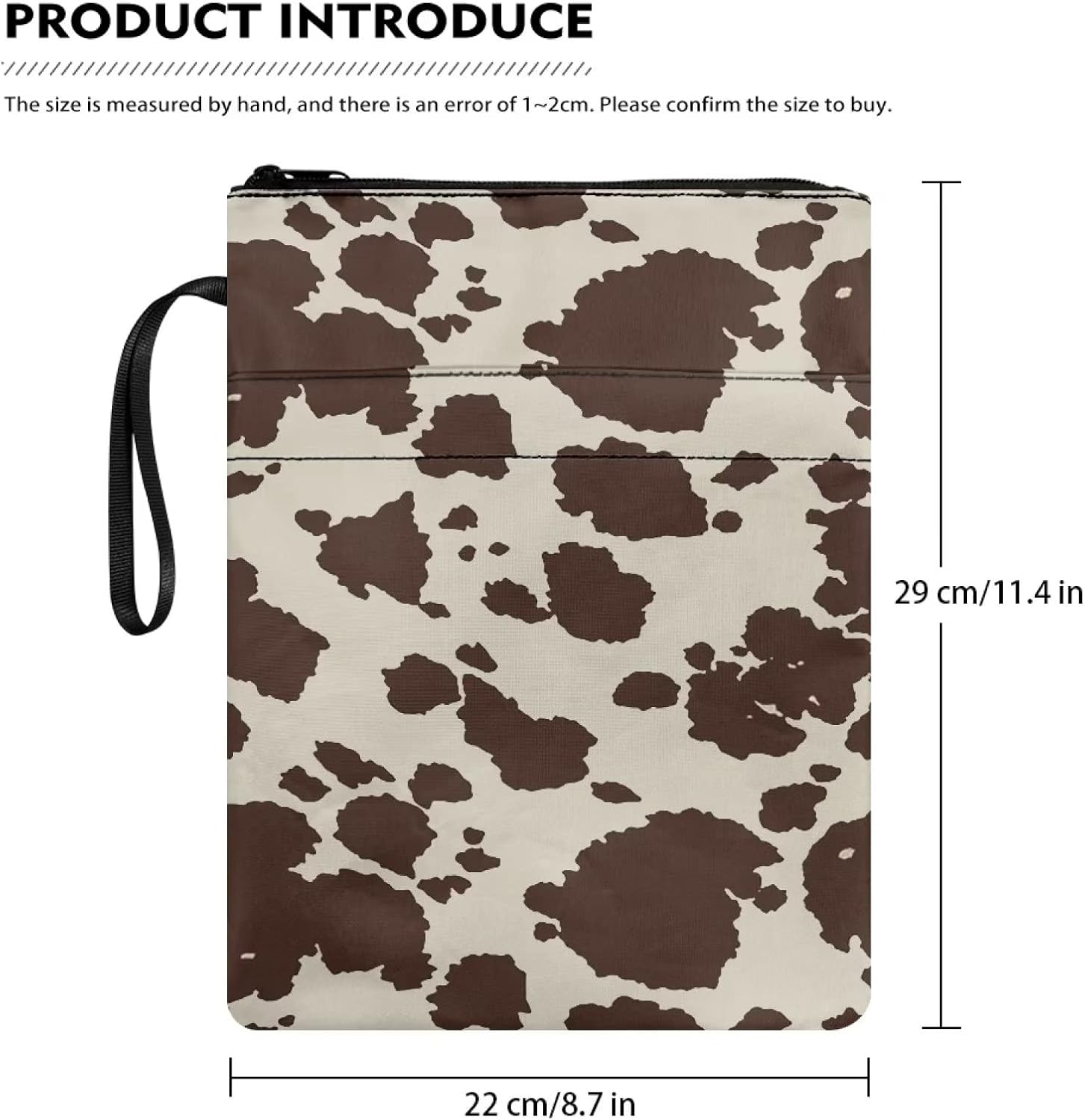 Copertina per libri con cerniera e tasca con stampa di gallo, borsa da donna lavabile in brossura con copertina rigida protettiva, Mucca marrone., Taglia unica, Bohemian