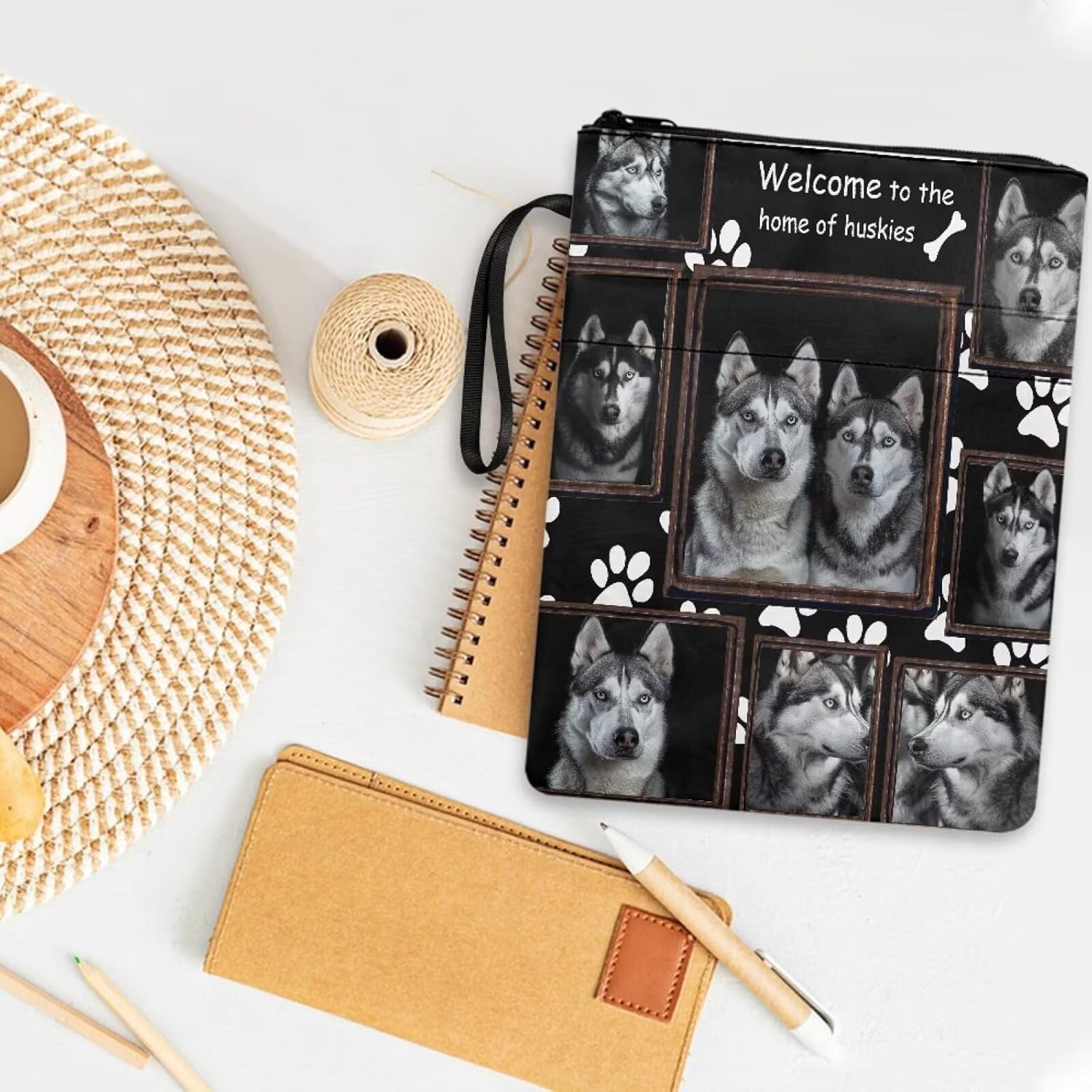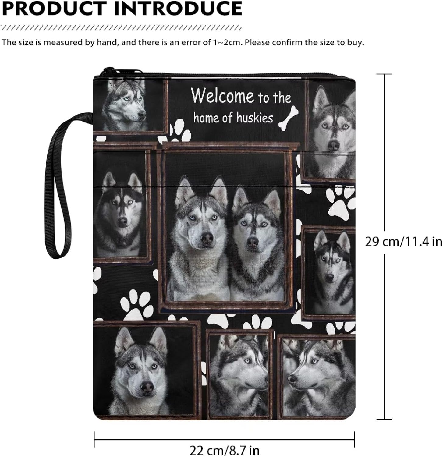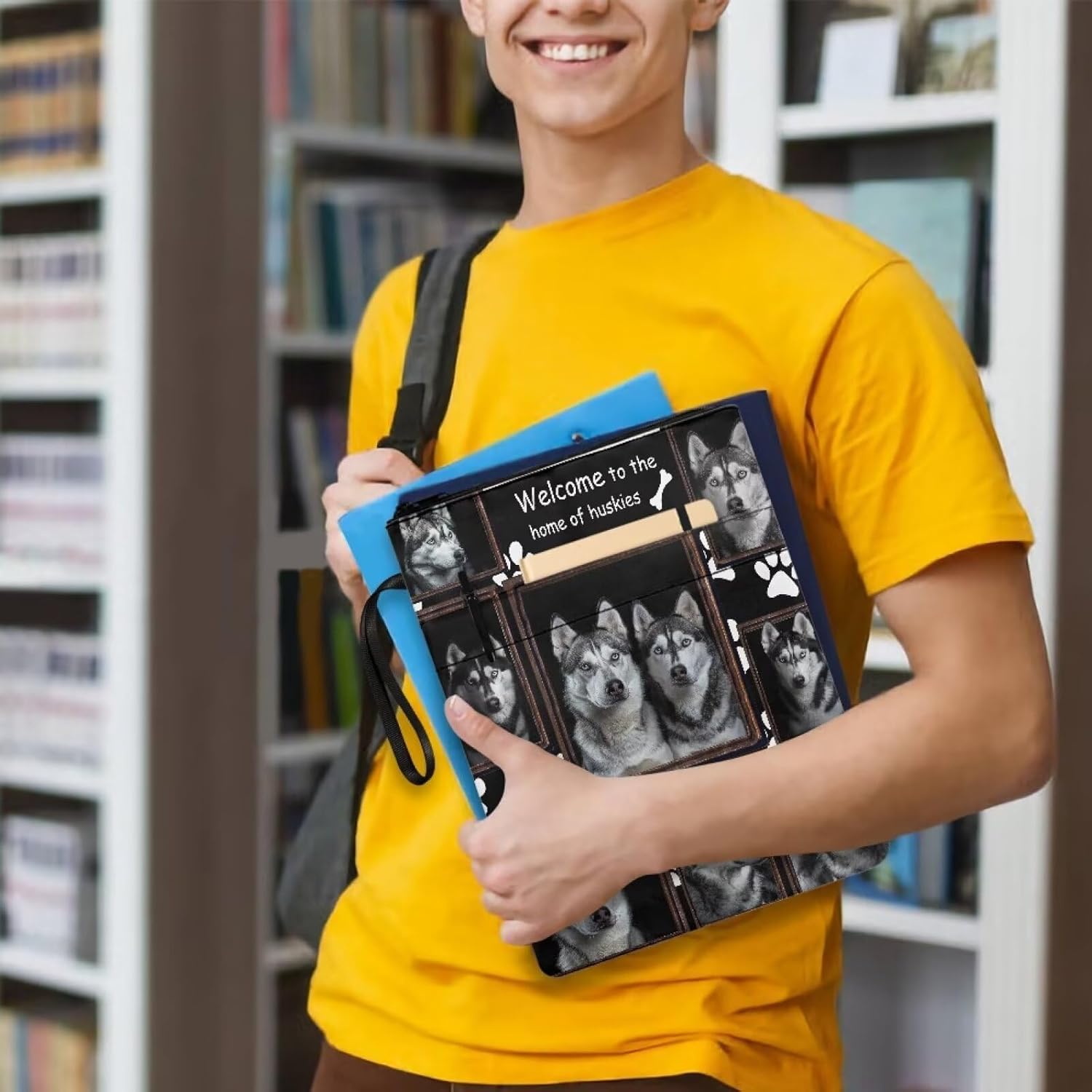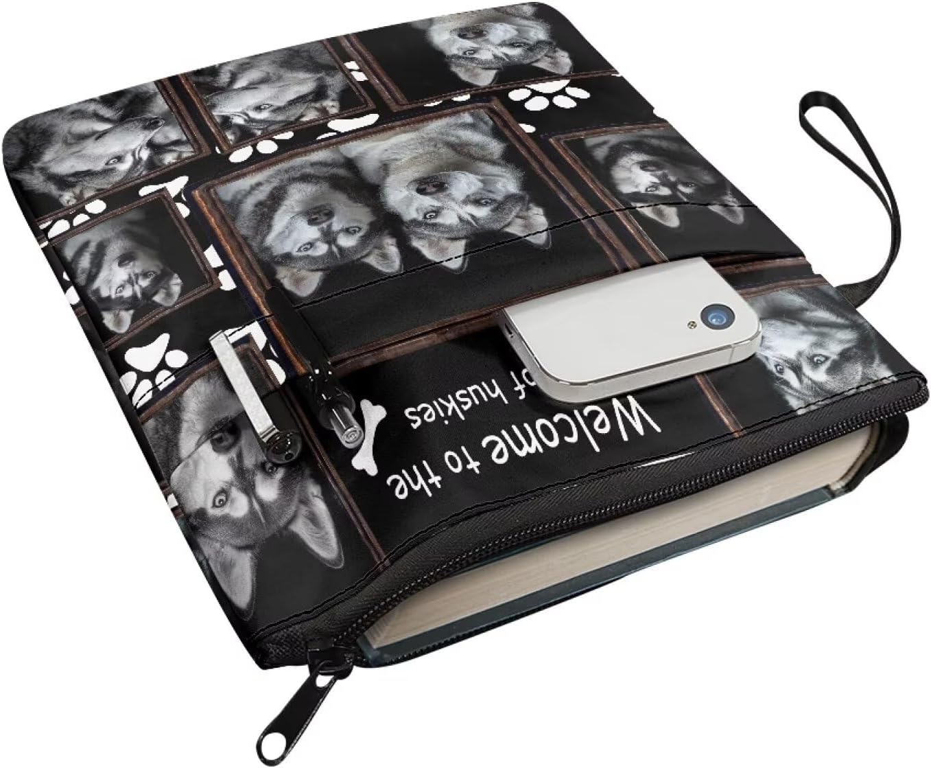 Copertina per libri con stampa di cane husky per studenti e insegnanti con cerniera