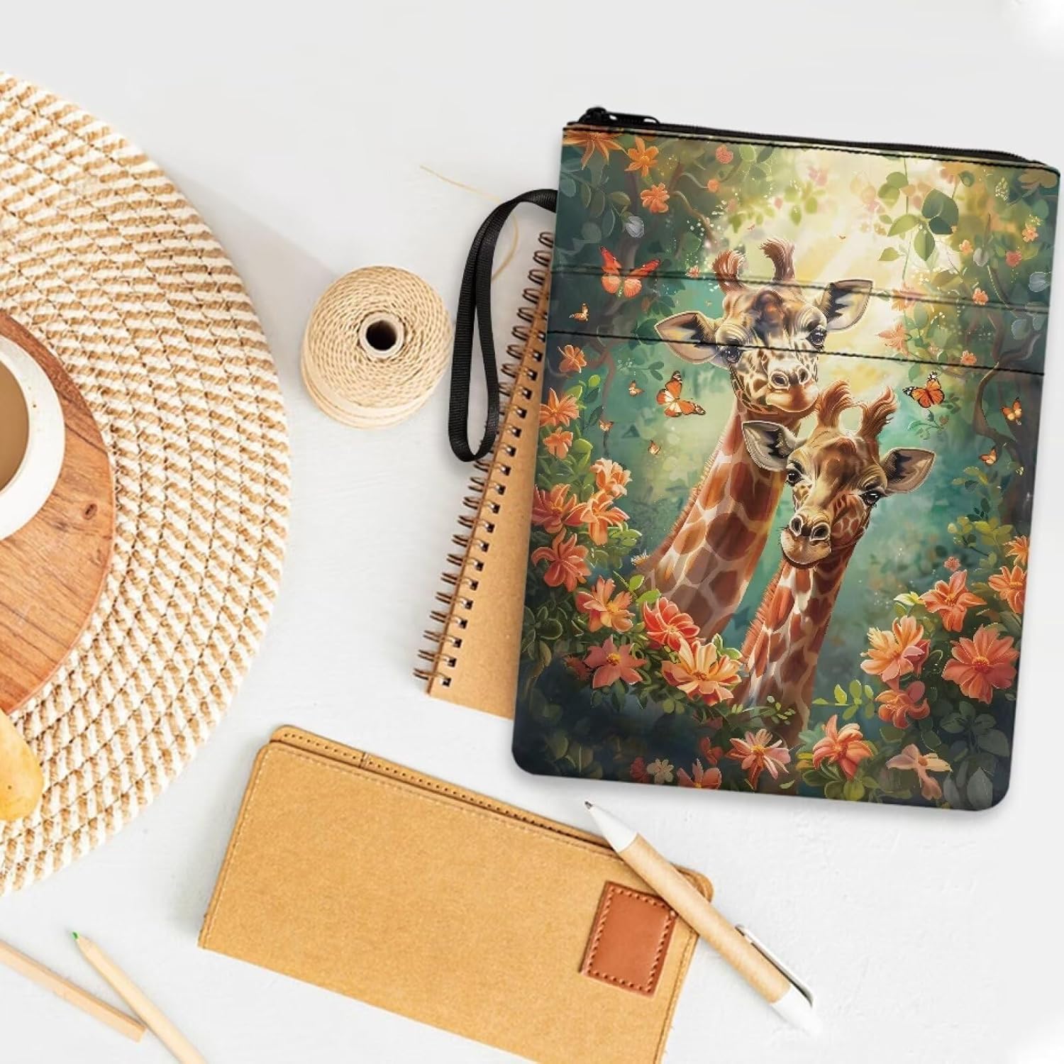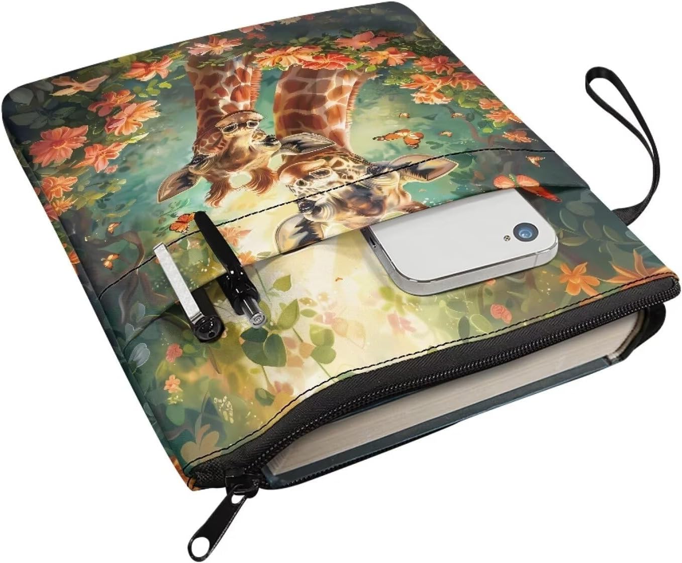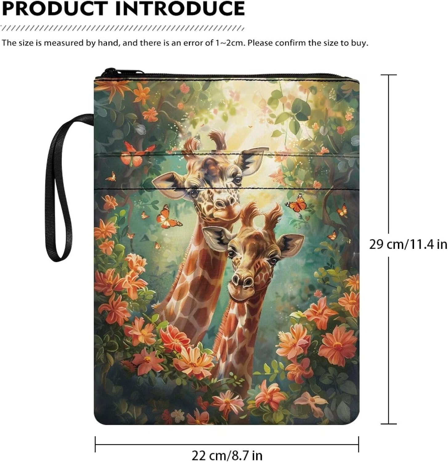 Copertina per libri con stampa di farfalle, giraffe e fiori, 29 x 22,1 cm, tasca frontale e corda portatile, protezione per libri, con cerniera