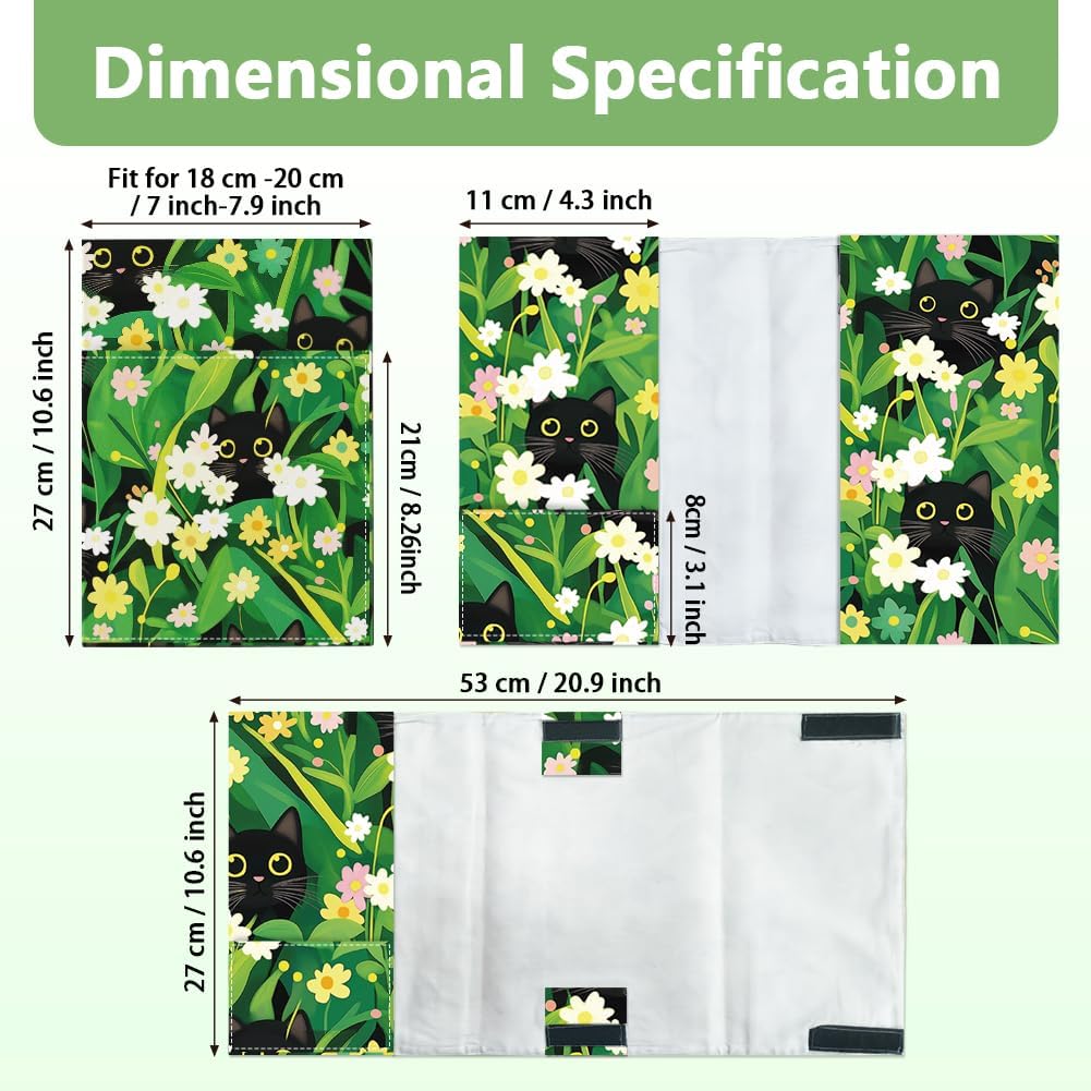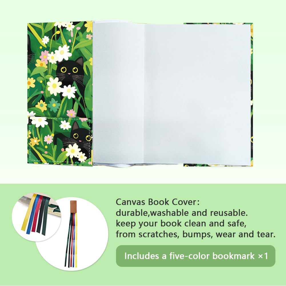 Simpatico design a forma di gatto: la copertina del libro è progettata come un motivo a gatto ed erba, un gatto nero si nasconde nell'erba verde accanto ai fiori, colori freschi e motivi carini rendono i tuoi libri alla moda, accattivanti e riconoscibili. Misura regolabile: la protezione della copertina del libro con chiusura in velcro, la larghezza della copertina del libro è fissa a sinistra e regolabile a destra. La dimensione aperta è lunga 68 cm e larga 29,5 cm. La copertina del libro finito è di ca. 27 cm di larghezza e 53 cm di lunghezza. Copertine di libri adatte per tascabili di grandi dimensioni, Bibbia, copertina rigida, romanzi, quaderni, ecc. Materiale in poliestere riutilizzabile: la copertina del libro è realizzata in materiale poliestere, lavabile e riutilizzabile. Può proteggere efficacemente il tuo libro da graffi, ammaccature, usura. Mantieni il tuo libro pulito e protetto. Con tasche multiple e segnalibri: la copertina del libro contiene 1 grande tasca frontale e 1 piccola tasca interna, puoi inserire penne, carte, quaderni e altri oggetti. Ogni copertina del libro ha anche un segnalibro a nastro per trovare facilmente una pagina specifica, molto facile da usare. Regalo ideale: i modelli innovativi eleganti, carini e alla moda realizzati in materiale poliestere riutilizzabile sono un regalo perfetto per compleanni e festival per i tuoi amanti dei libri, adolescenti e adulti. Senza timore di angoli danneggiati o coperture graffiate. Ti divertirai di più tenendo un libro in mano.