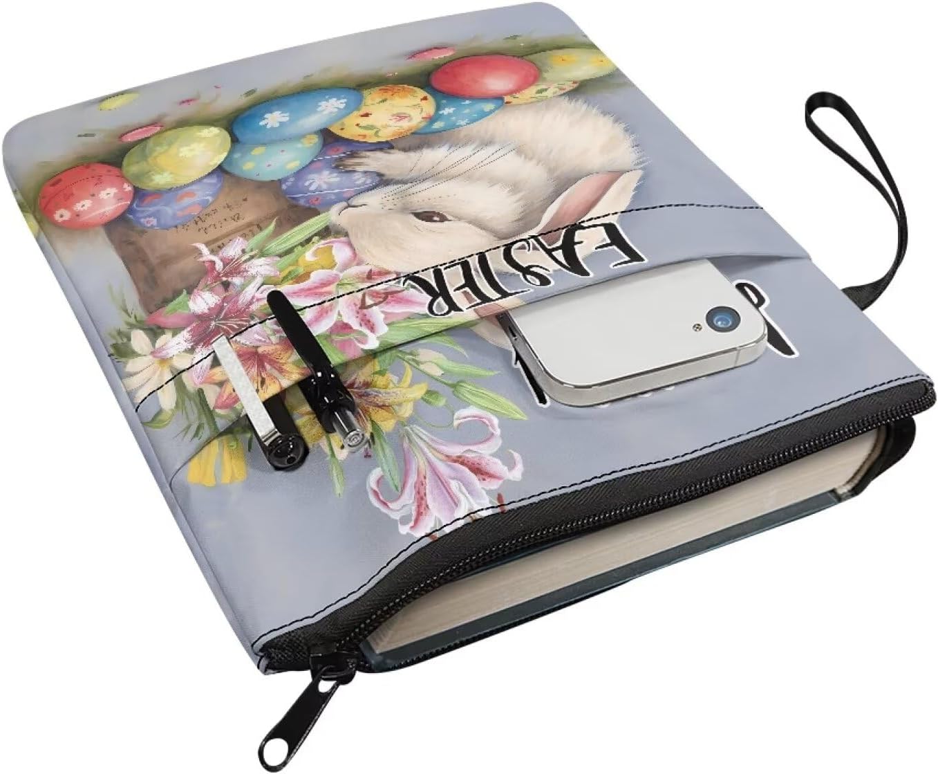 Copertina per libro con coniglio, motivo floreale con uova di Pasqua, per amanti degli adolescenti, adulti, custodia protettiva per libri, con cerniera