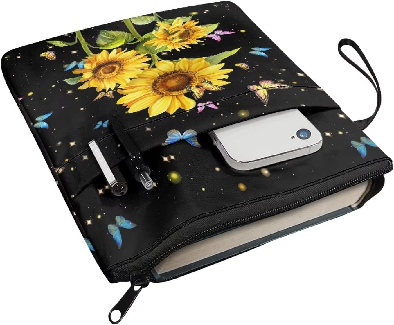 Materiale di alta qualità: realizzata in poliestere di alta qualità, la nostra custodia per libri è morbida, confortevole e resistente all'usura. È progettato per durare, garantendo una protezione duratura per i tuoi amati libri. Perfetto per lettori di tutte le età, dai bambini agli adulti. Dimensioni: queste copertine per libri di testo sono elastiche per i tuoi libri fino a 29 x 22,1 cm e si adattano alla maggior parte dei libri autopubblicati, libri tascabili standard, libri tascabili di massa e copertine rigide normali. Assicurati di misurare il tuo articolo prima dell'acquisto per assicurarti che funzioni per te. Facilmente applicabile e riutilizzabile: il nostro calzino per libri è super facile da usare e facilmente rimovibile. Non richiede nastro adesivo o taglio. Quindi puoi usarlo ancora e ancora. Le tecniche di cucitura professionali e le cinghie lisce con cerniera rendono la custodia con cerniera più delicata e resistente. Organizer multiuso: può essere utilizzato come copertina per libri, porta bibbia, giornale, copertina per libri in brossura, borsa per documenti, valigetta, borsa per cosmetici, piccola custodia da viaggio, mini custodia per tablet, borsa per libri di studio biblico, ecc. Regalo perfetto per il ritorno a scuola: le copertine dei libri hanno una varietà di motivi tra cui scegliere, simpatico animale, panda, cavallo, farfalla, floreale hippie, girasole, galassia, marmo, stampa leopardata, stampa mucca, fungo, ecc. È un'ottima scelta per bambini, studenti e amanti dei libri. Adatto per uffici, scrivanie e scuole.
