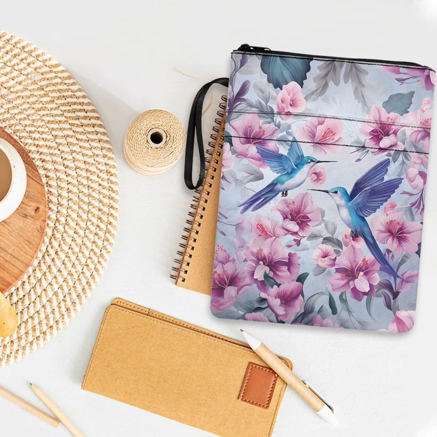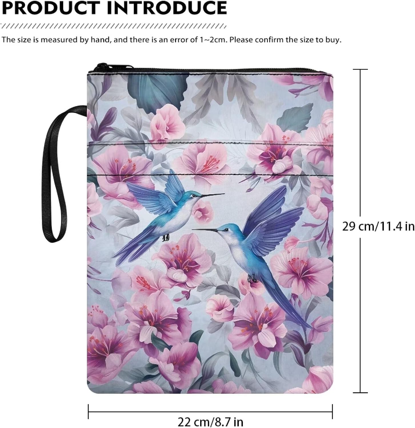 Copertina per libro Gruge Maple Leaf Elk Print Hardcover ABag ed Pocket Donne Uomini Storage Puse Outdoor Studio Libri Protector Pounch con Cerniera, Hibiscus1596 colibrì, 3 pezzi, Classico