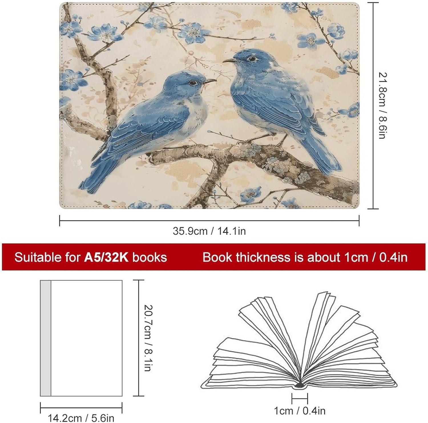 Design: copertine per quaderni da viaggio, il design robusto offre un'eccellente protezione per il tuo diario. Copertine per libri elastiche stampate Bluebird on the branch, il materiale di rivestimento morbido può evitare l'attrito sui libri. Materiale: copertina per libri resistente realizzata in morbida ecopelle di alta qualità, impermeabile. La classica copertina per notebook è realizzata con tecnologia di stampa UV e ha un aspetto raffinato. Applicazione: le copertine in pelle per diari sono dotate di design interessanti, adatte agli studenti per imparare e utilizzare, le copertine per notebook da donna sono adatte anche per l'uso in uffici, scuole o altrove REGALI - Le copertine impermeabili per notebook sono oggetti di uso quotidiano. La copertina dell'agenda è adatta come regalo per amici, colleghi o bambini. Uso e pulizia: la copertina del libro può essere utilizzata ripetutamente. Si consiglia di pulire e pulire regolarmente la copertina in pelle del notebook
