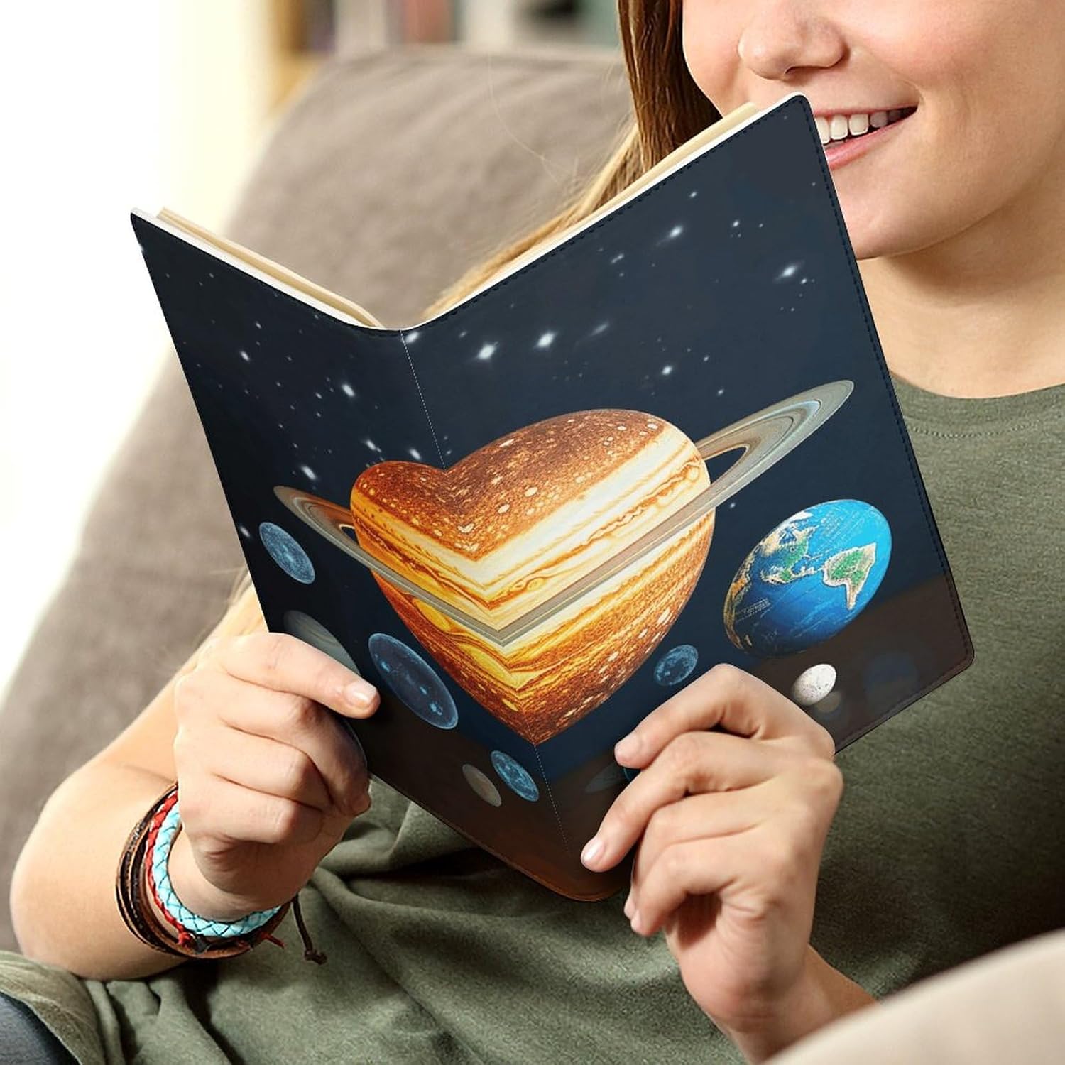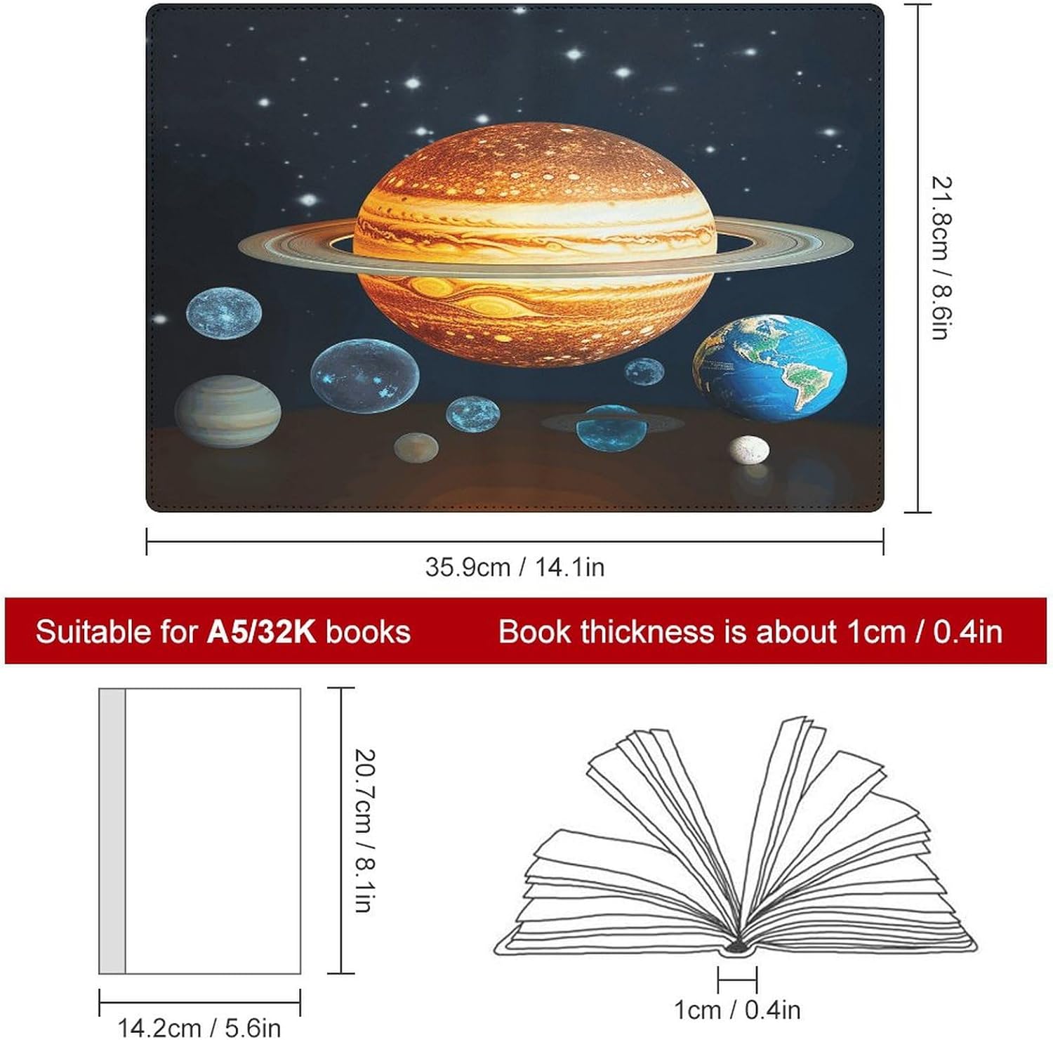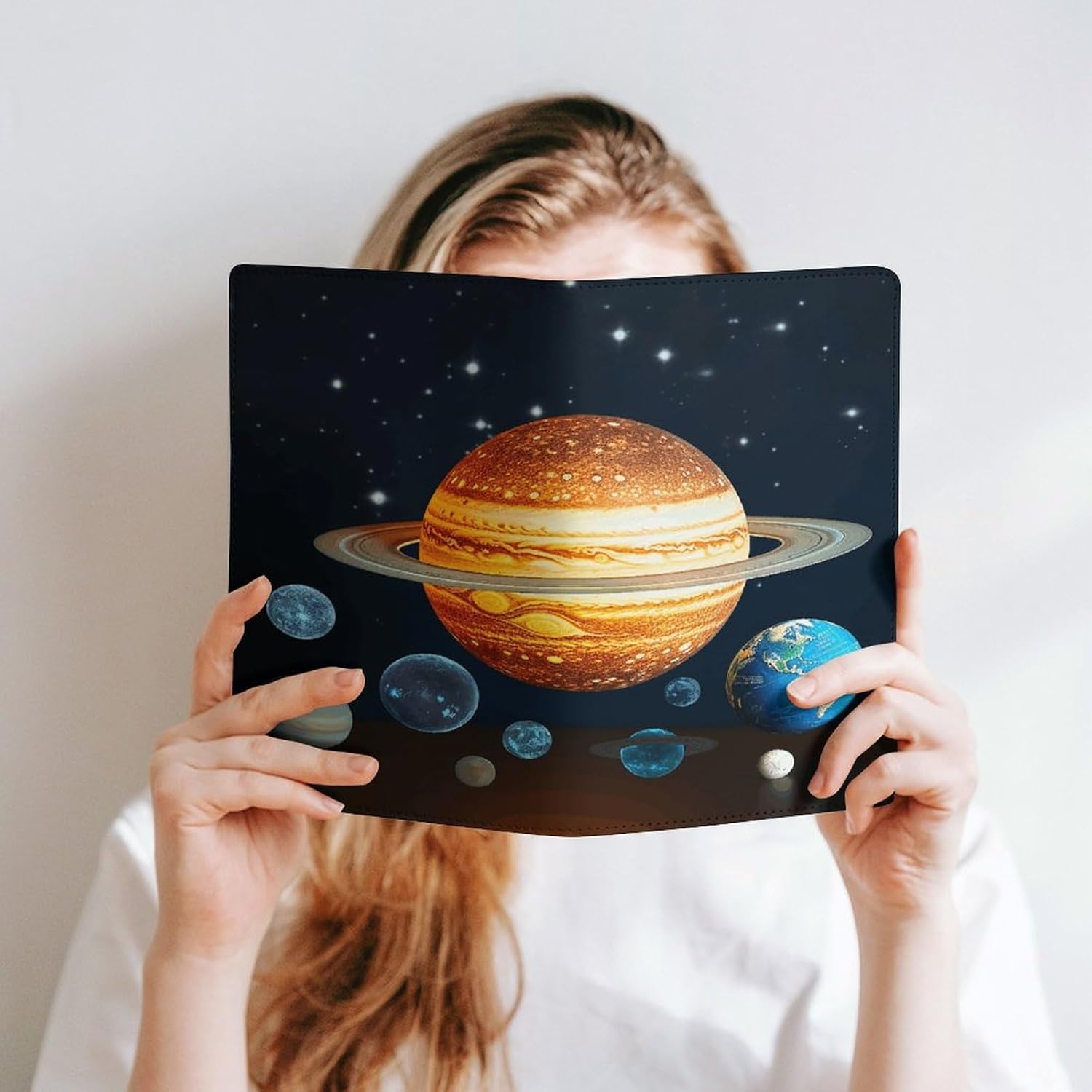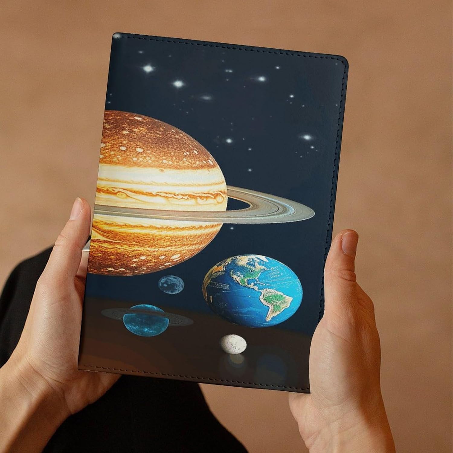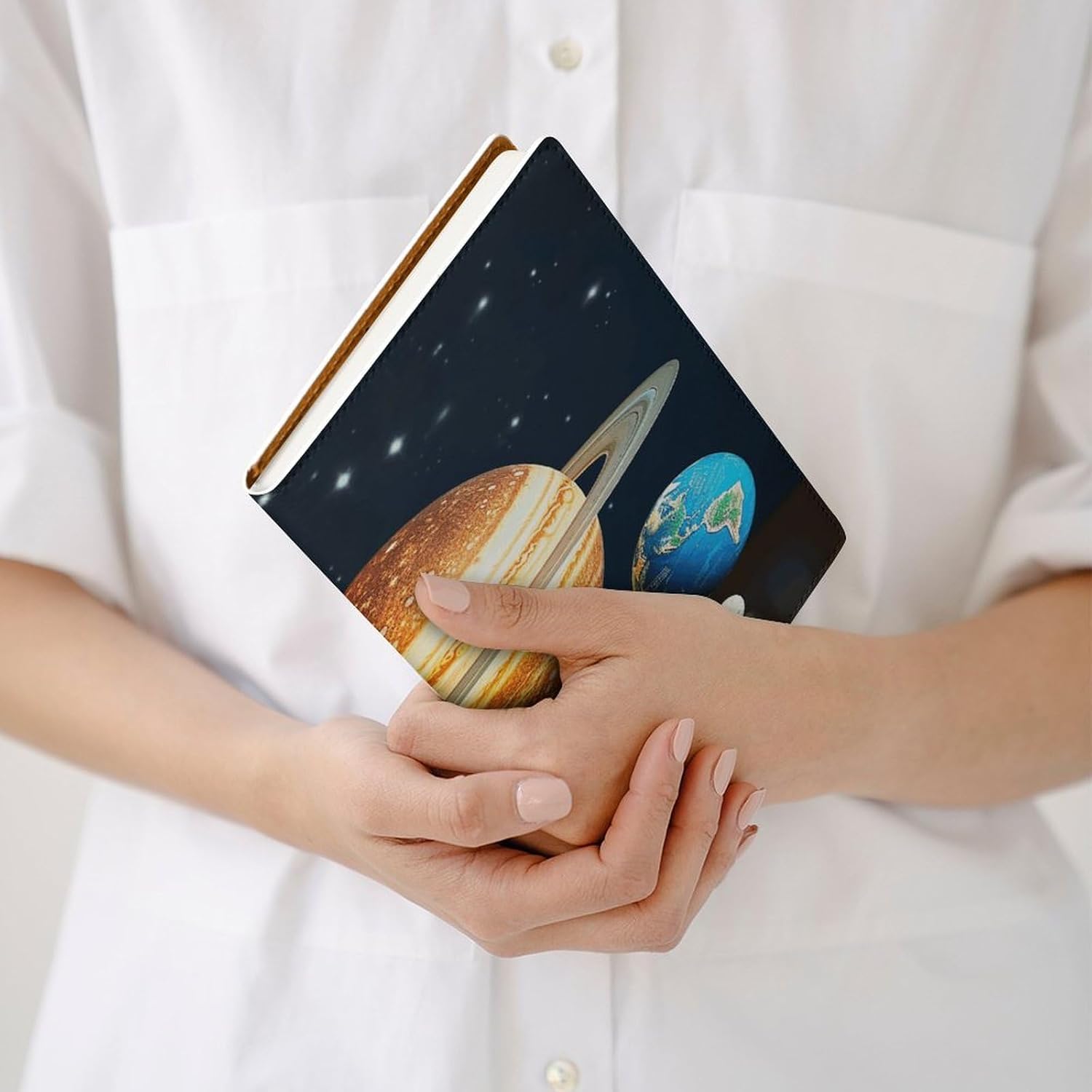 Design: copertine per quaderni da viaggio, il design robusto offre un'eccellente protezione per il tuo diario. Copertina del libro elastica stampata che si illumina al buio del sistema solare Il materiale di rivestimento morbido può evitare l'attrito sui libri Materiale: copertina del libro resistente realizzata in morbida ecopelle di alta qualità, impermeabile. La classica copertina per notebook è realizzata con tecnologia di stampa UV e ha un aspetto raffinato. Applicazione: le copertine in pelle per diari sono dotate di design interessanti, adatte agli studenti per imparare e utilizzare, le copertine per notebook da donna sono adatte anche per l'uso in uffici, scuole o altrove REGALI - Le copertine impermeabili per notebook sono oggetti di uso quotidiano. La copertina dell'agenda è adatta come regalo per amici, colleghi o bambini. Uso e pulizia: la copertina del libro può essere utilizzata ripetutamente. Si consiglia di pulire e pulire regolarmente la copertina in pelle del notebook