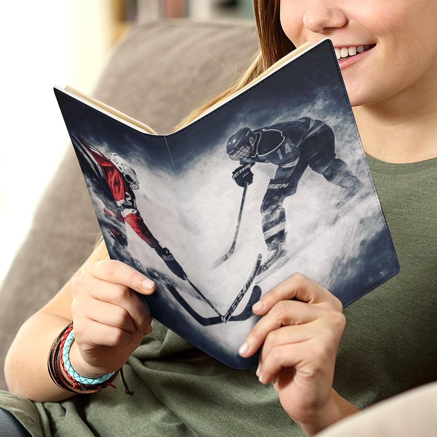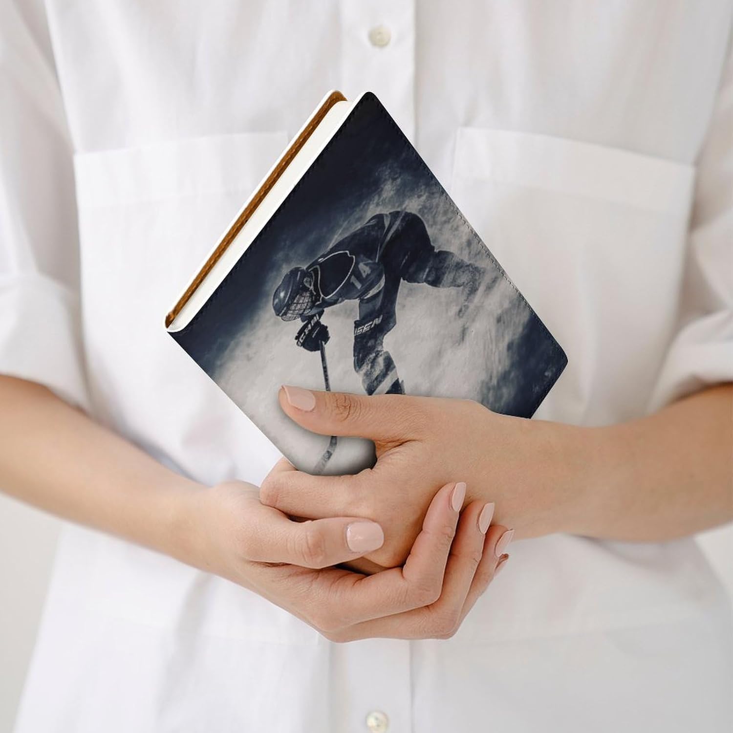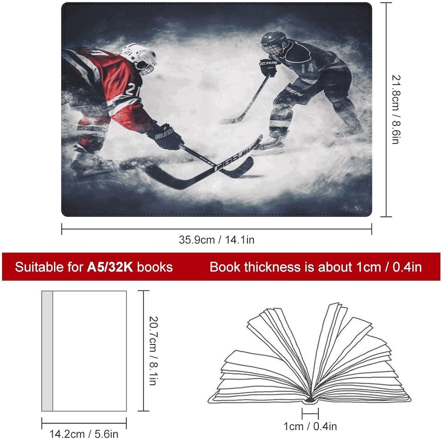Design: copertine per quaderni da viaggio, il design robusto offre un'eccellente protezione per il tuo diario. Stampa artistica di hockey su ghiaccio, copertina del libro elastica, materiale di rivestimento morbido, può evitare l'attrito sui libri. Materiale: copertina del libro resistente realizzata in morbida ecopelle di alta qualità, impermeabile. La classica copertina per notebook è realizzata con tecnologia di stampa UV e ha un aspetto raffinato. Applicazione: le copertine in pelle per diari sono dotate di design interessanti, adatte agli studenti per imparare e utilizzare, le copertine per notebook da donna sono adatte anche per l'uso in uffici, scuole o altrove REGALI - Le copertine impermeabili per notebook sono oggetti di uso quotidiano. La copertina dell'agenda è adatta come regalo per amici, colleghi o bambini. Uso e pulizia: la copertina del libro può essere utilizzata ripetutamente. Si consiglia di pulire e pulire regolarmente la copertina in pelle del notebook