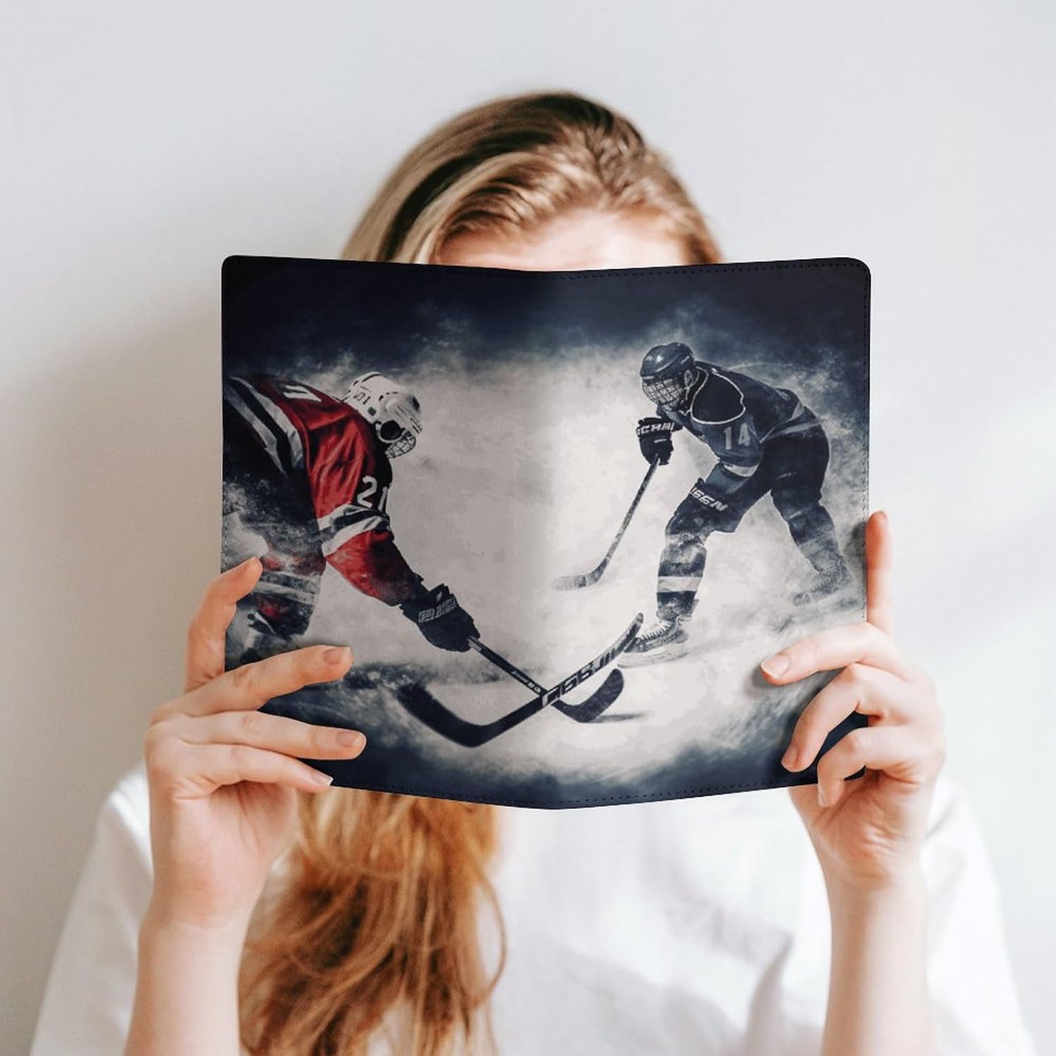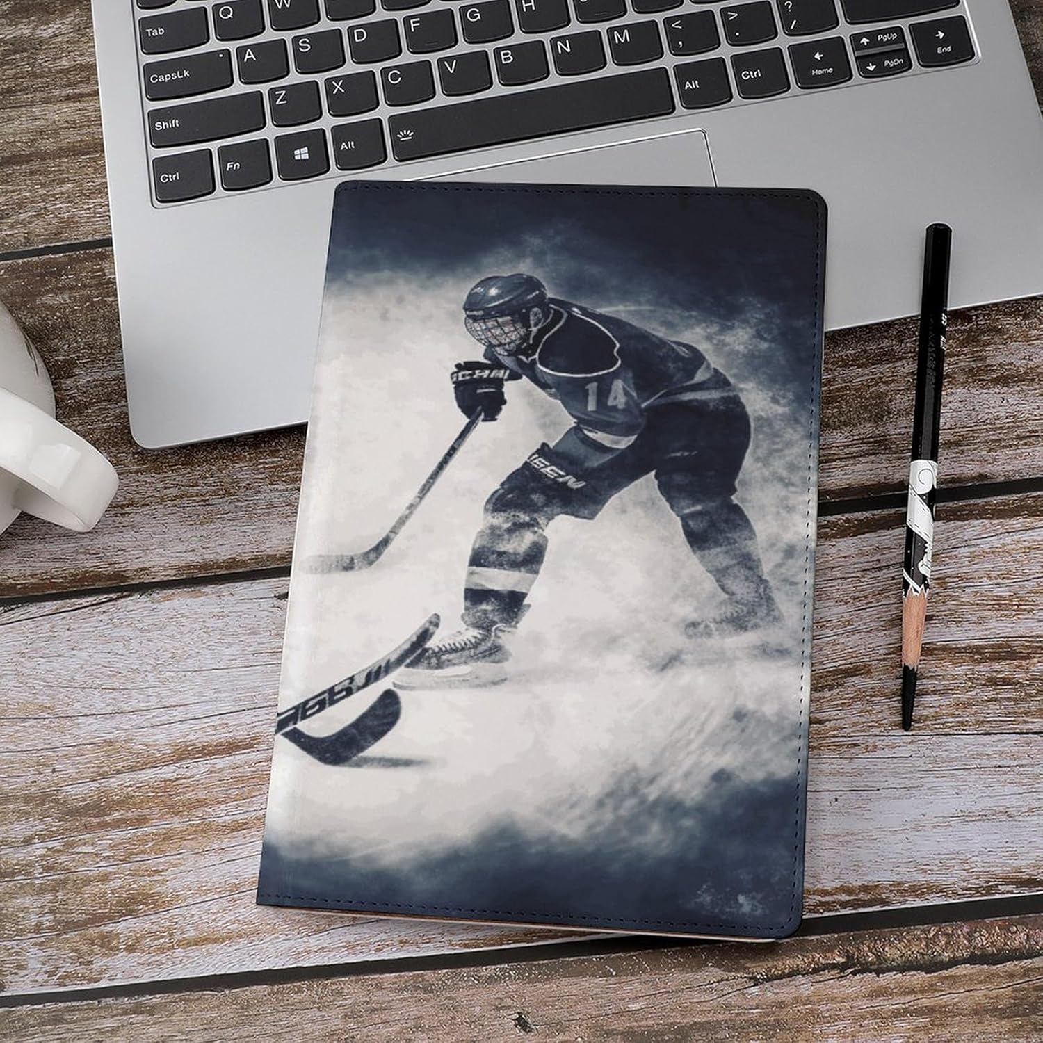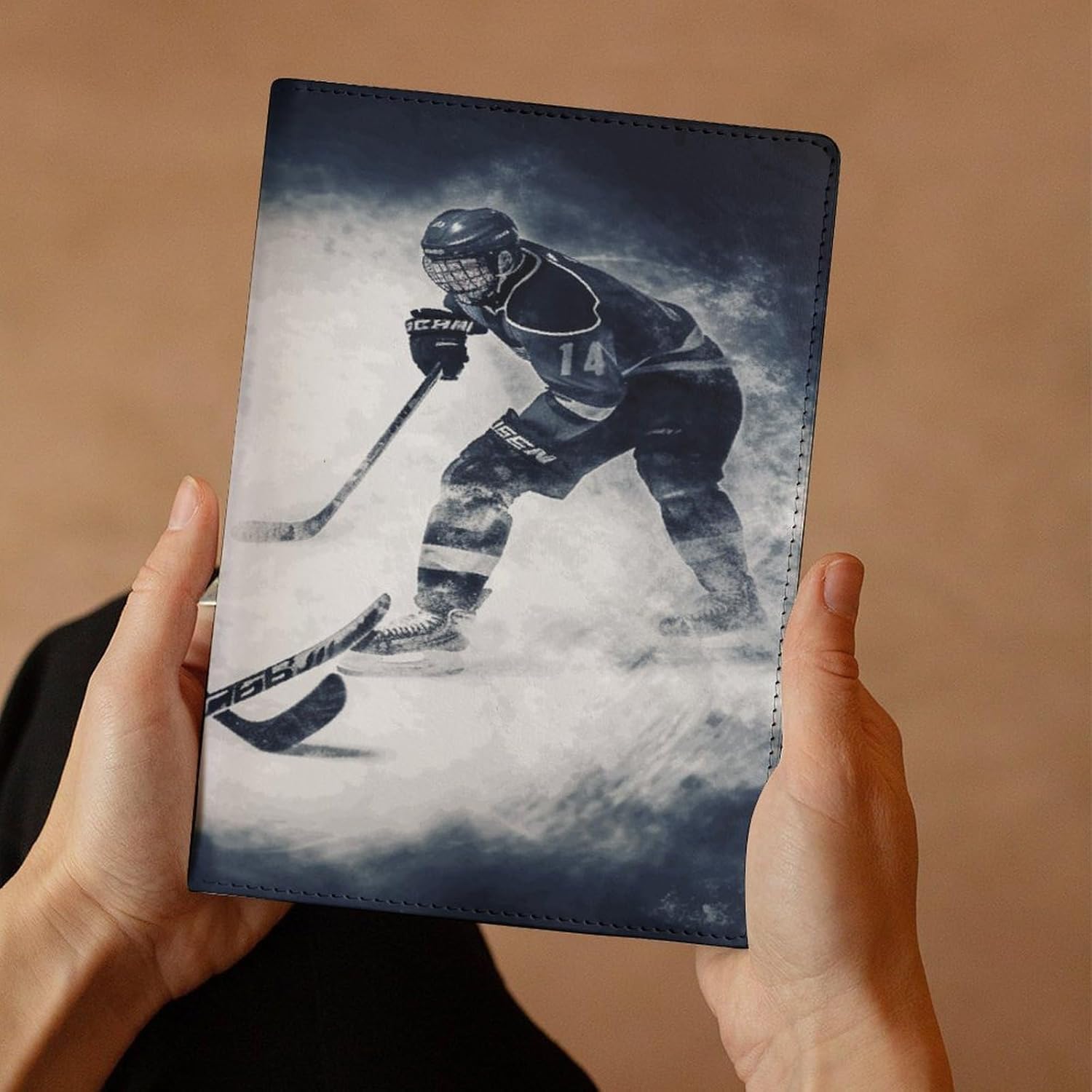 Design: copertine per quaderni da viaggio, il design robusto offre un'eccellente protezione per il tuo diario. Stampa artistica di hockey su ghiaccio, copertina del libro elastica, materiale di rivestimento morbido, può evitare l'attrito sui libri. Materiale: copertina del libro resistente realizzata in morbida ecopelle di alta qualità, impermeabile. La classica copertina per notebook è realizzata con tecnologia di stampa UV e ha un aspetto raffinato. Applicazione: le copertine in pelle per diari sono dotate di design interessanti, adatte agli studenti per imparare e utilizzare, le copertine per notebook da donna sono adatte anche per l'uso in uffici, scuole o altrove REGALI - Le copertine impermeabili per notebook sono oggetti di uso quotidiano. La copertina dell'agenda è adatta come regalo per amici, colleghi o bambini. Uso e pulizia: la copertina del libro può essere utilizzata ripetutamente. Si consiglia di pulire e pulire regolarmente la copertina in pelle del notebook