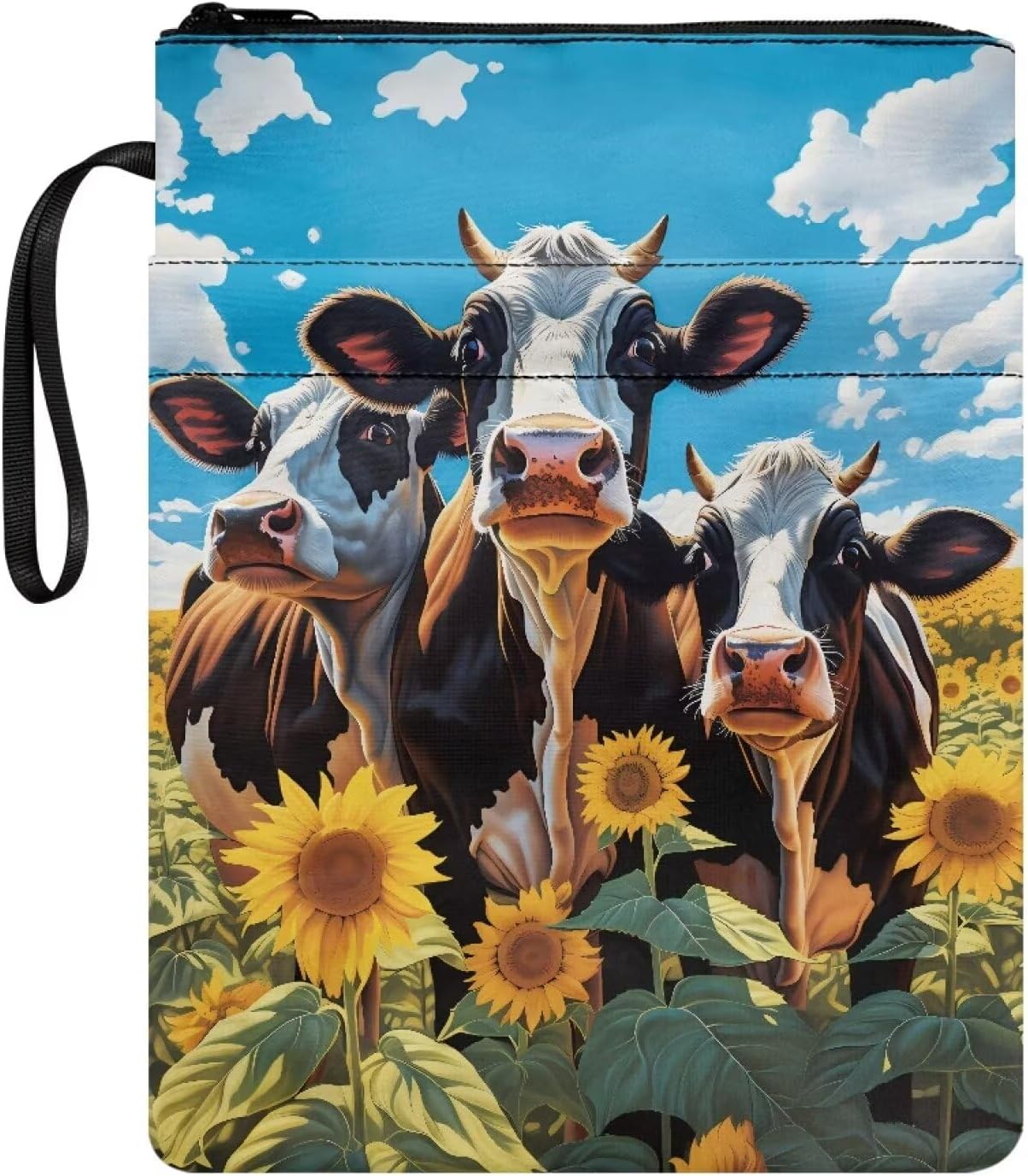 Leggero e perfettamente portatile (22 x 29 cm): progettato per un trasporto senza sforzo. Il suo profilo sottile e pieghevole scivola facilmente in zaini, borse, valigette o bagagli. Porta i tuoi libri protetti ovunque senza aggiungere ingombro Protezione garantita del libro: proteggi i tuoi amati libri, quaderni e libri di testo da sporco, graffi, pieghe e usura quotidiana. Per mantenerli incontaminati come nuovi, sia che si tratti di pendolarismo, viaggi o in borsa Materiale: questa custodia per libri con cerniera per gli amanti dei libri è realizzata in poliestere e cerniera liscia di alta qualità, non cadrà, non si deforma o si restringe facilmente, leggera, durevole, resistente all'usura e può fornire un servizio a lungo termine Comoda tasca frontale: rimani organizzato con la pratica tasca frontale! Dimensioni perfette per penne, matite, segnalibri, foglietti adesivi, piccoli diari, occhiali o persino auricolari, tutto ciò di cui hai bisogno per leggere o studiare a portata di mano Design elegante e regalo ideale: esprimiti con motivi vivaci come stampa mucca, girasole, farfalla, palla, bandiera americana, galassia e animali. Un regalo pratico e premuroso per studenti, viaggiatori, amanti dei libri e professionisti