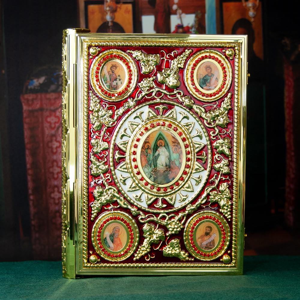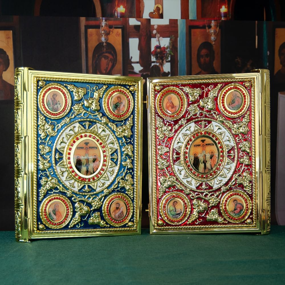 Materiale: questa custodia per libri della Bibbia ortodossa è realizzata in un robusto materiale in lega di zinco, che assicura che non si consuma a lungo termine, pur mantenendo un aspetto elegante. Design: il design della custodia a libro incorpora elementi tradizionali ortodossi, adatti per cerimonie religiose, uso quotidiano o come preziosa collezione, mostrando la bellezza della fede e dell'arte. Dimensioni: la dimensione della custodia è di 36,1 x 27,4 x 5,1 cm, adatta per grandi libri biblici o liturgici, e il peso è di 1,21 kg, che è sia protettivo che pesante. Uso: la robusta custodia per libri offre una protezione completa contro pieghe e danni, mentre si apre e si chiude senza problemi per la lettura quotidiana e l'uso rituale. REGALO: questa copertina per libro biblico non è solo la scelta ideale per i credenti devoti, ma anche il regalo perfetto per occasioni speciali come feste, battesimi, matrimoni, ecc., per trasmettere fede e benedizioni.