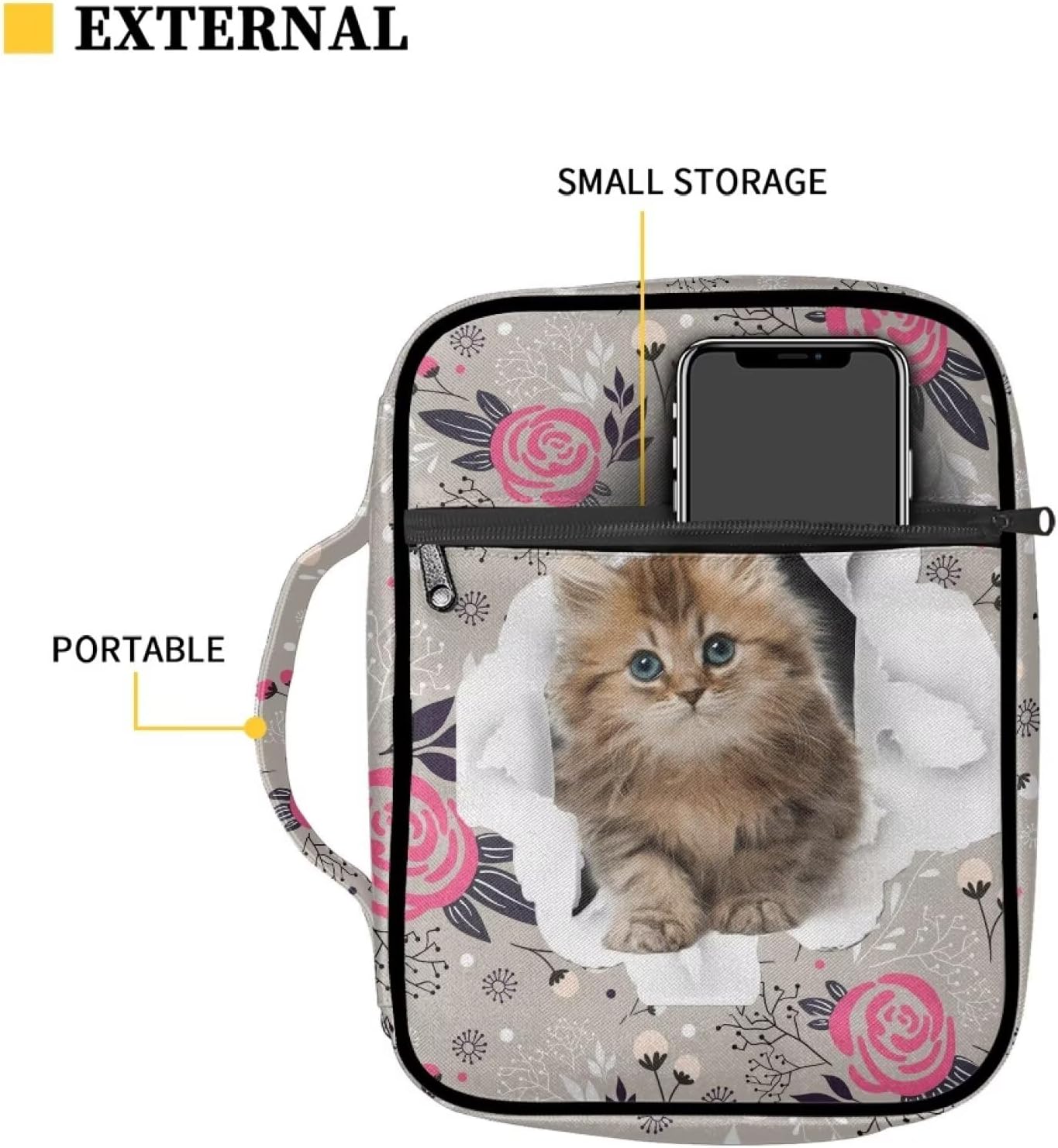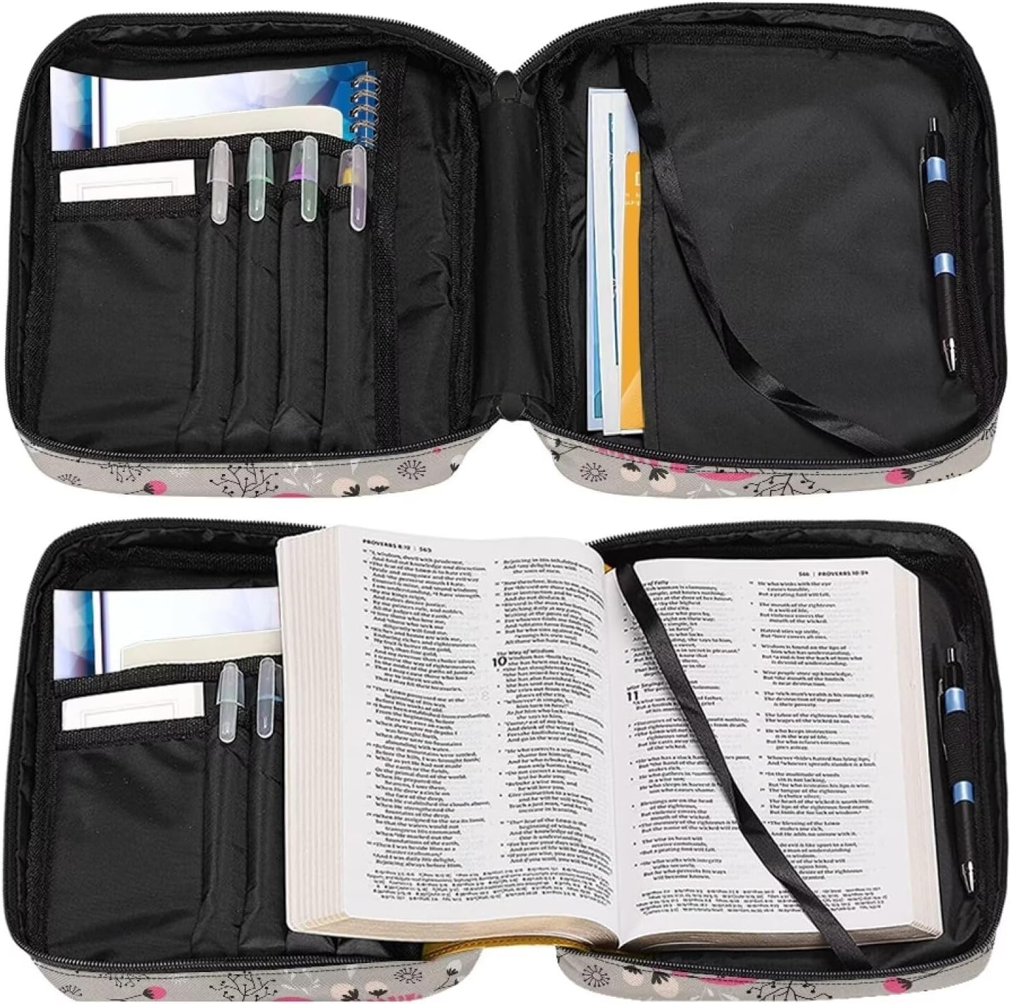 Grande capacità: 26 x 20 x 3 cm. Adatto per bibbie/libri/blocchetti di varie dimensioni. Ha una tasca frontale e molteplici tasche interne per organizzare comodamente i tuoi oggetti personali come cellulare, penne, appunti, ecc. Materiale durevole: la copertura della Bibbia è realizzata in poliestere di alta qualità e cerniere mentali, è resistente, morbida e leggera. Può essere antipolvere e mantiene pulita la Bibbia. Design conveniente: ci sono due cerniere in metallo per aprire e chiudere facilmente. L'interno ha 2 tasche laterali, 1 tasca verticale, 1 slot per segnalibri, 8 scomparti per penne. Sia in chiesa che in lezioni, puoi estrarre il libro più facilmente. Con maniglia portatile e tasche esterne, ti permette di uscire trasportando con solo una borsa per la Bibbia. Multifunzionale: con questa borsa biblica puoi usarlo in molti modi come una borsa per documenti, valigetta, borsa per iPad, borsa. Questa custodia protettiva per bibbia è adatta per trasportare alcuni dei tuoi piccoli oggetti. Regalo perfetto: ci sono vari tipi di bellissimi modelli tra cui scegliere. È un bel regalo per la persona amata, i bambini, gli amici. È anche una buona scelta da inviare il giorno del Ringraziamento, Natale, festa della mamma, festa del papà.