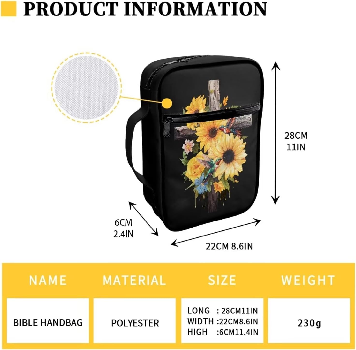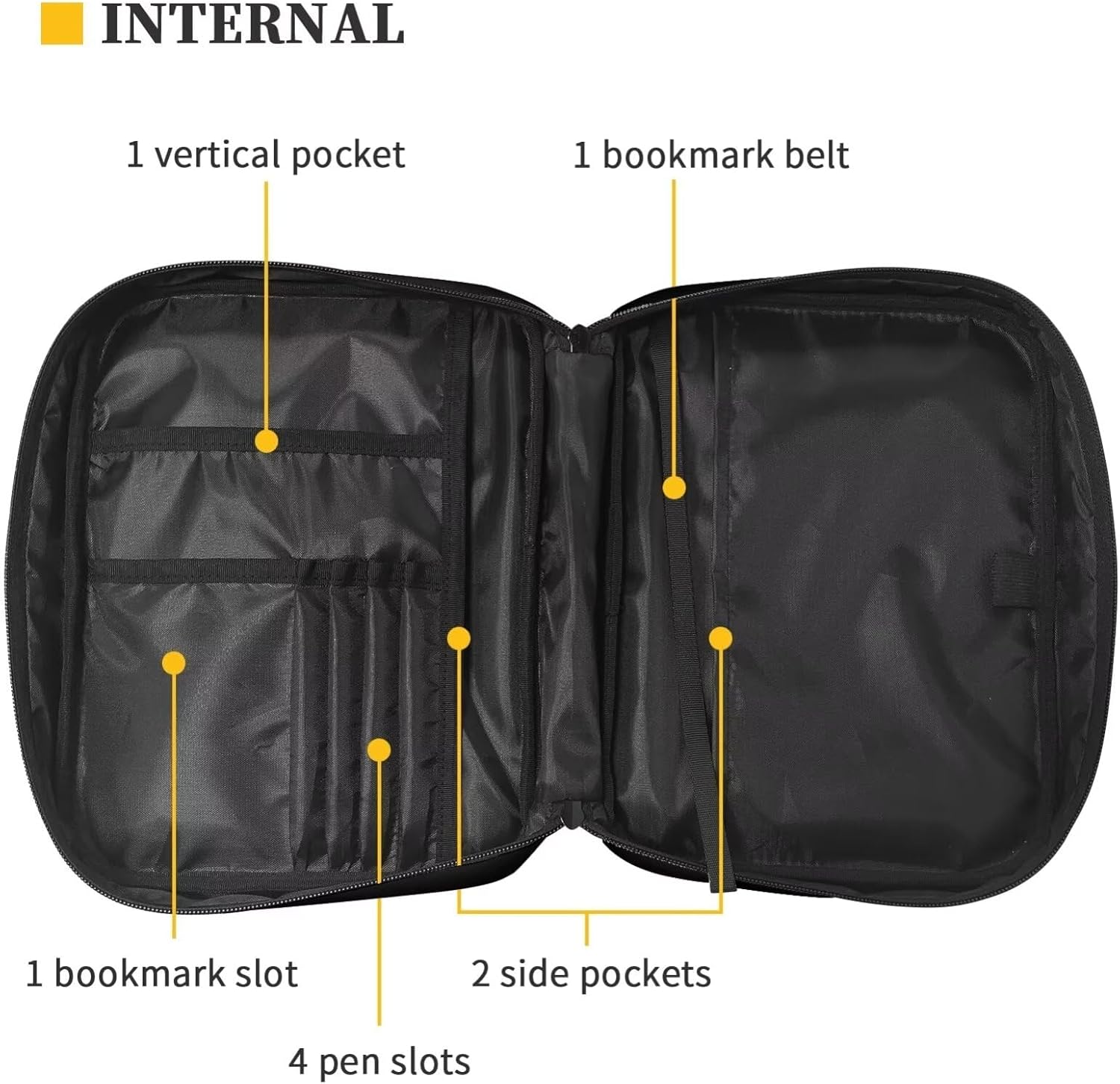 Grande capacità: 27 x 20 x 3,5 cm. Adatto per bibbie/libri/pad di varie dimensioni. Ha una tasca frontale e molteplici tasche interne per organizzare comodamente i tuoi oggetti personali come cellulare, penne, appunti, ecc. Materiale durevole: la copertura della Bibbia è realizzata in poliestere di alta qualità e cerniere mentali, è resistente, morbida e leggera. Può essere antipolvere e mantiene pulita la Bibbia. Design conveniente: ci sono due cerniere in metallo per aprire e chiudere facilmente. L'interno ha 2 tasche laterali, 1 tasca verticale, 1 slot per segnalibri, 10 scomparti per penne. Sia in chiesa che in lezioni, puoi estrarre il libro più facilmente. Con maniglia portatile e tasche esterne, ti permette di uscire trasportando con solo una borsa per la Bibbia. Multifunzionale: con questa borsa biblica puoi usarlo in molti modi come una borsa per documenti, valigetta, borsa per iPad, borsa. Questa custodia protettiva per bibbia è adatta per trasportare alcuni dei tuoi piccoli oggetti. Regalo perfetto: ci sono vari tipi di bellissimi modelli tra cui scegliere. È un bel regalo per la persona amata, i bambini, gli amici. È anche una buona scelta da inviare il giorno del Ringraziamento, Natale, festa della mamma, festa del papà.