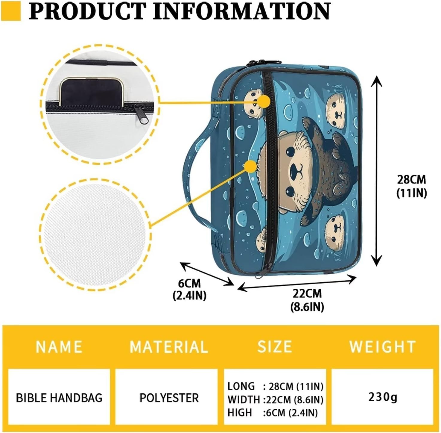 Copertine bibliche lontra per donne che trasportano libro custodia da chiesa borsa bibbia protettiva con manico e tasca con cerniera borsa per bambini Bibbia Tote Bag Teens Bible Case
