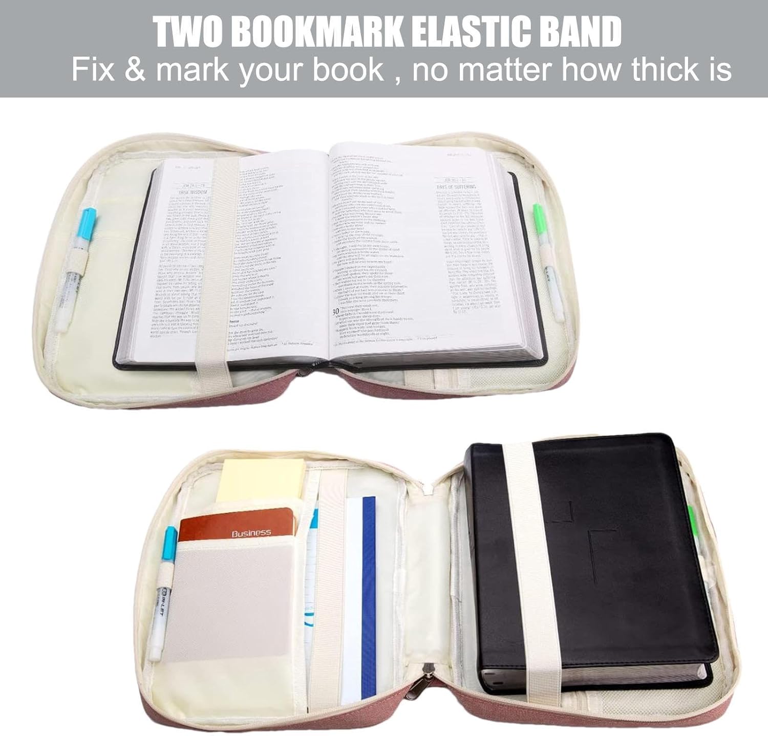 ✷[Materiale robusto] Realizzata in poliestere di alta qualità, la custodia per Bibbia proteggerà il tuo libro o computer da bevande e liquidi e sarà facile da pulire con un panno umido, ed è resistente all'abrasione e impermeabile. ✷[Leggi libro e elastici segnalibro] La grande copertina della Bibbia è progettata in modo creativo con un leggio e due elastici segnalibro, comodo per stare in piedi per leggere la Bibbia e prendere appunti, calmare collo e ridurre l'affaticamento. ✷[Maniglia di presa facile da trasportare] Con una maniglia di facile presa e cerniera in metallo, le custodie per Bibbia da uomo sono portatili e di grande capacità, adatte per libri o Bibbie standard e piccoli. ✷[Ampiamente applicabile] La custodia per copertina della Bibbia può organizzare i tuoi oggetti in modo più ordinato e bello e può essere utilizzata come borsa per cosmetici, borsa o borsa per tablet perché ha più tasche e passanti per penne per riporre evidenziatori, segnalibri, quaderni e tablet. ✷[Regali pratici per gli amici] Adatto per lo studio della chiesa, la preghiera della chiesa e il giorno della celebrazione religiosa, la custodia della Bibbia per uomini è un regalo prezioso per la famiglia, gli amici, i bambini e i colleghi e puoi inviarlo come compleanno, Natale, Capodanno e regalo scolastico.